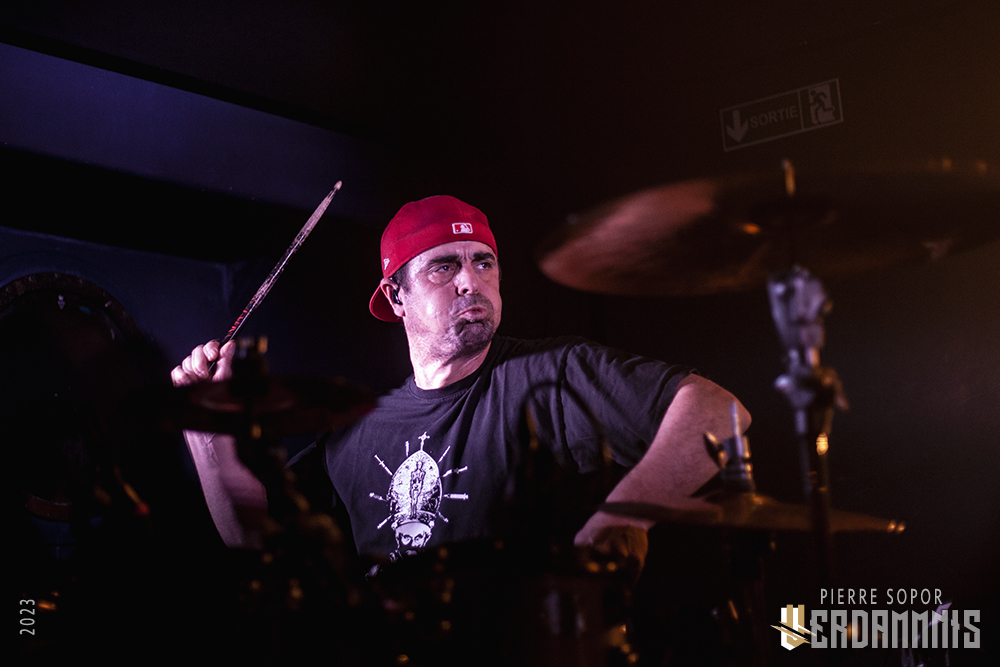 Job : Un autre soir, le système de son était tellement pourri lorsqu'on a joué que les gens nous ont dit n'avoir entendu que de la batterie et les cymbales. Jouer trois quart d'heure pour ça, c'est décevant pour tout le monde. Tout ça pour rien. La batterie ne doit en aucun cas être au-dessus, tout doit être aligné et la voix un peu plus forte. Heureusement, ce n'est pas tout le temps comme ça. Hier soir nous avons eu de super retours ! Le meilleur son de la soirée ! Et puis il faut dire que nous avons la chance d'avoir commencé assez fort avec le Hellfest la première année...
