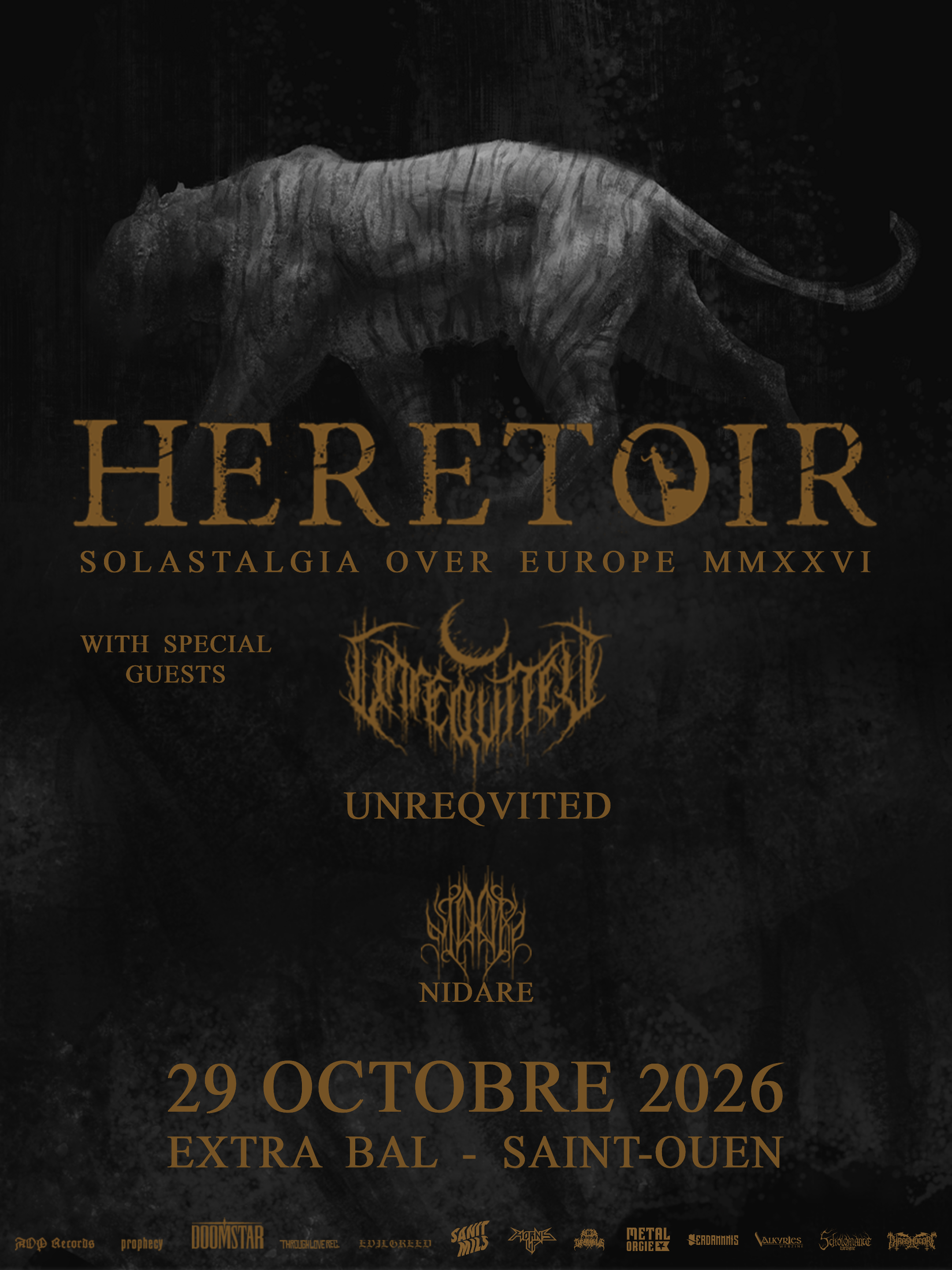 Regardez cette belle affiche post-black metal contemplatif : Heretoir sera de retour à l'automne en compagnie d'Unreqvited (qui jouera pour la première fois à Paris) et de Nidare. Enfin, Paris... Saint-Ouen, quoi, à l'Extra Bal. Les parisiens, on vous voit souffler parce qu'il faut passer le périph', mais calmez-vous : c'est sur le métro et donc pas plus loin que n'importe où !
