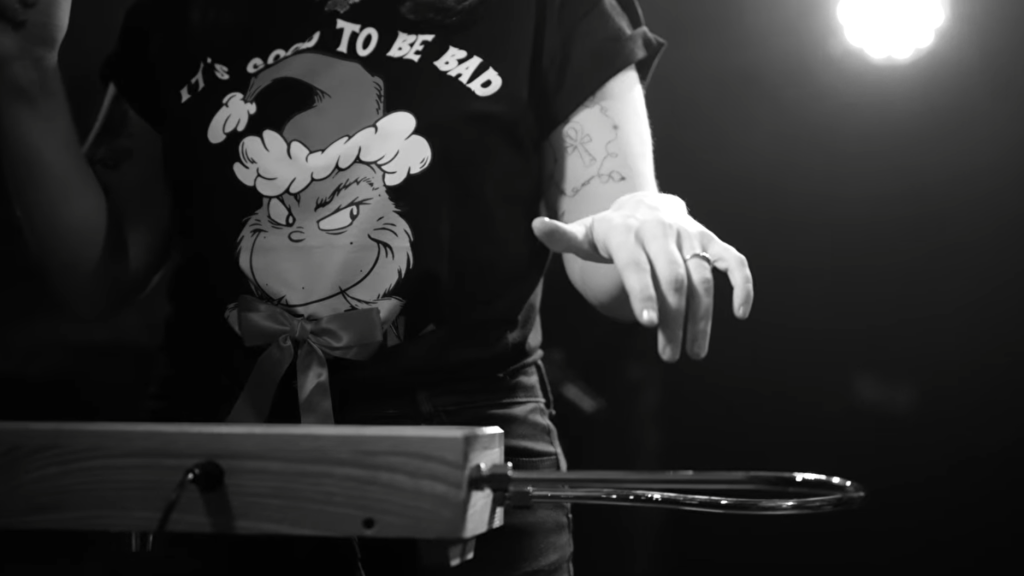 Un pull du grinch pour nous mettre dans l'humeur festive de Noël, une longue intro au thérémine pour les mystères de l'au-delà, et les murs en pierres du sous-sol de la Mécanique Ondulatoire : Léa Jacta Est sait y faire pour accentuer le "fun" de "funèbre". Alors que nous nous enterrions en sa compagnie le 12 décembre dernier (live report), deux titres ont été captés en vidéo.
