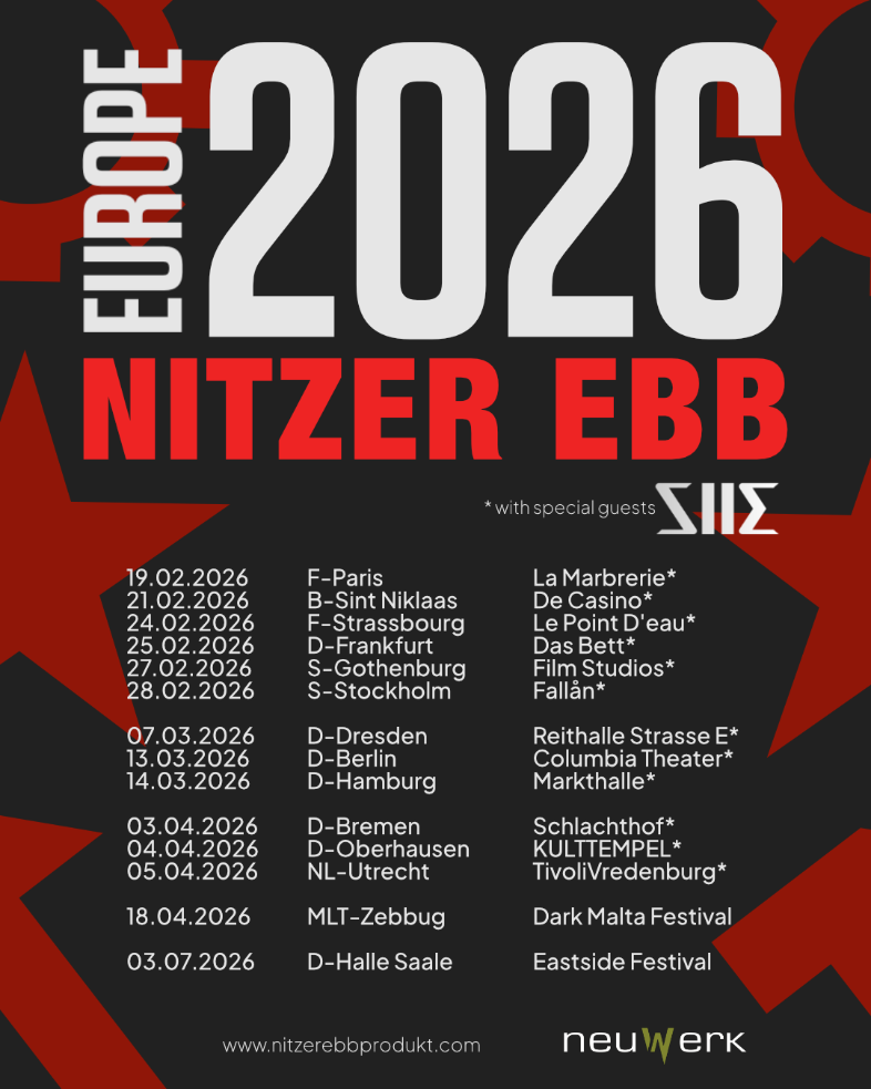 Nitzer Ebb sera donc de retour pour une grande tournée européenne en 2026 qui débutera le 19 février à Paris et s'arrêtera notamment à Strasbourg le 24 février. À la batterie, on retrouvera Tim Kroker, qui a officié plus de deux décennies pour feu Front242.