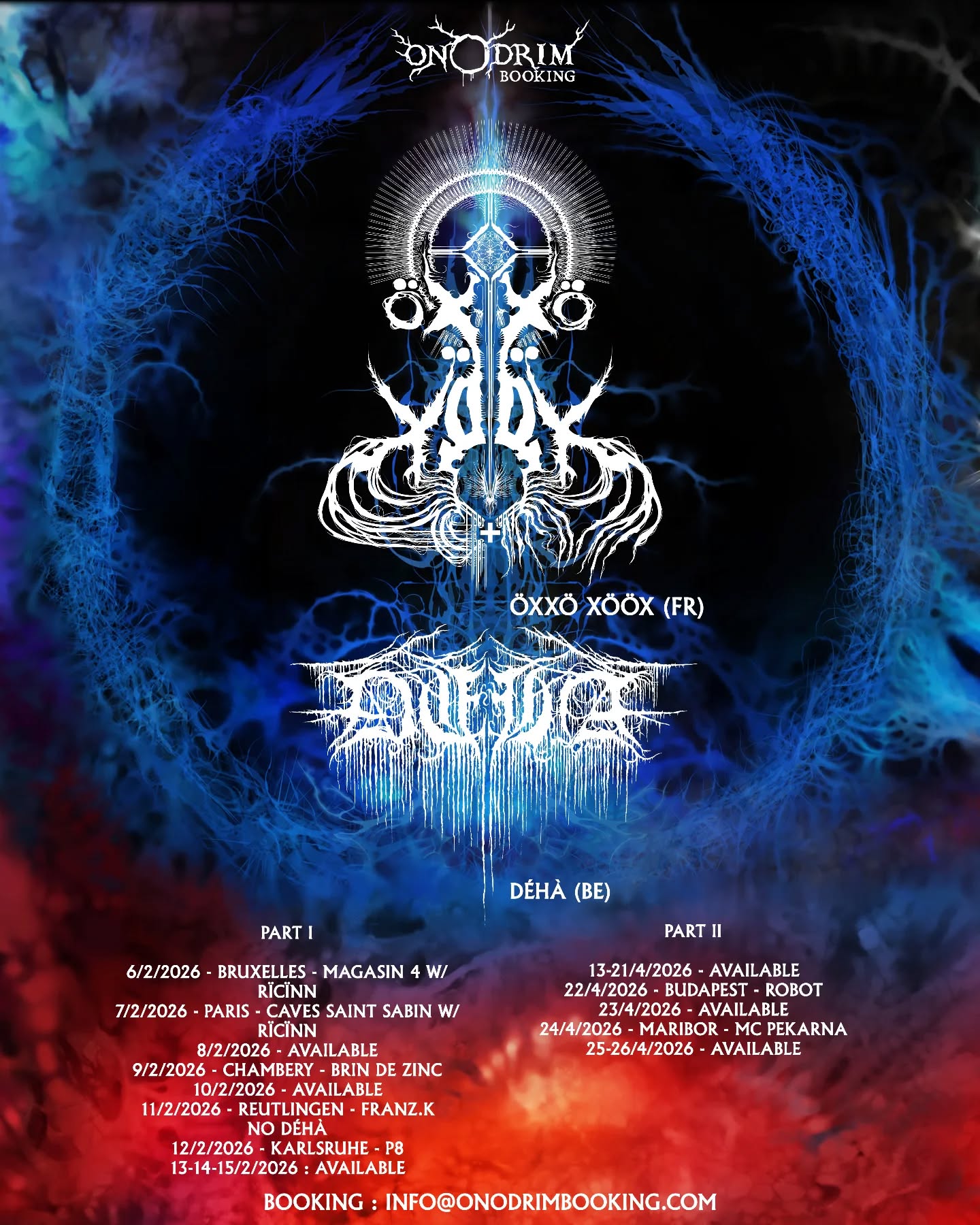 Öxxö Xööx, le groupe doom avant-gardiste de Laurent Lunoir, s'apprête à donner sa première tournée. Déhà assurera la première partie de presque toutes les dates (à retrouver en bas de cette news) mais les dates parisiennes et bruxelloises seront un peu plus spéciales puisque Rïcïnn, le projet de Laure Le Prunenec, se joint à l'affiche. Trois artistes aux univers uniques et dont nous vous avons déjà dit le plus grand bien par le passé !