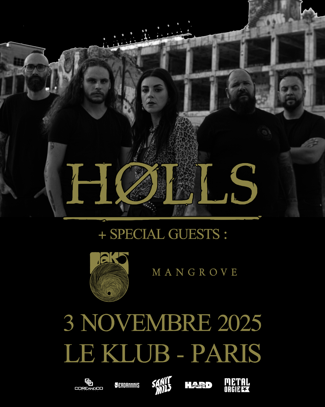 Né en 2023, Hølls développe un post-metal sombre et atmosphérique traversé d’accents post-hardcore. Porté par la voix de Sandra Chatelain, capable d’alterner clair et guttural, le quintet équilibre montées en tension et lourdeur écrasante. Leur premier album ILL (2025) a été salué par Rolling Stone, Rock Hard et Hard Force.