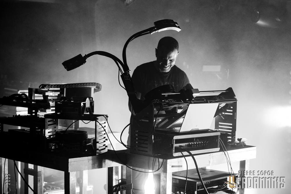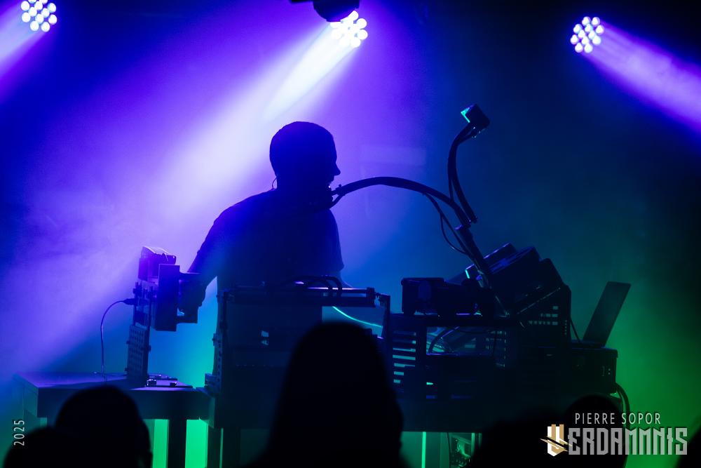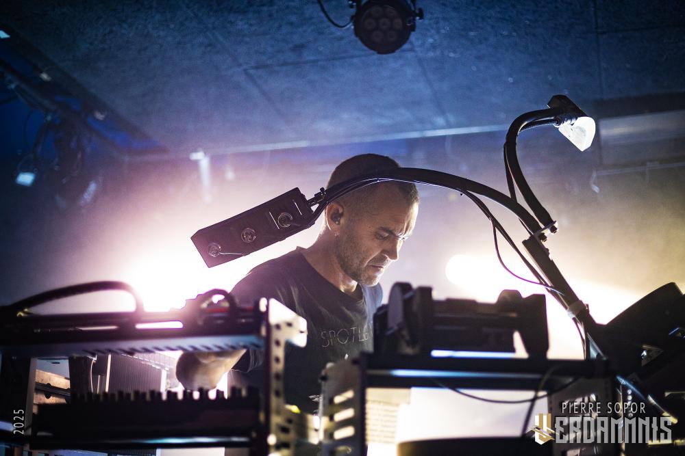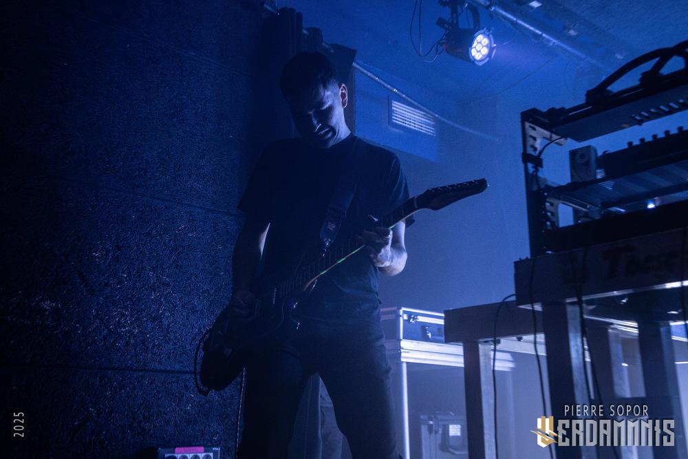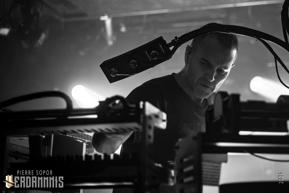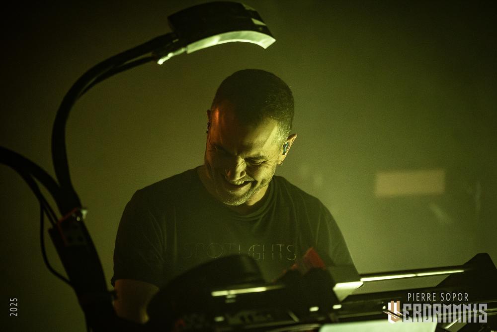 Behind his homemade machines, his face betraying his desire to crush us, Shone remains unmistakably both the author and the punisher! Any desire to laugh disappears from the very first moments of the concert. Meadowlark may start off gently, but its melancholy is quickly crushed by the heaviness of the sound. Author & Punisher's doom/industrial mix is impressively powerful live, playing loud, making the walls shake and our organs contract. We fear that the wings of the Moulin Rouge, located a few metres away, might crash again and that the Richter scale has just been crushed.