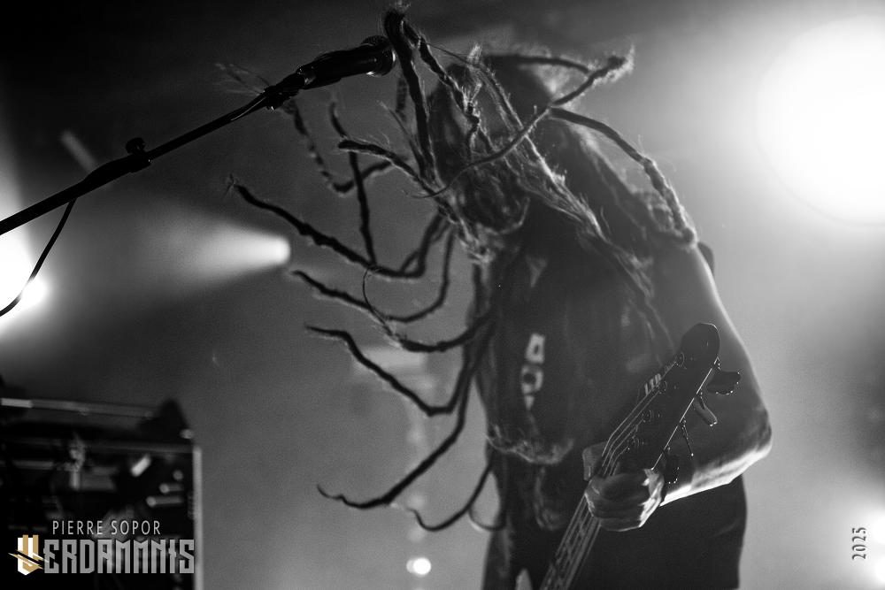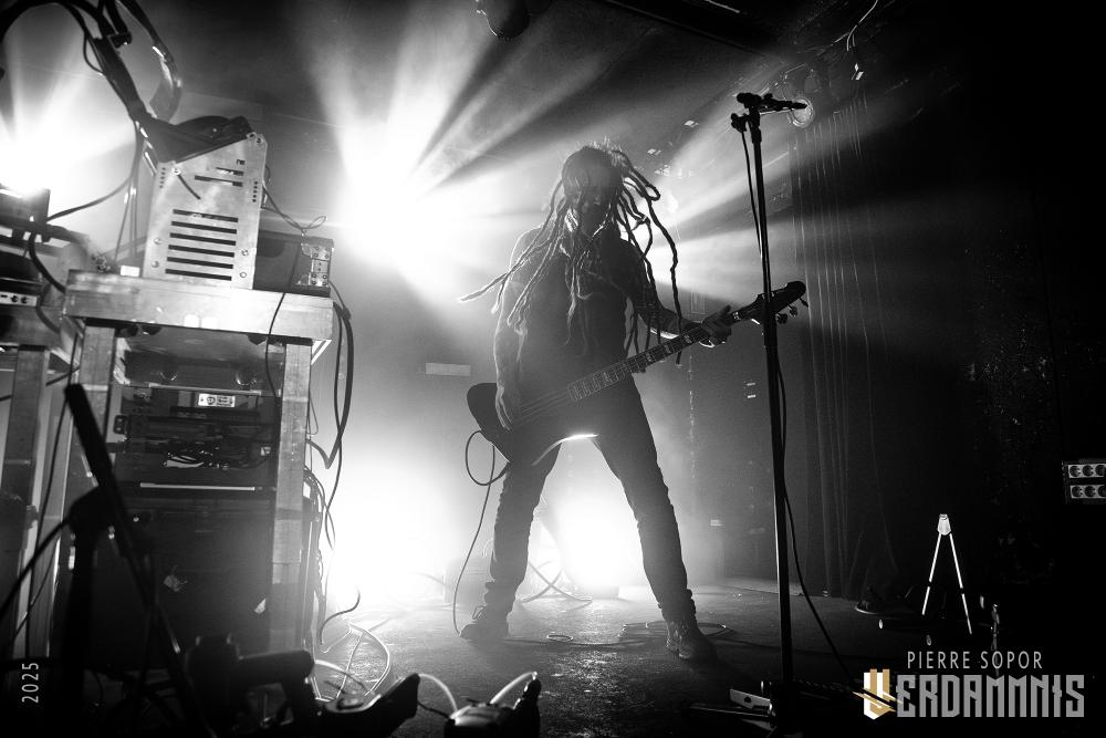 Incidentally, Köhnen is keeping us waiting! Perhaps due to the still sparse audience, the concert starts half an hour later than announced. All the better, as this gives the venue a little more time to fill up. The singer/bassist/mad mastermind behind Bong-Ra is accompanied by guitarist Attila Kovacs, and together they plunge us into their hallucinatory mechanical hell. While the recent Black Noise (review) marked Köhnen's return to a more aggressive sound with more doom and atmospheric experimentation, the live show allows us to appreciate the variety of Bong-Ra's torments and follies.