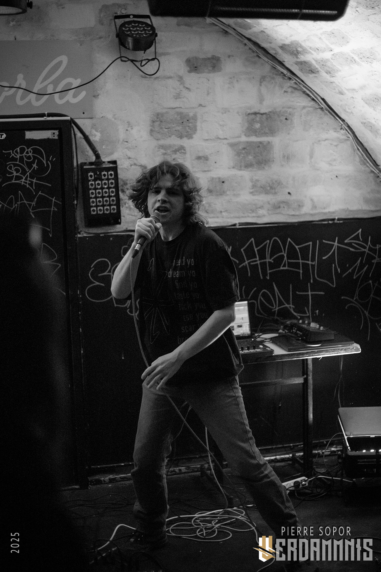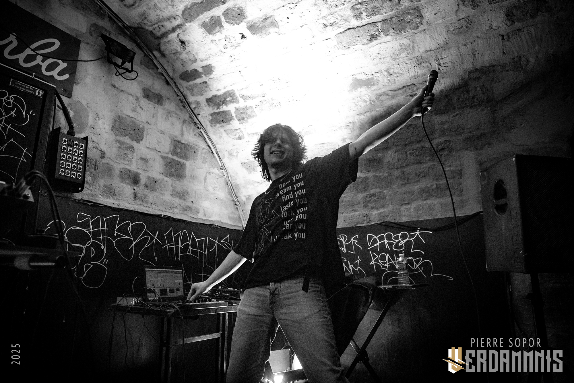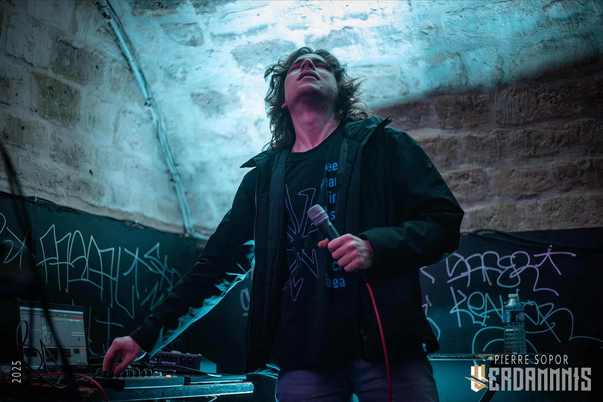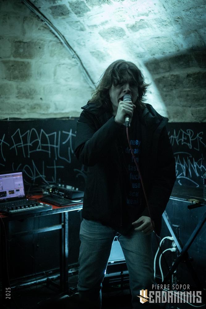 Selon les morceaux, Cross Contact passe d'un black metal furieux à un metal industriel pas forcément plus rassurant. C'est aliénant et écorché, un truc techno-satanique (comme le dit l'artiste) qui n'est pas là pour faire danser mais qui est quand même suffisamment accrocheur pour tout de suite capter l'attention immédiatement. Ouais, le romantisme mercantile de la Saint-Valentin est bel et bien mort à Belleville ce soir-là et nous avons joyeusement piétiné son cadavre pourrissant avec quatre projets aussi atypiques que personnels, quatre variations autour des ténèbres, du bruit saturé et de la douleur qui fait du bien. C'était cool.