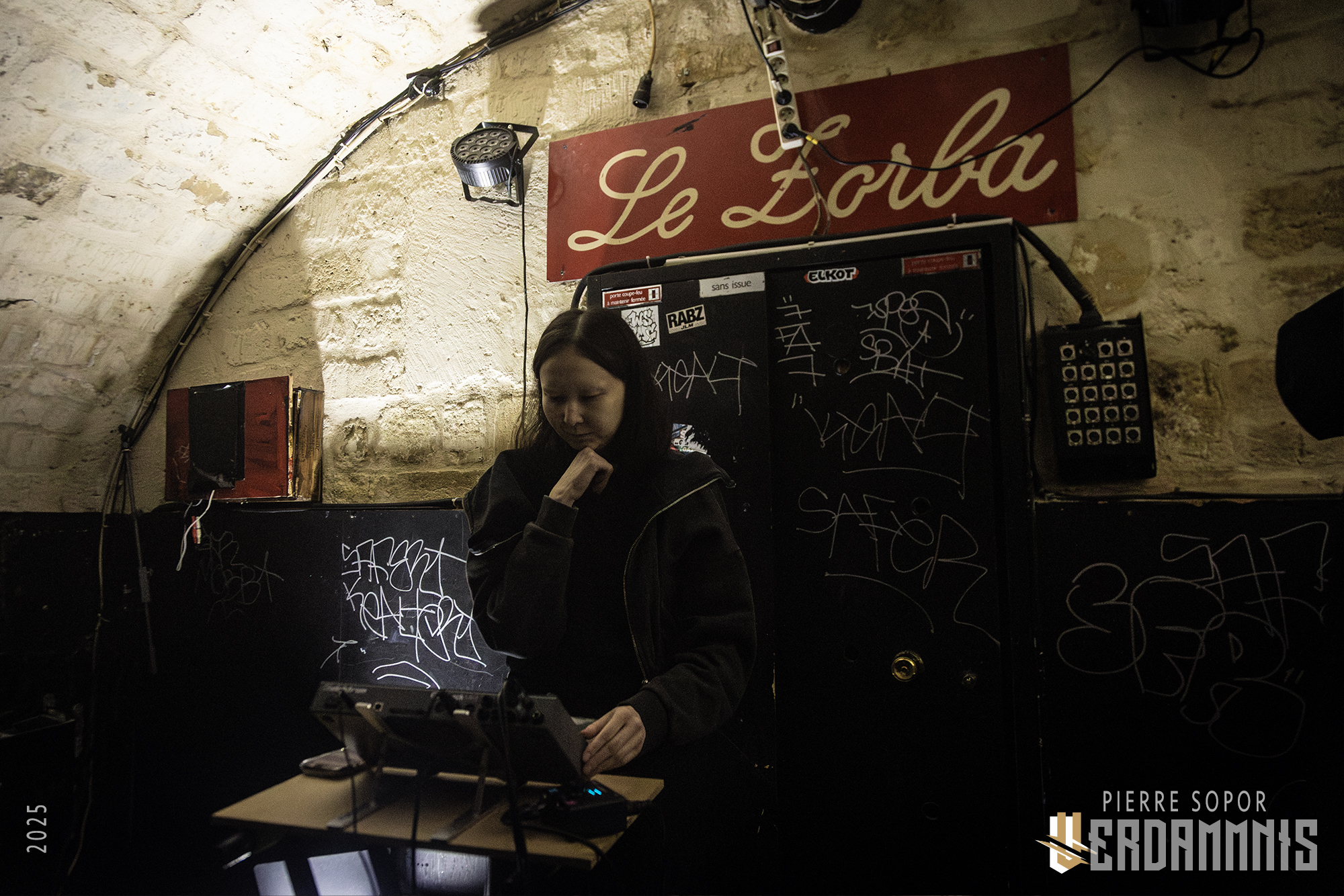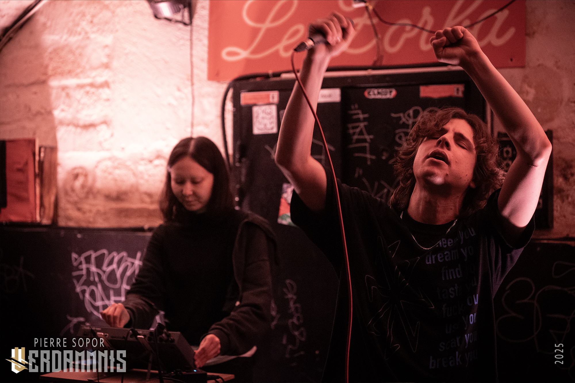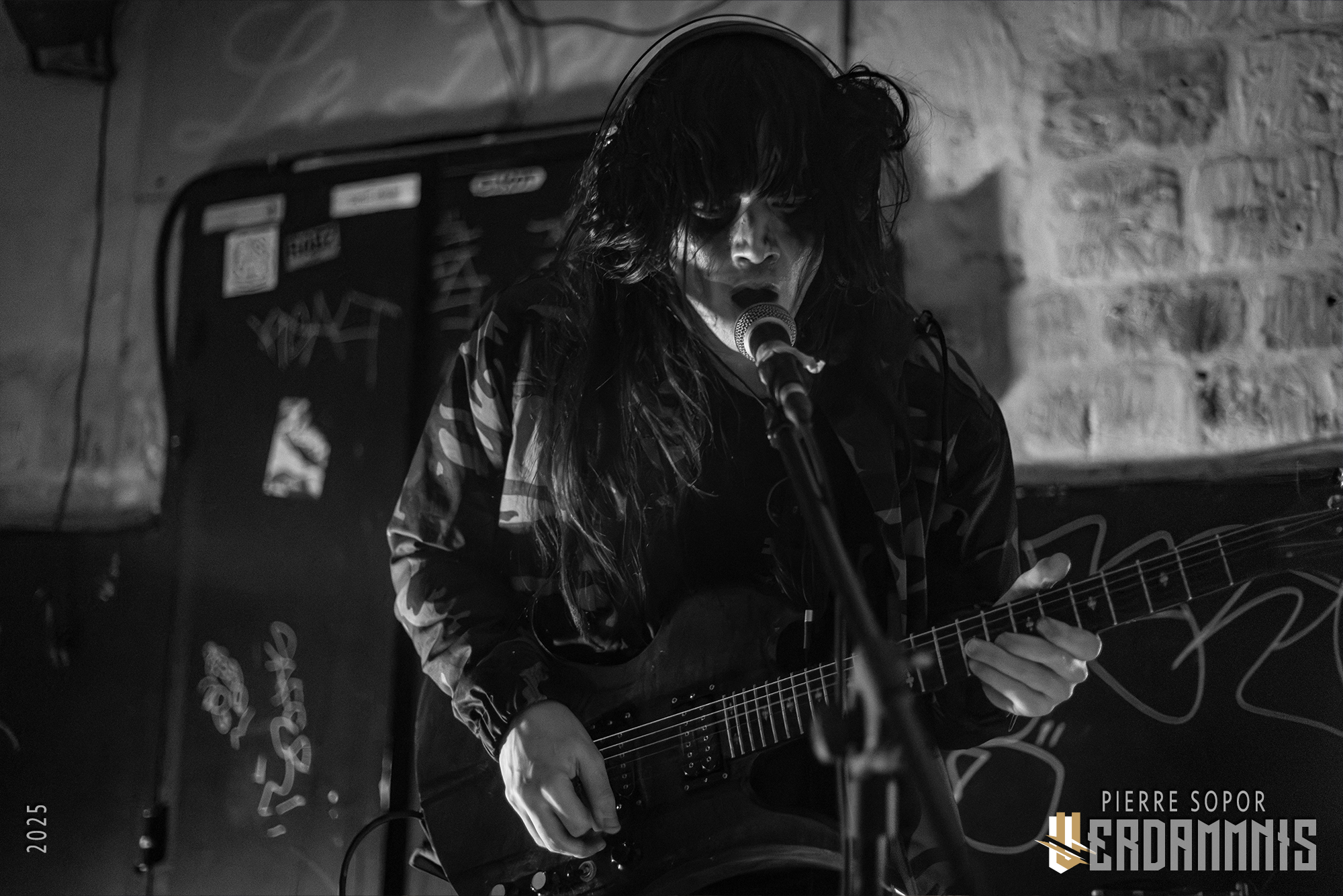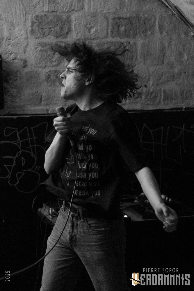 Selon les morceaux, Cross Contact passe d'un black metal furieux à un metal industriel pas forcément plus rassurant. C'est aliénant et écorché, un truc techno-satanique (comme le dit l'artiste) qui n'est pas là pour faire danser mais qui est quand même suffisamment accrocheur pour tout de suite capter l'attention immédiatement. Ouais, le romantisme mercantile de la Saint-Valentin est bel et bien mort à Belleville ce soir-là et nous avons joyeusement piétiné son cadavre pourrissant avec quatre projets aussi atypiques que personnels, quatre variations autour des ténèbres, du bruit saturé et de la douleur qui fait du bien. C'était cool.