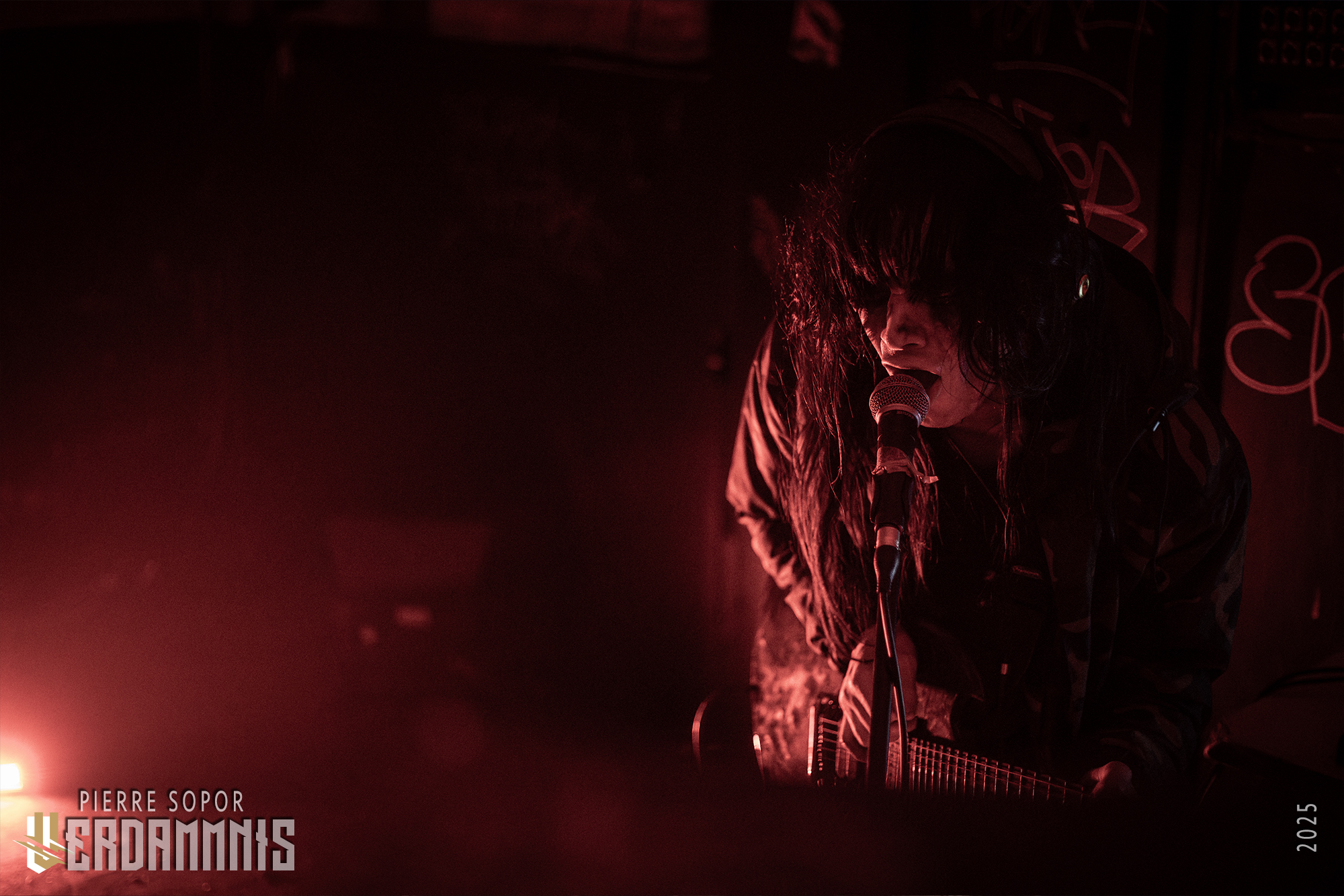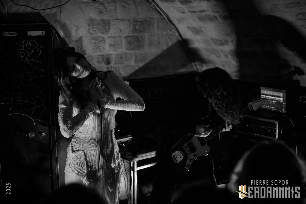 La veste de Saline tombe, révélant une robe blanche qui se détache dans la pénombre du Zorba. La lumière dans les ténèbres, les ténèbres dans la lumière, le contraste, la nuance : Midsummer Blaze joue avec tout ça et nous rappelle les moments les plus mordants et pesants de Chelsea Wolfe, Myrkur ou même Frayle. Soudain, des cris spectraux jaillissent et prennent aux tripes. Le voyage est mouvementé, on passe d'une transe contemplative à un exorcisme violent. Midsummer Blaze n'a pour l'instant sorti qu'un EP mais à force de voir leur nom de plus en plus souvent à l'affiche de concerts, on sent qu'on n'a pas fini d'en entendre parler. L'univers est singulier et le rendu en live est d'une élégance saisissante.