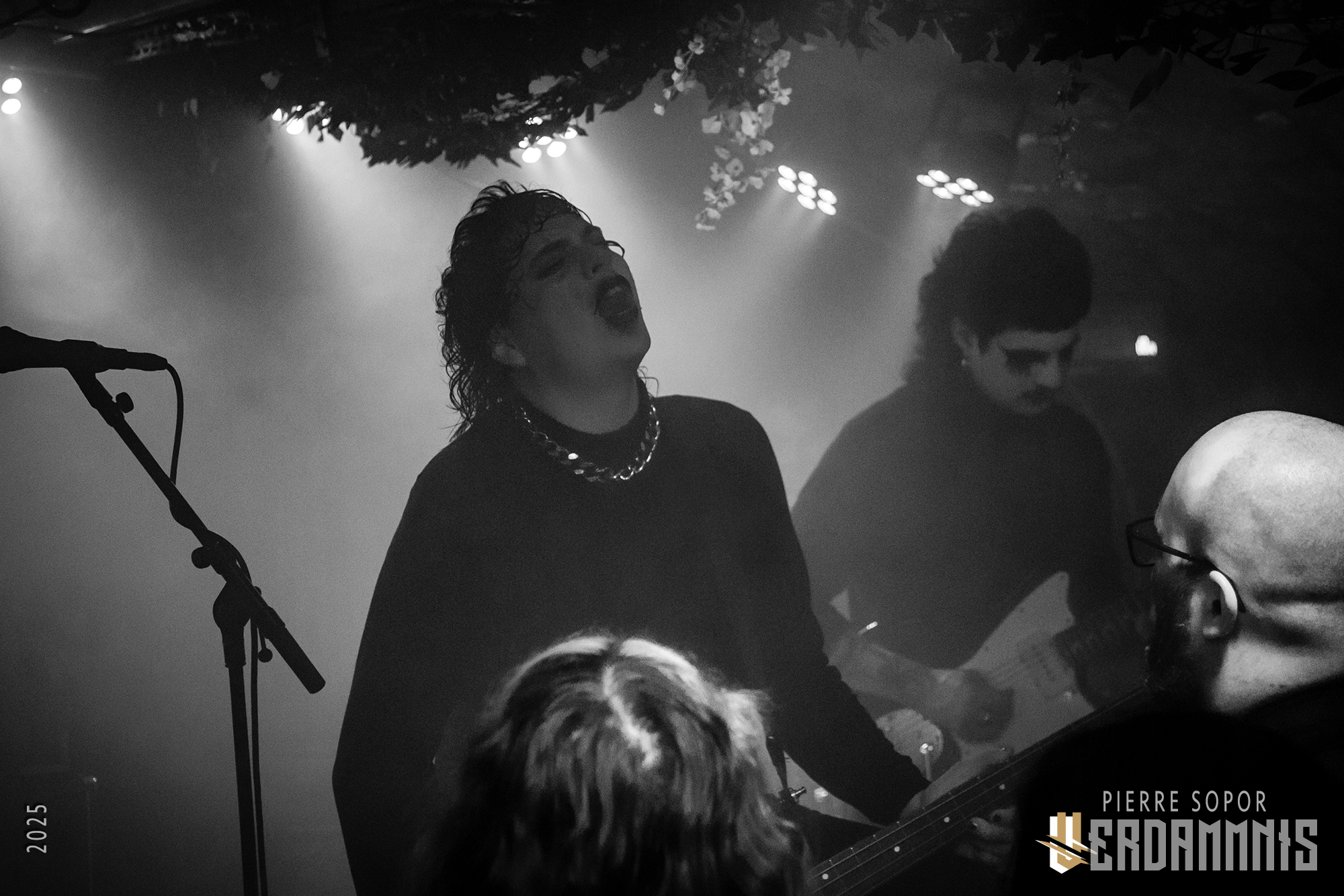 Ah, voilà, des gothiques avec du maquillage, enfin ! Et mêmes des capes noires ! Pendant les premières parties, Deceits était difficile à croiser au merch, ils se pomponnaient pour nous montrer leurs plus beaux visages. Le trio démarre avec Failures et c'est immédiatement un succès : le public est bouillant, ça remue, ça crie dans la fumée, on sue sous terre. Avec leur imagerie romantique et leur musique héritée des Cure, on s'attendait à quelque chose d'introspectif, un truc pour regarder tristement dans le néant de nos vies. Tu parles, Deceits, ça envoie ! Sur scène, leur énergie punk est explosive.