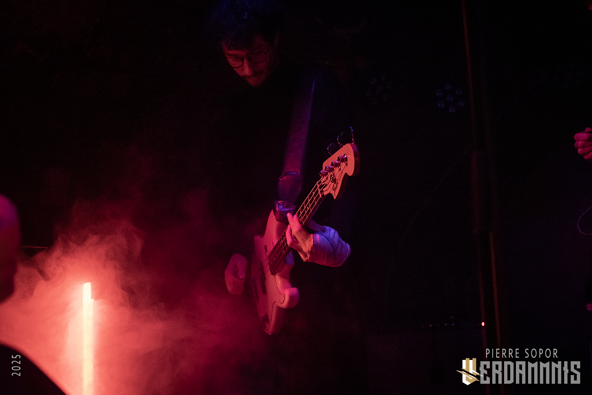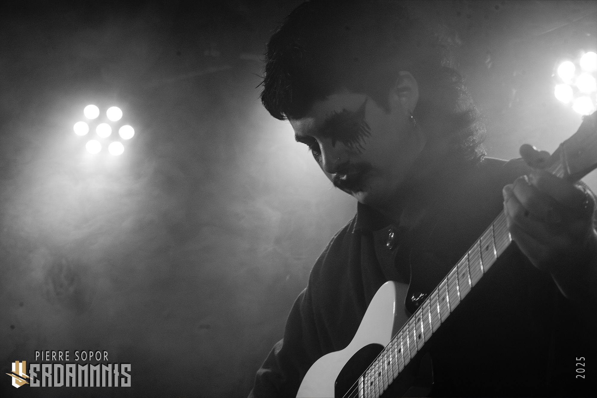Heimberg a sorti un nouvel album il y a deux mois, Faceless, dont les titres sont en toute logique à l'honneur ce soir. Le désespoir glaçant de Fragrance ouvre la soirée. La mélodie fait mouche, le chant plaintif résonne. Des gigatonnes de fumée noient les Caves dans le brouillard. On n'y voit plus rien mais tant mieux : de toute façon, le monde est laid. Contemplons alors nos ruines intérieures, qui sont encore plus laides. Dans cette ambiance, les échos plein de réverb funèbre de Bury my Soul font leur petit effet. C'est théâtral, tourmenté, à la fois poétique et anxiogène, bref, c'est tout ce qu'on demande pour un début de soirée sous terre !