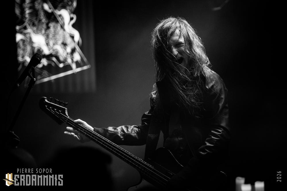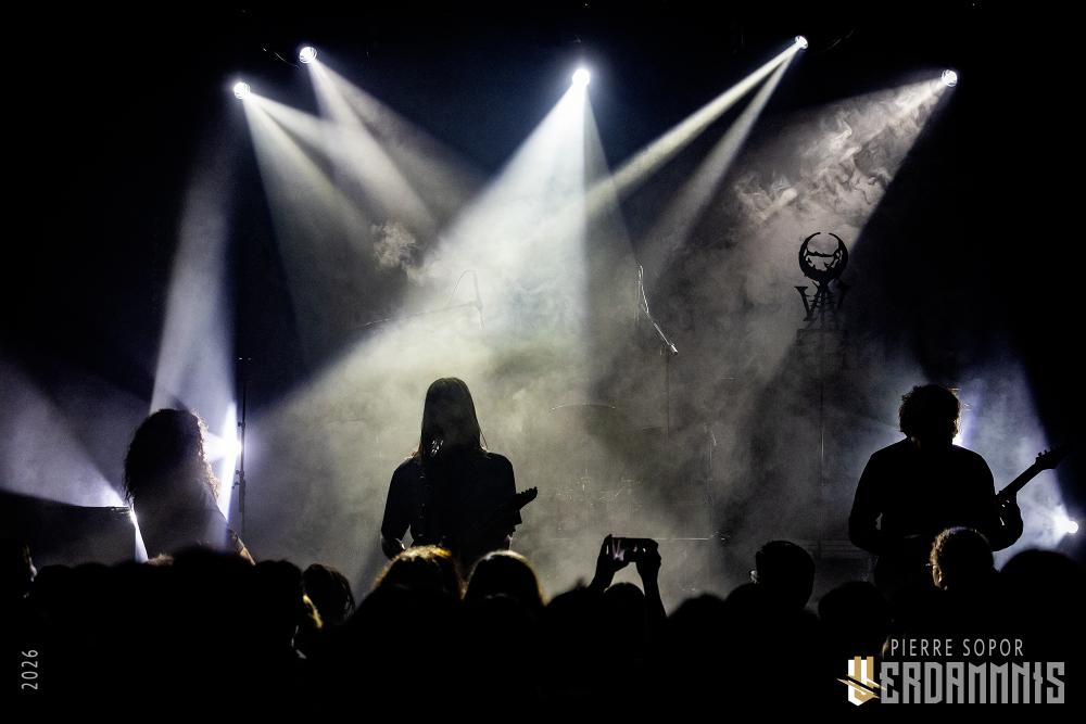 Der Weg Einer Freiheit, who recently added a few new French dates to their schedule, played at Le Grillen in Colmar on Thursday, 26 February 2026. The audience, mostly made up of regulars (everyone knows each other, says hello, and gets excited with a joy proportional to the darkness of the music that brings us together, as is often the case, except that this time, it is expressed with a tinge of German words and Alsatian expressions) was very dense. From dense to dance, there's only one step, but rest assured: here, we're more into flammenkueche than flamenco, and with black metal, it's mainly our necks that giggle. In any case, there's no room to move the rest of the body.