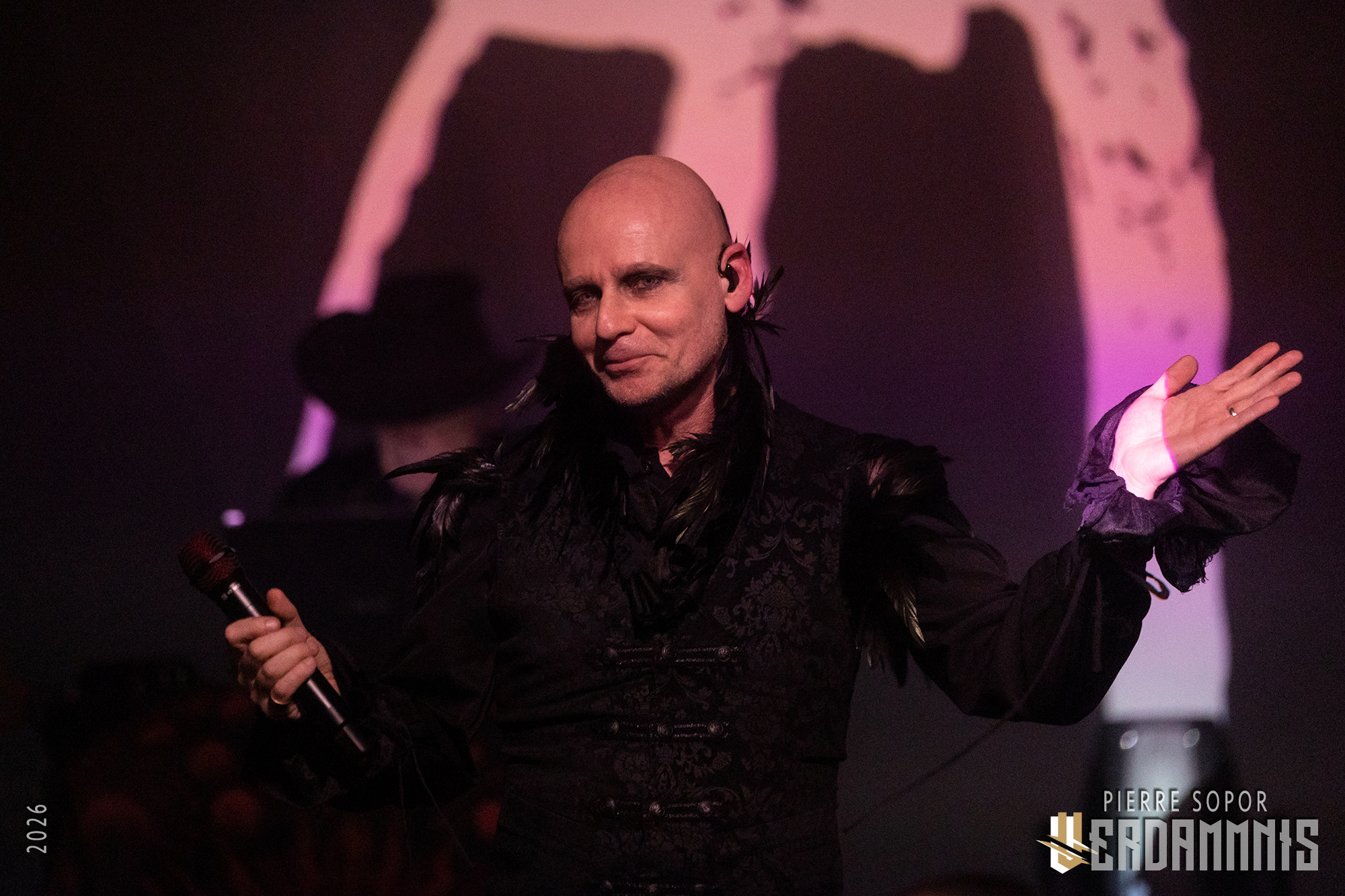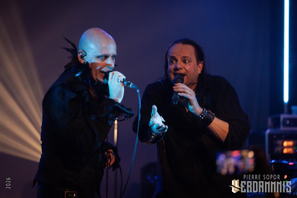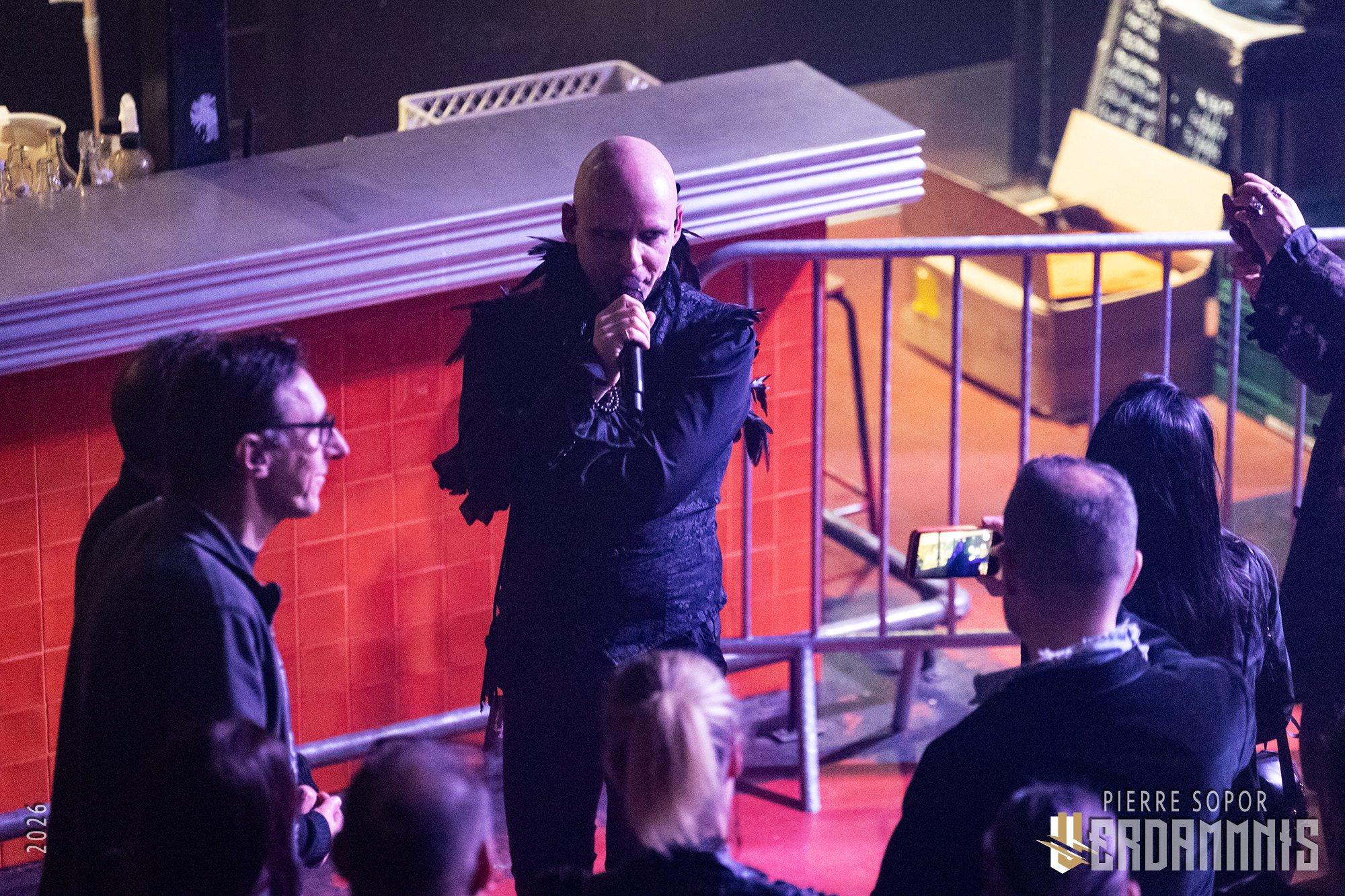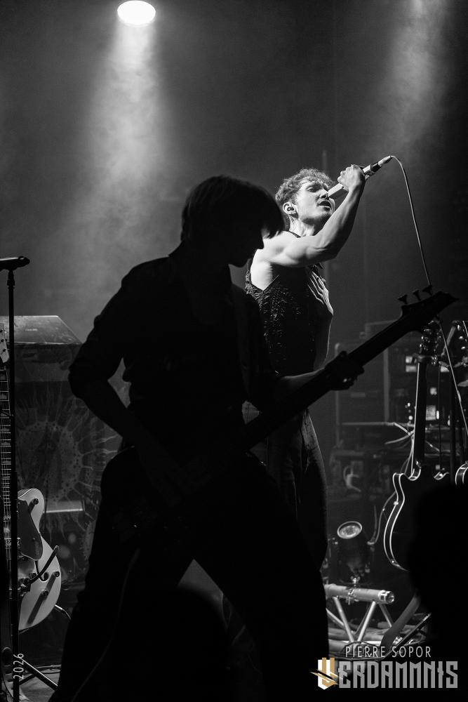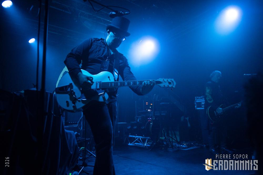Facétieux, Van Geel disparaît de scène pour réapparaître au niveau du bar de la salle et s'offre une promenade dans le public, chantant pour une assemblée amusée (ou tétanisée de timidité !) par cette proximité soudaine. De la complicité, des morceaux issus de plus de trente ans d'histoire, une élégance décalée... The Arch est cool, d'un cool raffiné comme les anciennes formations goths savent faire preuve, alliance subtile de second degré et d'authenticité absolue. Là aussi, on espère les revoir bientôt... sans savoir que nous sommes sur le point d'être exaucés !