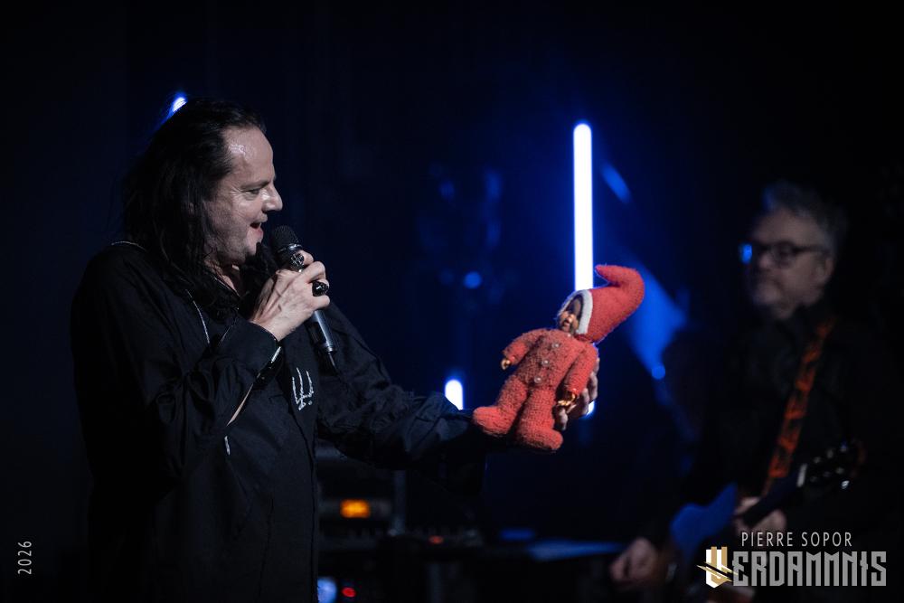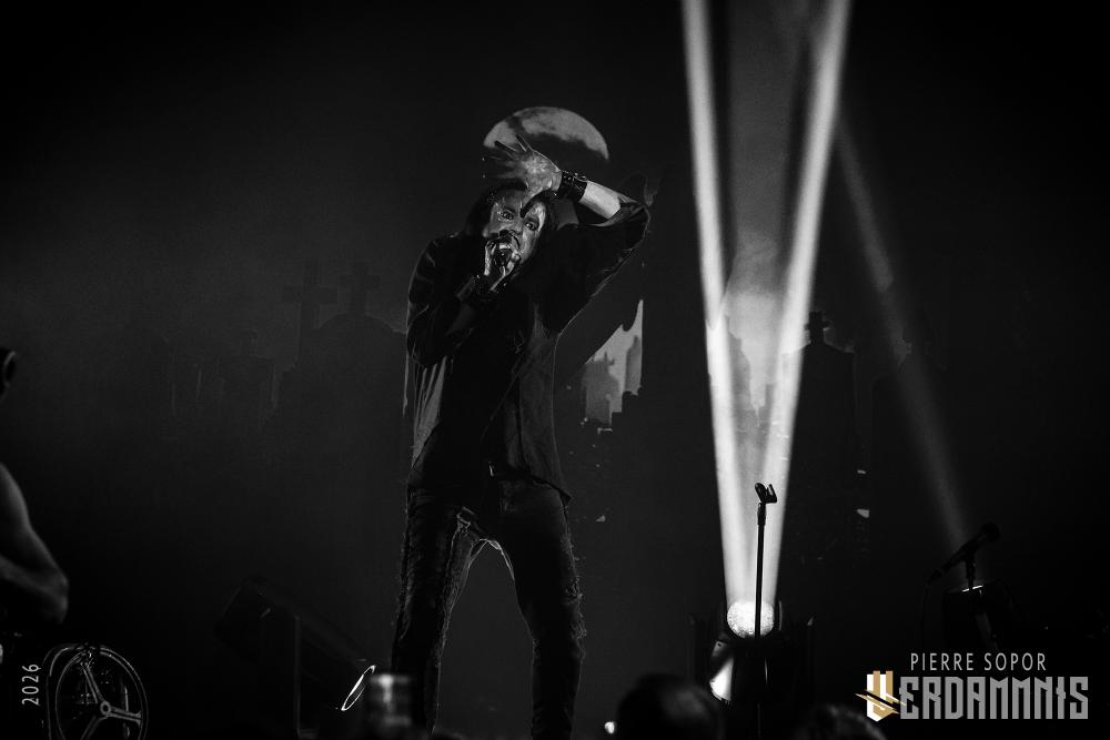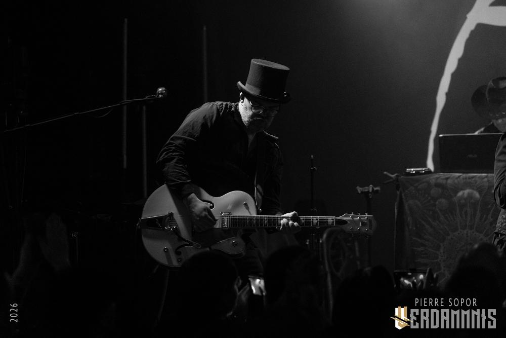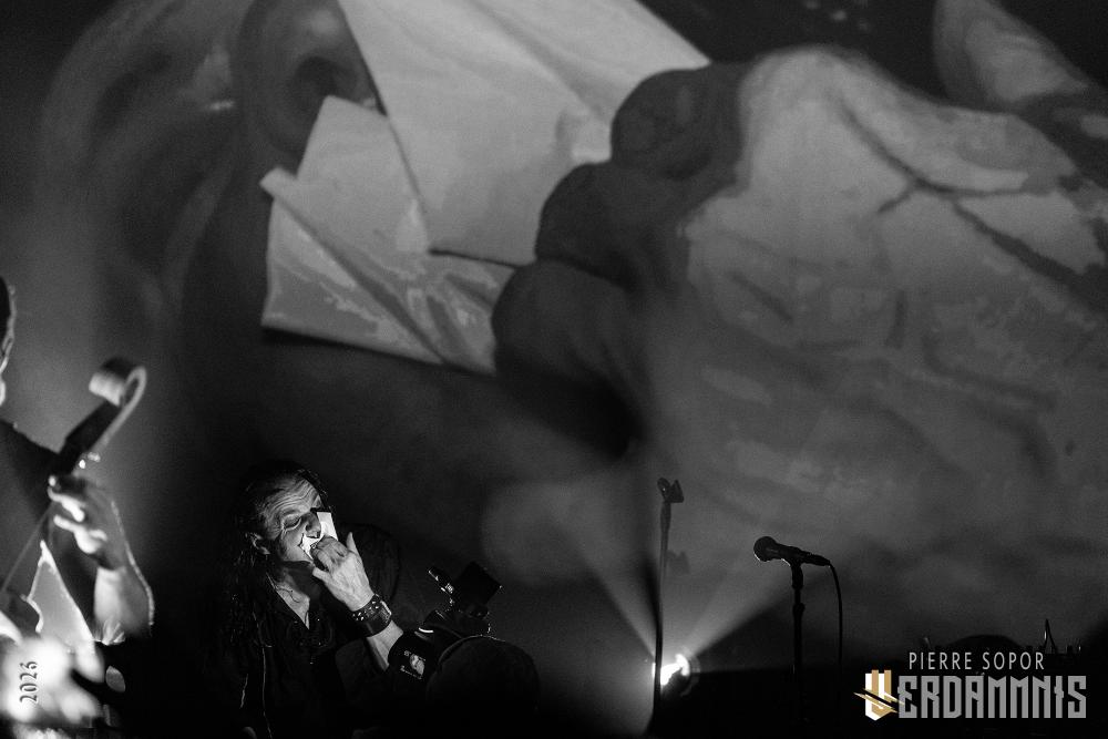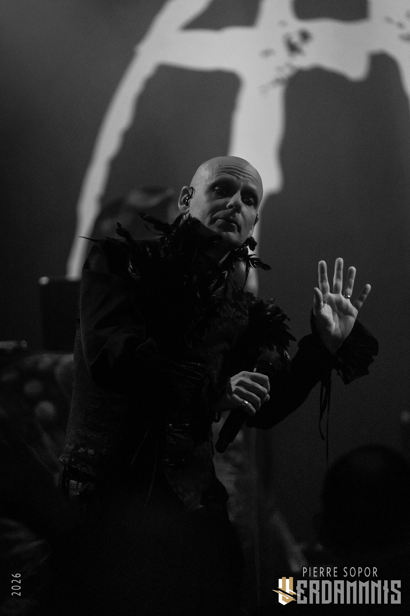 Facétieux, Van Geel disparaît de scène pour réapparaître au niveau du bar de la salle et s'offre une promenade dans le public, chantant pour une assemblée amusée (ou tétanisée de timidité !) par cette proximité soudaine. De la complicité, des morceaux issus de plus de trente ans d'histoire, une élégance décalée... The Arch est cool, d'un cool raffiné comme les anciennes formations goths savent faire preuve, alliance subtile de second degré et d'authenticité absolue. Là aussi, on espère les revoir bientôt... sans savoir que nous sommes sur le point d'être exaucés !