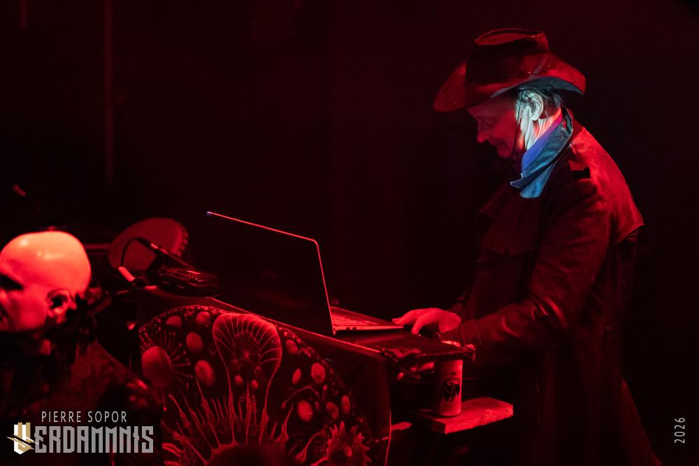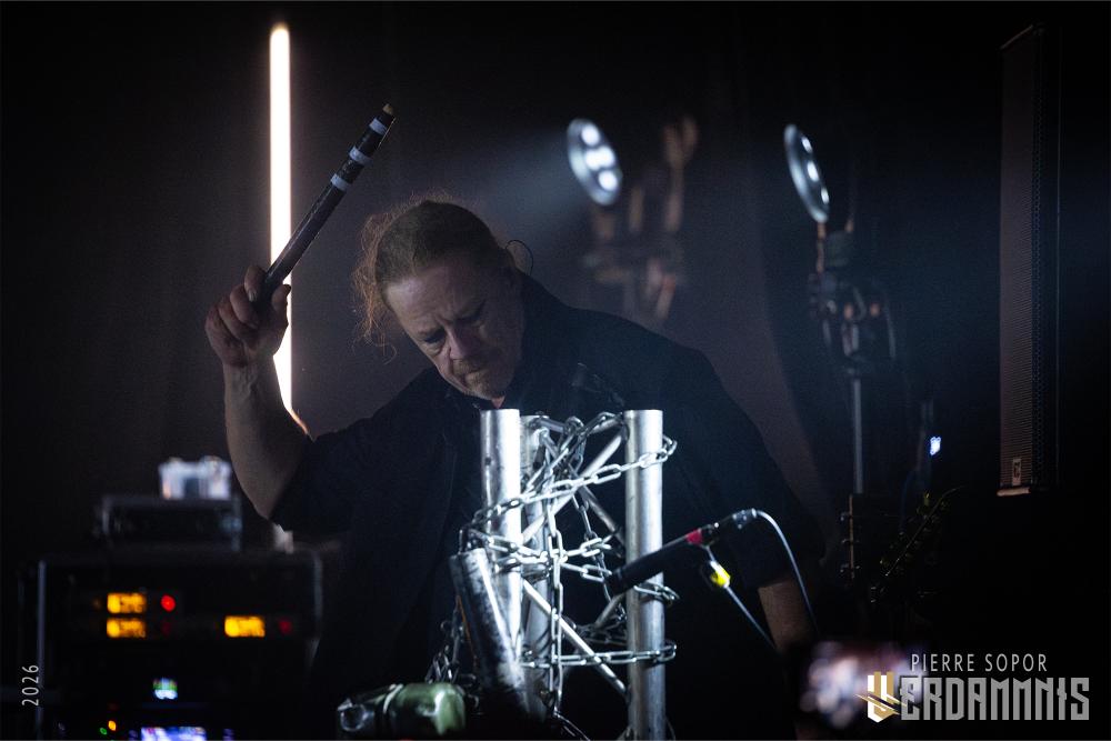 Formation phare de ce que l'on appelle le Neue Deutsche Todeskunst (le nouvel art de la mort allemand), aux côtés notamment de Das Ich (dont les premiers travaux ont un certain sens du théâtre macabre que l'on retrouve ici), Geothes Erben n'a pas usurpé sa réputation. C'était terrifiant, sublime, grotesque, introspectif, dévastateur, suintant de désespoir et de folie mais aussi de rêveries plus douces. Oh, et on a recroisé aussi bien Victor Hildebrand d'Unfarben, revenant sur scène pour ajouter quelques percussions ponctuellement, que Gerd Van Geel venu chanter Glasgarten... on vous avait dit qu'on les avait revus plus tôt que ce que l'on imaginait !
