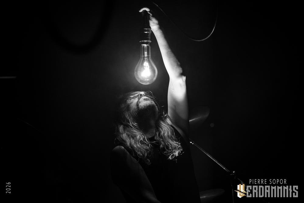 Un rituel suit des règles, des choses immuables qui codifient la messe. On oublie la playlist quelconque qui meuble entre deux concerts en partageant "des trucs rock / metal en vrac" : une nappe de synthé rôde dans les ombres. Sur scène, l'ampoule iconique du trio pendouille bien avant l'arrivée des musiciens. C'est beau une ampoule, ça devrait faire de jolis effets de lumière ! Un peu excités, deux drôles de types braillent des choses idiotes : "Ah, Luc ? - Ouais ? T'en es où de ta To do list ?". Ils le braillent une fois, deux fois, trois fois histoire d'être sûr que tout le monde dans la salle, même les plus neuneus comme eux, ont compris. Bordel, les métalleux, apprenez soit à vous gérer, soit à faire des blagues rigolotes, soit à ne pas les répéter, soit, si vous les répétez, répétez-les genre 37 fois, que ça devienne creepy et incantatoire et que ce soit dans le thème !