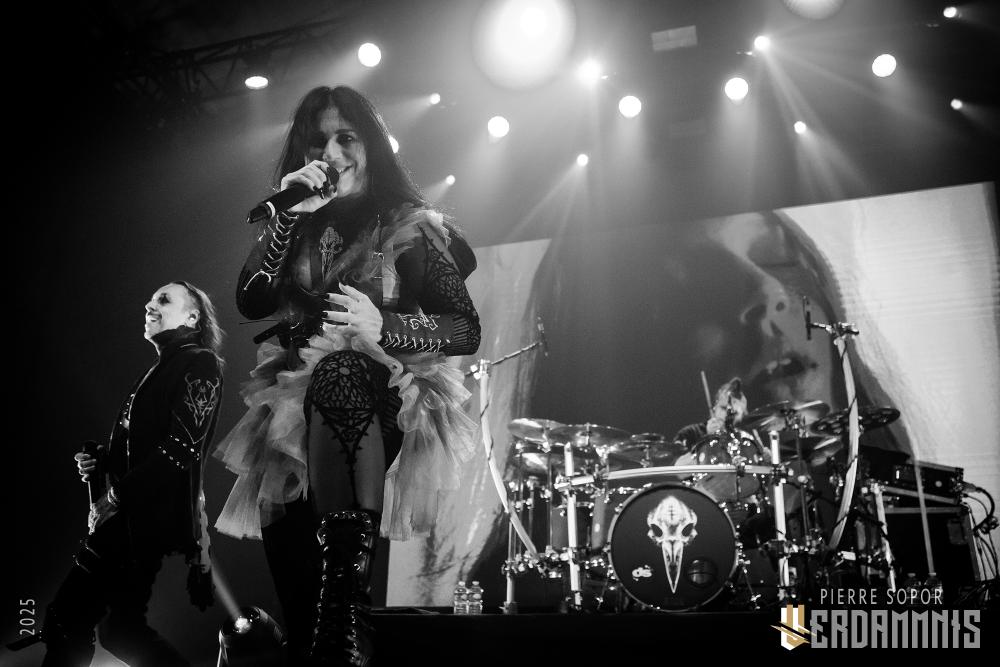 When the generous encore of four songs begins, Richard Meiz resumes his position, standing behind his drums. Scabbia returns with her hood up. It feels like we're back at the beginning, but these are indeed the final moments of a theatrical and unifying hour-and-a-half concert that has flown by in the blink of an eye. Charisma, generosity, interaction with the audience, mutual enjoyment, flawless performances that give the songs extra impact, and Andrea Ferro spending the evening rolling his eyes and pointing his fingers at his temples: Lacuna Coil performs like a well-oiled machine, but with soul. So now, you snobbish elitist metalheads, stop showing off by sulking, admit that you secretly love it and come have a blast at the live show! Don't worry, we won't see you in the dark, we'll be watching the stage! It's time to accept that Lacuna Coil has become unmissable, and this crowded night leaves us feeling confident: they seem to be on the verge of starting a new phase in their career where they are finally given the place they deserve, at the top of the bill!