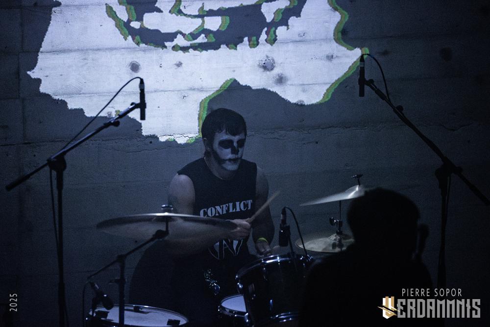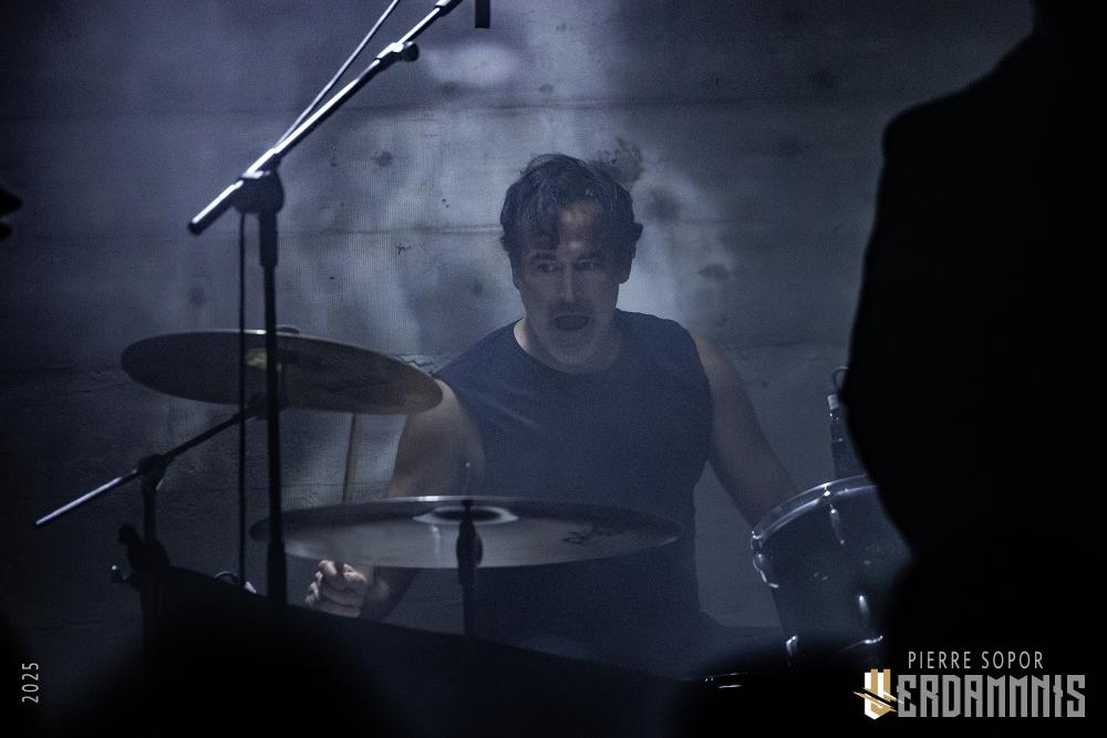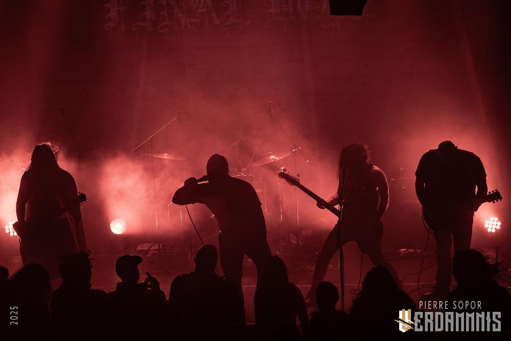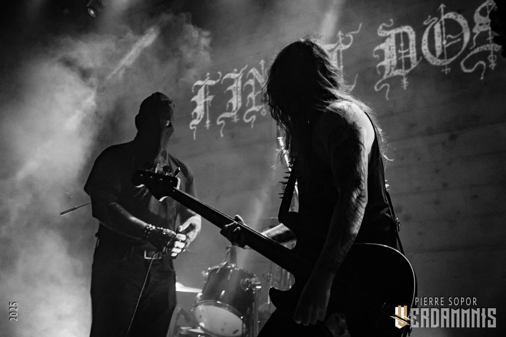 C'est un peu des punks, après tout, mais qui jouent du black metal, alors on porte des capes mais pas trop non plus, parce qu'il faut avoir l'air d'en avoir un peu rien à foutre. Final Dose n'est pas là pour prendre la pose mais pour nous ratatiner les neurones en mode essoreuse, le tout sous des spots rouges invariables qui ne bougeront pas d'un iota pendant le set. Final Dose nous découpe à toute allure et combine la froideur des forêts scandinaves (les hurlements à la lune d'Eternal Winter, écoutez-les, les enfants de la nuit, quelle musique font-ils !) avec une énergie explosive. On est soufflés par ce batteur, possédé, dont le travail de démolition impressionne.