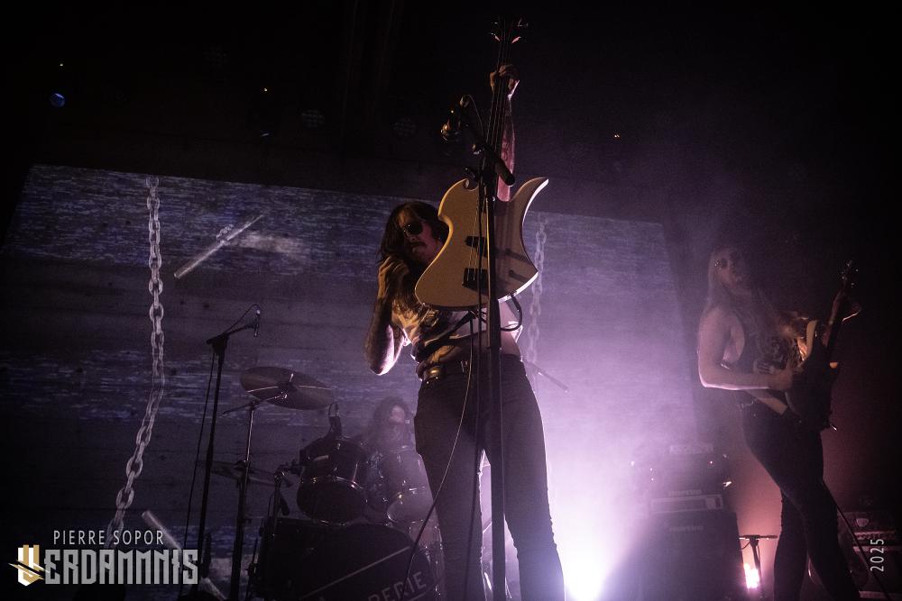Ce qui rend ce premier concert si spécial est sa rareté. Light of the Morning Star cultive un certain mystère. Leur unique apparition en France remonte à 2018... mais ce n'est pas tout : ce soir n'est que leur deuxième concert depuis 2018, tout court. Les voir apparaître en cette soirée spéciale, quand le voile entre le monde des vivants et celui des morts est au plus fin, ne devraît pas nous surprendre... Ainsi, les morceaux du merveilleux album Charnel Noir, paru en 2021, et de l'EP Wings in the Night Sky de 2024, n'ont jamais vraiment eu l'occasion de hanter leur public "en vrai". Pourtant, c'est avec les notes spectrales de Nocta, une piste du premier album, que le rituel commence, d'emblée lourd et captivant.