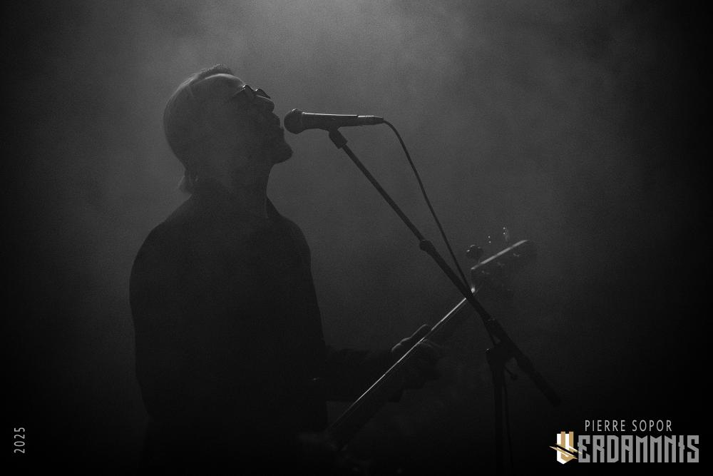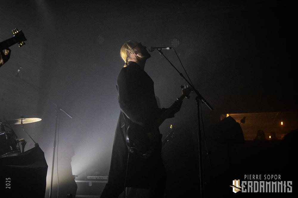 Les mélodies simples nous collent aux tympans. Une boite à rythme sortie tout droit de la Guerre Froide (très, très froide) impose son rythme à l’irrésistible Silence the Night et sa discipline à The Eleventh Dawn, un morceau porté par son électronique hypnotique et sa voix d'outre-tombe. L'intensité atteint son apogée avec Ô Caniveau, dont la théâtralité grandiloquente et le désespoir sublimée éloignent Sang Froid de son univers urbain et réalise, nous rappelant les cauchemars plus fantastiques et mystiques auxquels Light of the Morning Star donnait vie plus tôt. Une marche funèbre cold wave à la mélancolie écrasante qui plonge la Marberie dans un silence respectueux. C'était un des grands moments de la soirée. "Je crèverai seul, voilà tout" : t'en fais pas, si ça te rassure, on mourra tous seuls. N'est-ce pas réconfortant de savoir que nous sommes tous ensembles dans notre solitude ?