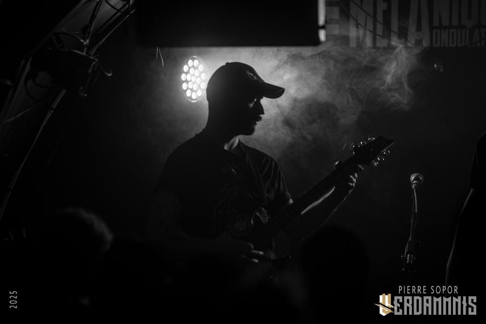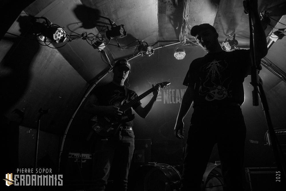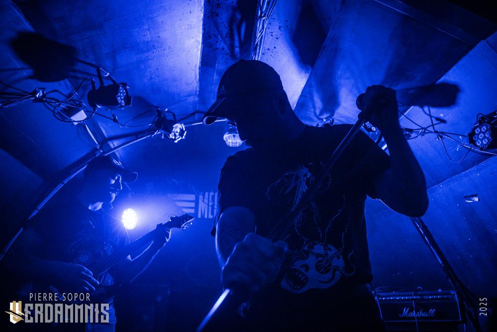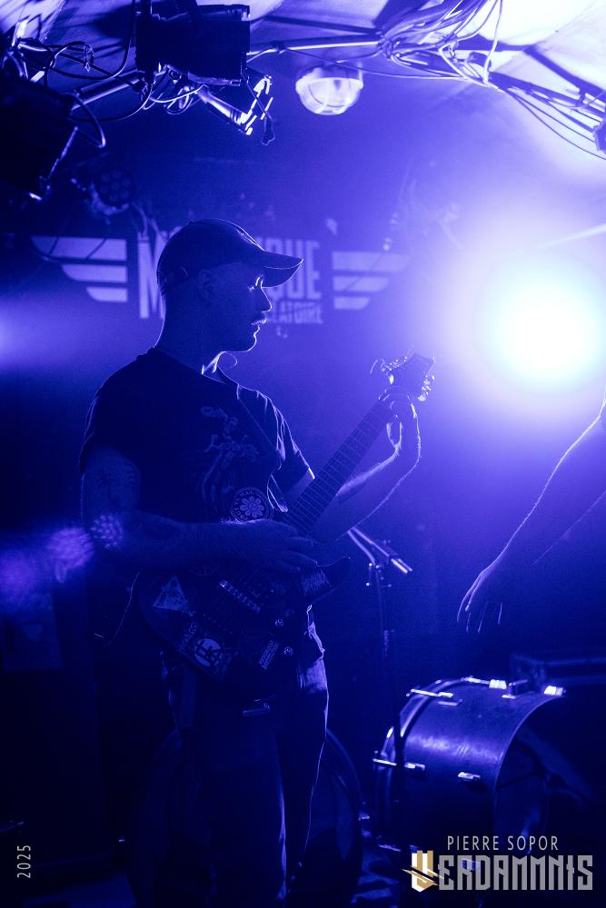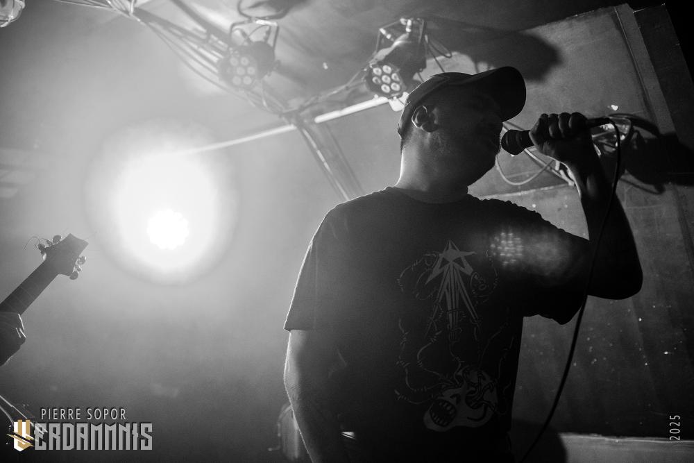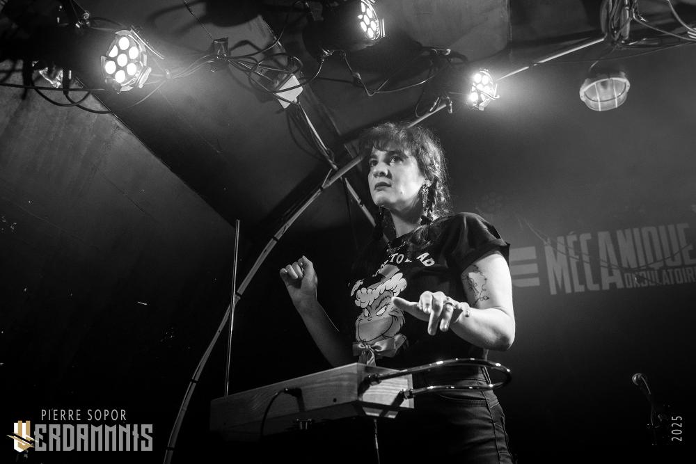 Quand la musique commence, on ne rigole plus trop. On se fait matraquer la tronche par leur black metal à l'univers urbain, fait de barres d'immeuble et de caniveaux. Vauräss hurle avec rage. Il y a des étincelles punk qui sortent le black metal de ses forêts mystiques pour le faire dégueuler sur un parking désert. Vaurien exige une certaine attention car, écouté de loin et distraitement, le set peut paraître d'une uniformité monotone. Pourtant, on prêtant l'oreille, on en apprécie surtout les touches industrielles, dissonances électroniques et noise qui ajoutent à la grisaille. Leurs boucles répétitives aliénantes comme un horizon barré par le béton hypnotisent et tracent les contours de cet univers radical, plus expérimental et affranchi des codes qu'on aurait pu le croire dans les premiers instants. Les lumières bleues ne varient pas d'un poil, Tic et Tac crachent ce qu'ils ont à cracher sans grand discours, sans théâtre. C'est méchant, c'est parpaing, c'est le sombre tunnel de la soirée dont on s'étonne de ressortir vivant.