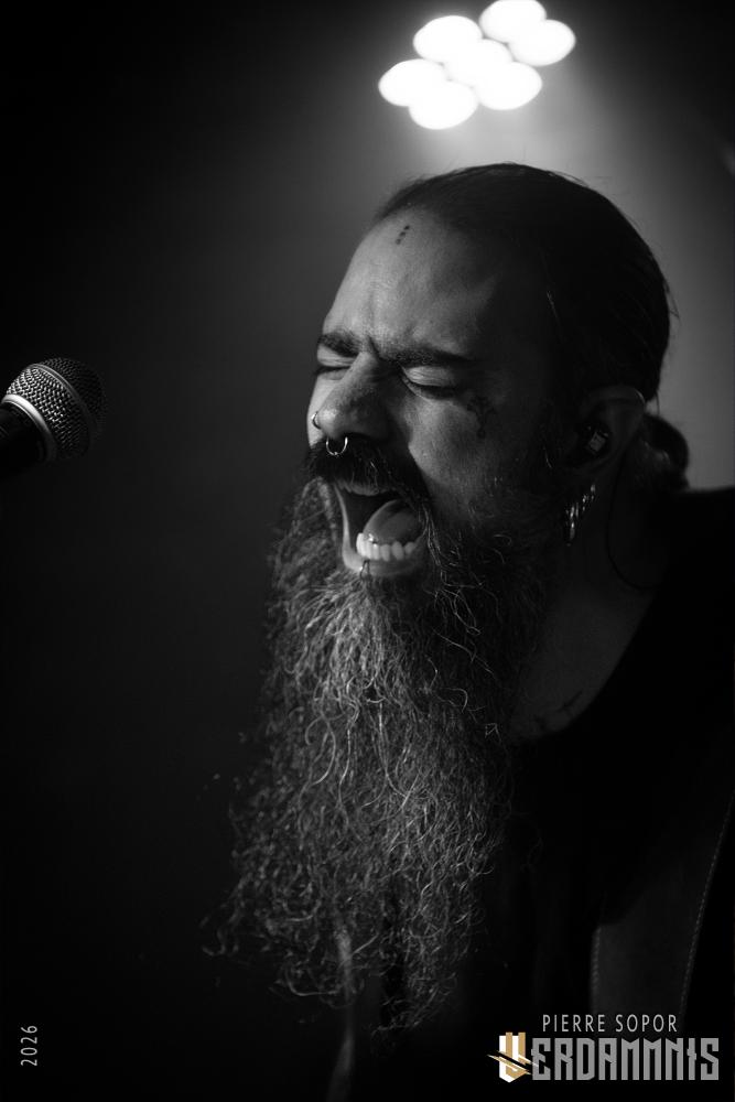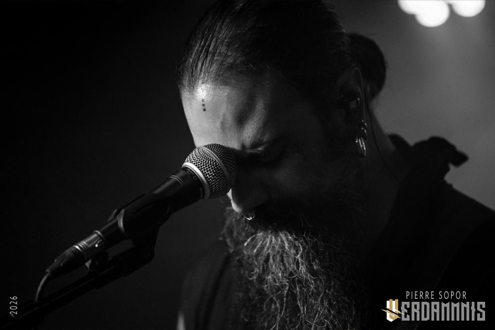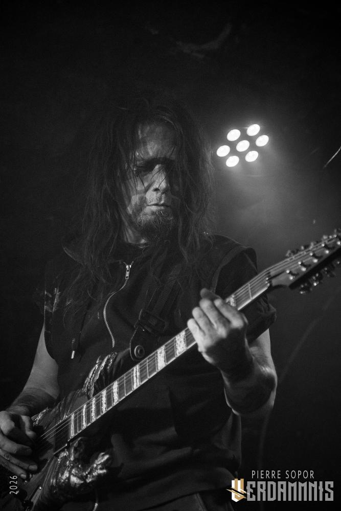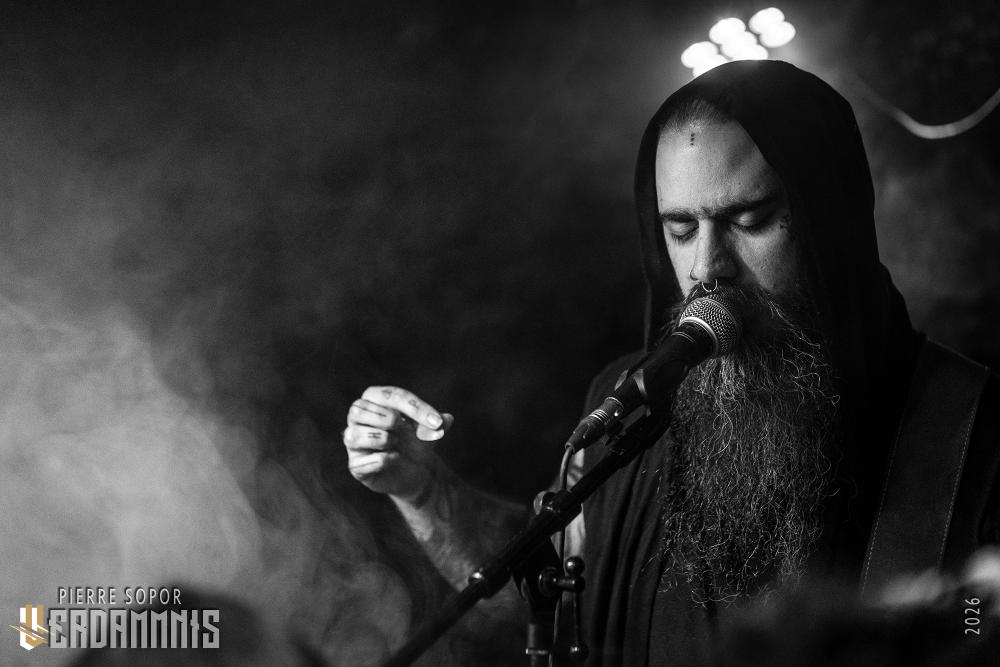 Rien qu'à l'idée, on frissonne : écouter Déhà sous terre, c'est un peu comme se faire enterrer tout en étant conscient. Trop bien. Déhà est rare, il n'aime pas tourner, c'est de notoriété publique. On l'avait pourtant vu il y a quelques mois avant Wolvennest (live report) et c'était un des moments live les plus bouleversants de l'année dernière. Il n'aime pas ça, alors il détourne l'attention ce qui, probablement pour son plus grand désespoir, le rend immédiatement attachant : "Ce soir, je m'appelle Jean-Michel funeral doom... bon courage", qu'il nous balance, laconique, avant de commencer. De la pudeur cachée derrière l'humour, de la tendresse déguisée en attitude boudeuse. Déhà est super dark, Déhà est trop choupinou (n'allez pas lui répéter, il râlerait sûrement comme un putois).