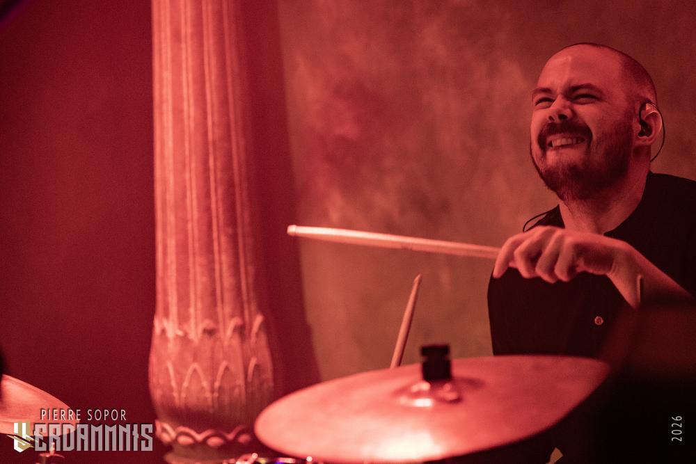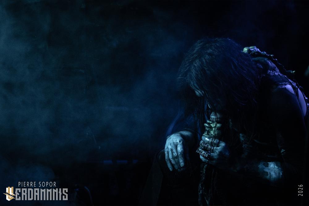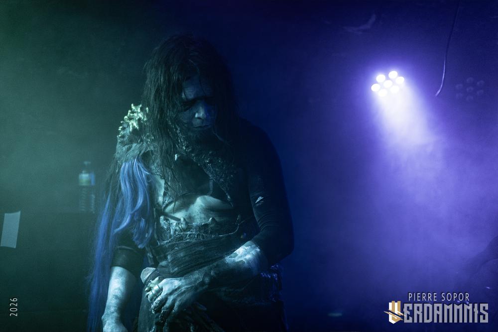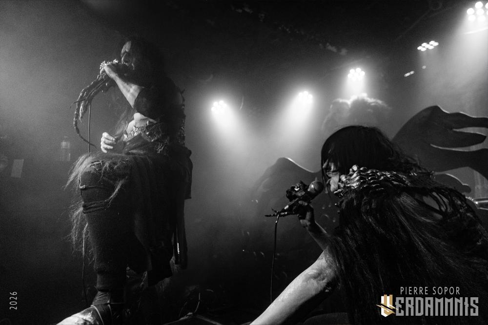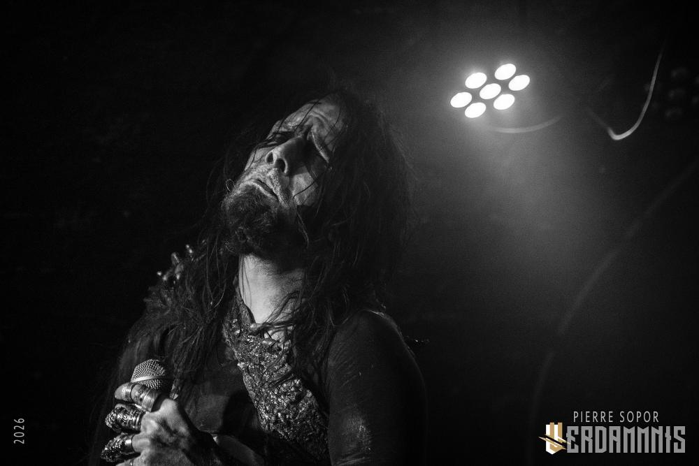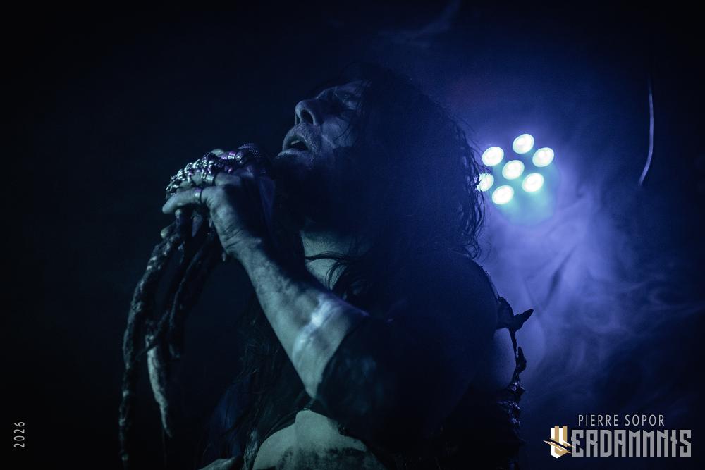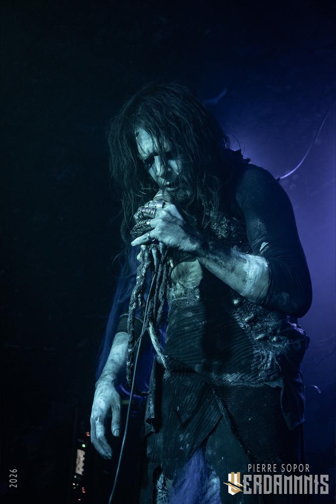 Avant que la musique ne commence, l'immersion se fait par le visuel : sous les spots bleutés, on découvre des tenues primitives intrigantes, des visages peinturlurés. Öxxö Xööx a quelque chose de théâtral, qui tient également au charisme de son duo, mais ce n'est pas pour autant que la démarche n'est pas sincère. Laurent Lunoir ne quitte d'ailleurs jamais son personnage scénique, quel que soit le projet avec lequel il se produit, ce n'est pas qu'un déguisement pour faire beau : quand il est question de son art, les choses ont un sens, une importance. La lourdeur du doom, des touches baroques, deux voix qui se répondent, un jeu de scène qui permet aux personnages de prendre vie. Leur osmose scénique fonctionne toujours aussi bien, leur complémentarité aussi, autant dans le chant que la gestuelle. Ensemble, ils sont souvent à terre, écrasés, accablés, puis s'élèvent, touchés par une forme de grâce spirituelle.