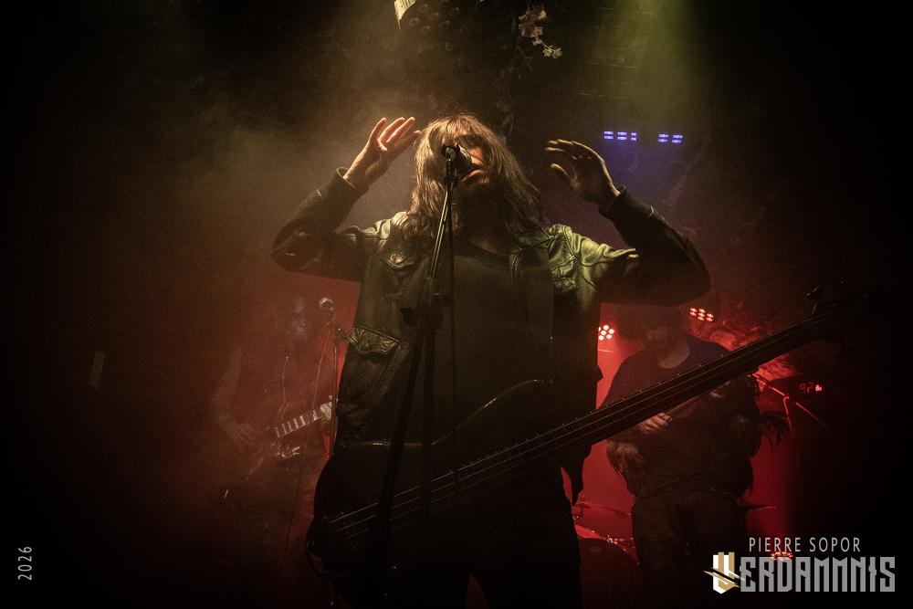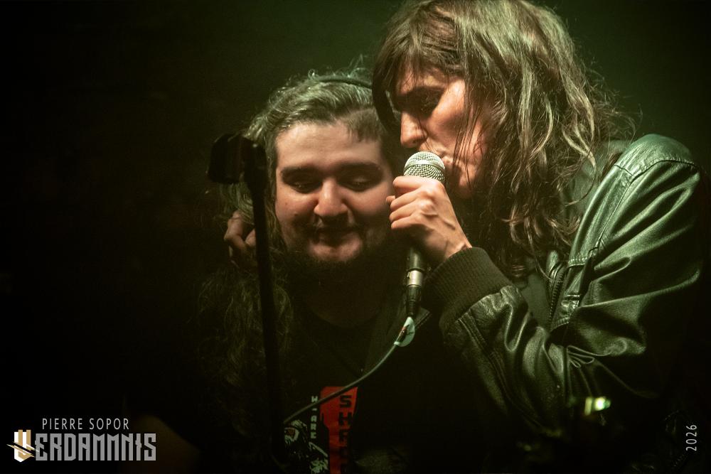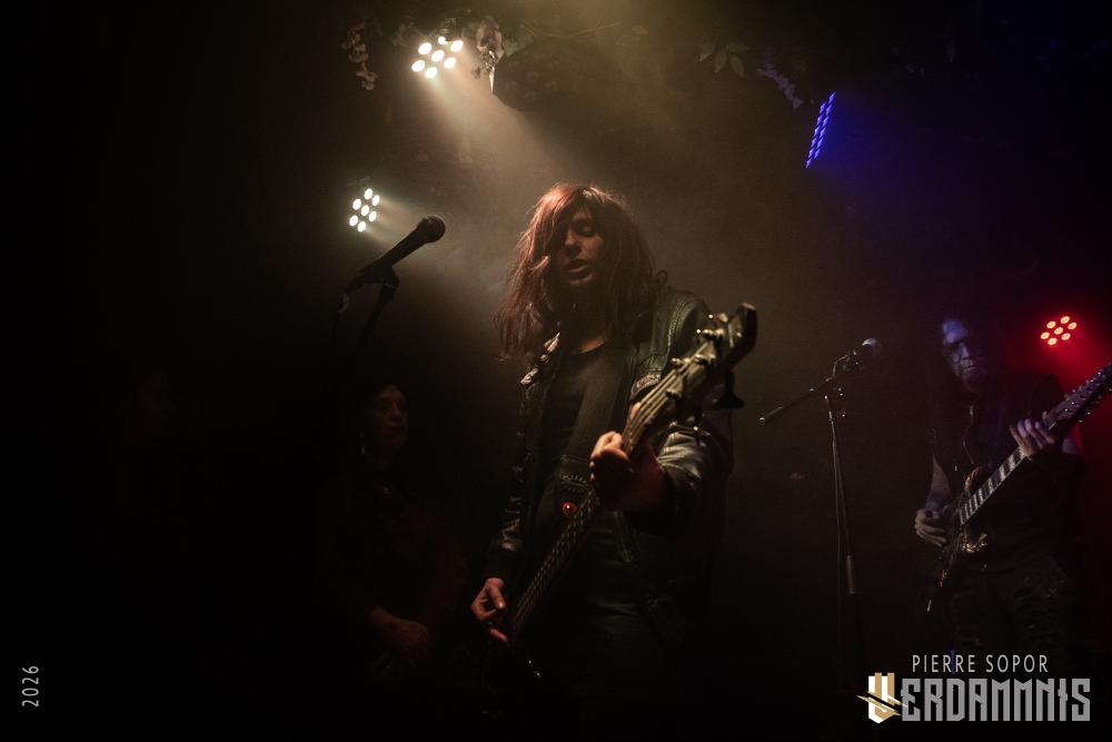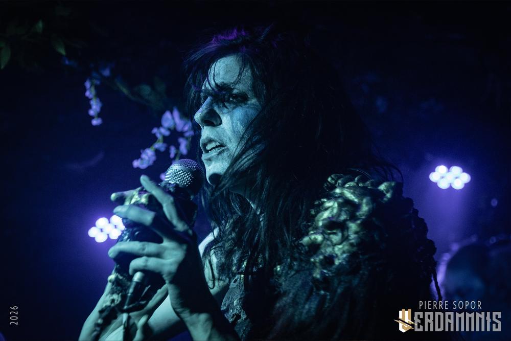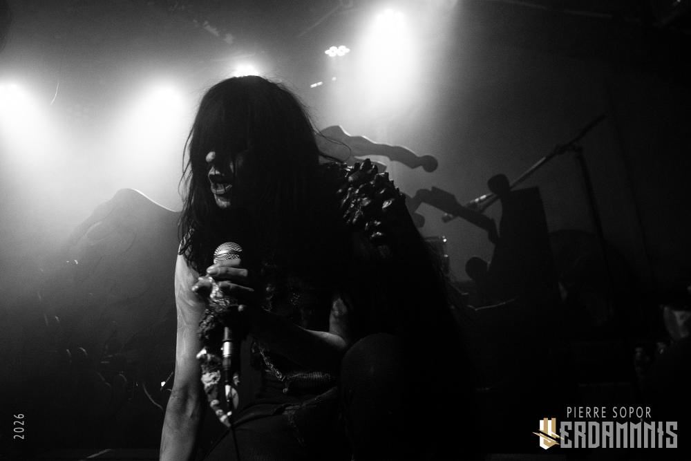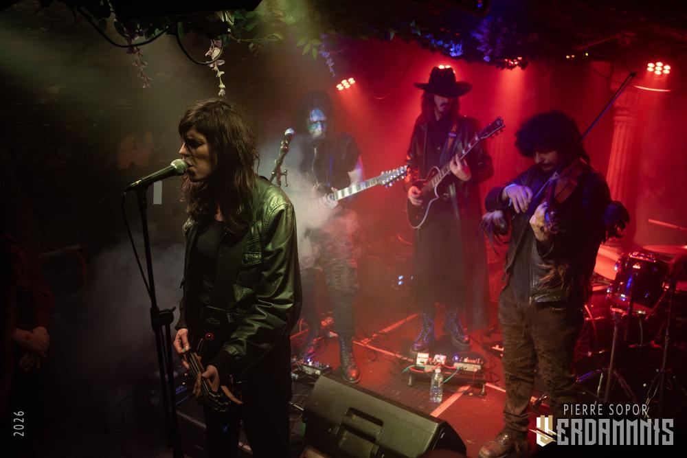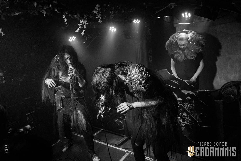 Rïcïnn est un monstre fascinant, une créature hybride qui interroge et émerveille. On est immédiatement soufflés par la puissance de la voix de Laure. A plusieurs reprises, elle s'adresse à Clémence, la plus iconique ingé son des souterrains parisiens et bassiste de Shaârghot, et lui demande un coup de main pour faire tenir son pied de micro mais très franchement, elle pourrait presque s'en passer tant sa voix résonne sur la pierre. Puis, c'est l'énergie de la musique qui nous happe. En live, Rïcïnn sonne bien plus rock, plus rentre-dedans, que les souvenirs que nous avions de ses deux albums (bien que Nereïd était parfois plus lourd et tendu). Son groupe assure, ça part dans tous les sens. Si nos regards se tournent évidemment souvent vers Laurent Lunoir en raison de son maquillage, à la présence monolithique, nos oreilles sont toutes chamboulées par un violon virtuose et théâtral complètement fou. En plus, le gars qui en joue a une veste ornée de plumes, ce dont personne ne parle, comme si c'était normal, comme si avoir des plumes sur son blouson était un truc banal. Dites-donc, les alternatifs parisiens, là, quand même, arrêtez de faire genre vous avez tout vu, un manteau à plumes, c'est un vrai sujet !