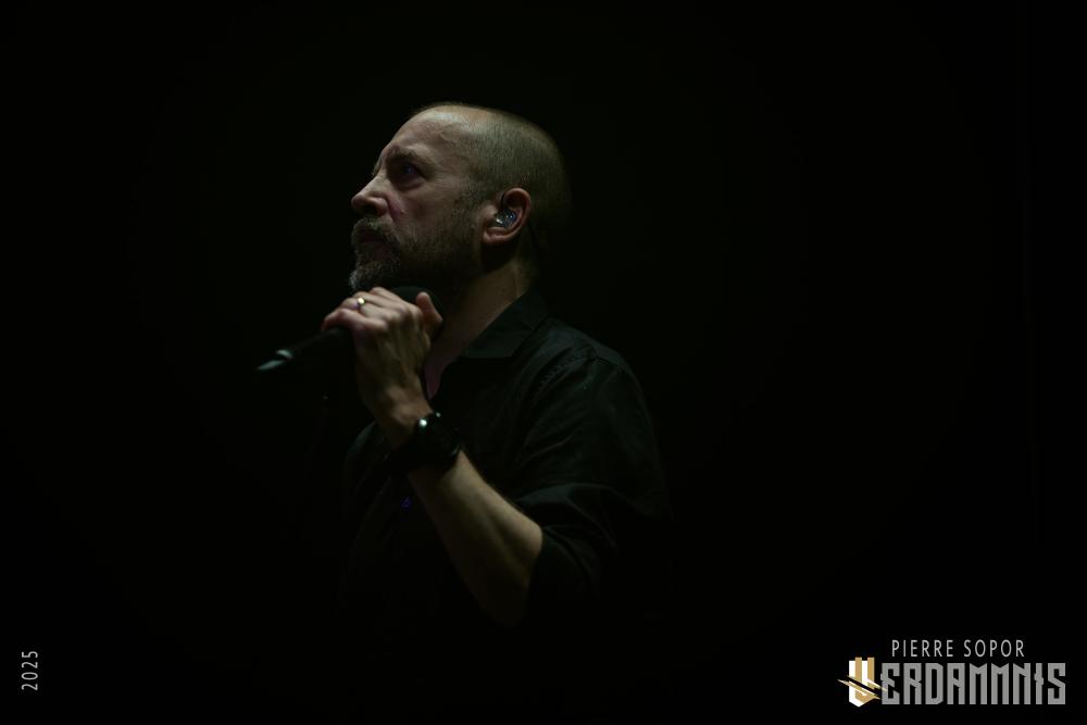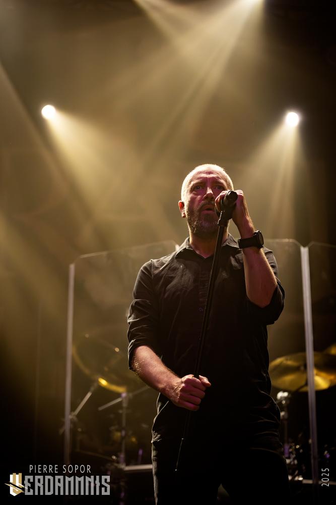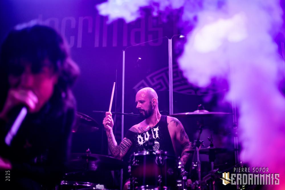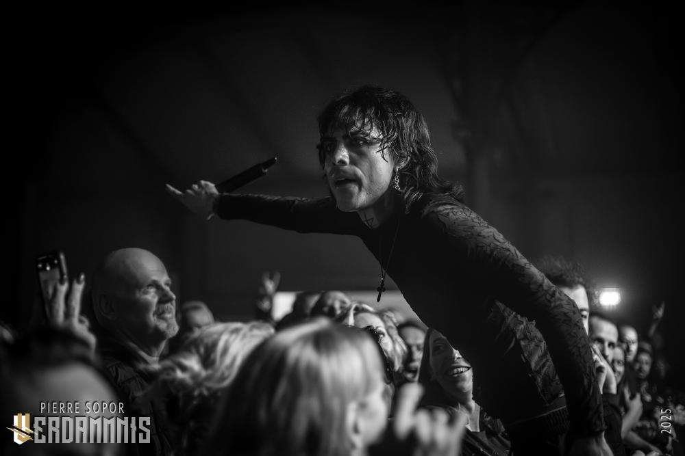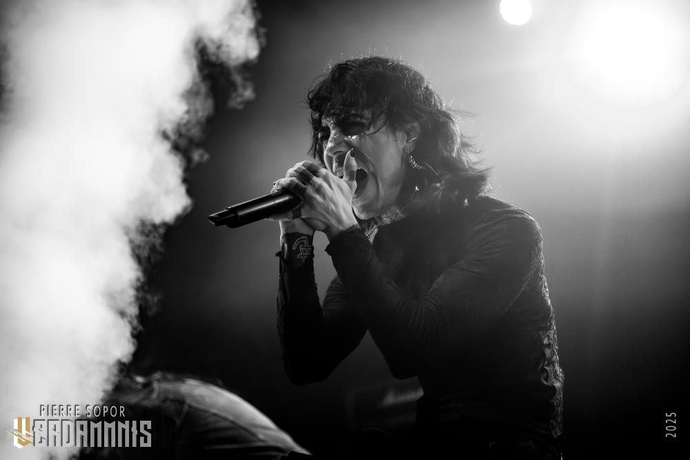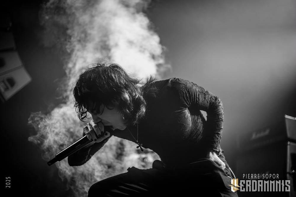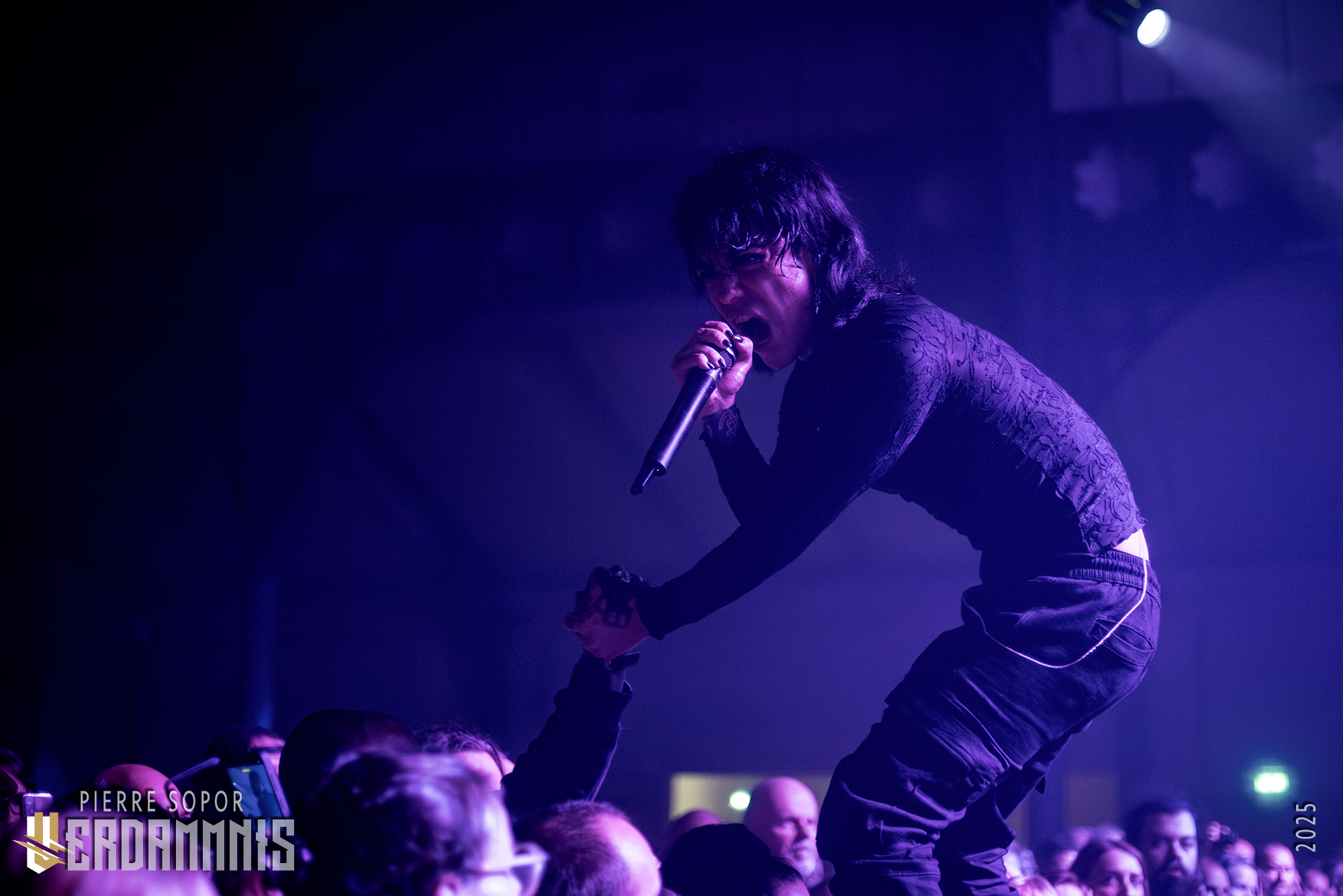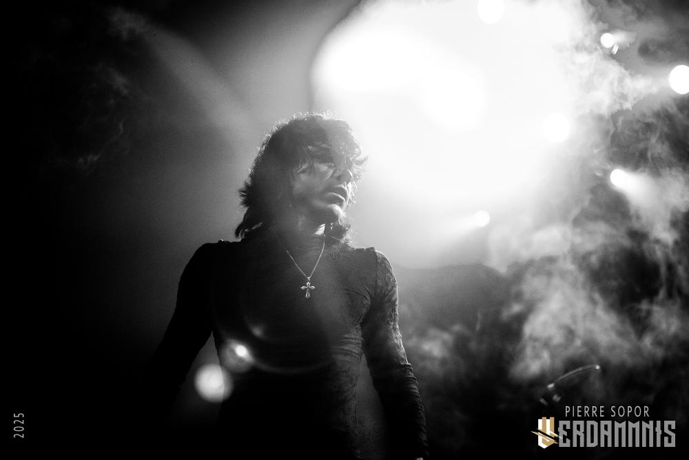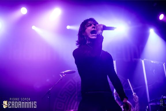 Ne pas arriver en retard : la règle est d'autant plus vraie quand un groupe commence légèrement en avance ! Lacrimas Profundere a hâte d'en découdre avec le public et ceux qui n'ont pas suivi la carrière du groupe avec assiduité ont de quoi être surpris par l'énergie de Julian Larre, chanteur en poste depuis 2018. Le bonhomme gambade dans tous les sens, descend à la barrière puis l'enjambe pour cavaler dans la fosse... on est loin de l'image qu'on se faisait de ces vétérans du metal gothique ! On espérait pouvoir un peu se morfondre dans le noir et voilà qu'on se retrouve à devoir faire des activités, comme taper dans les mains, et tout !