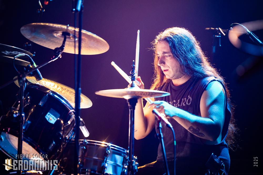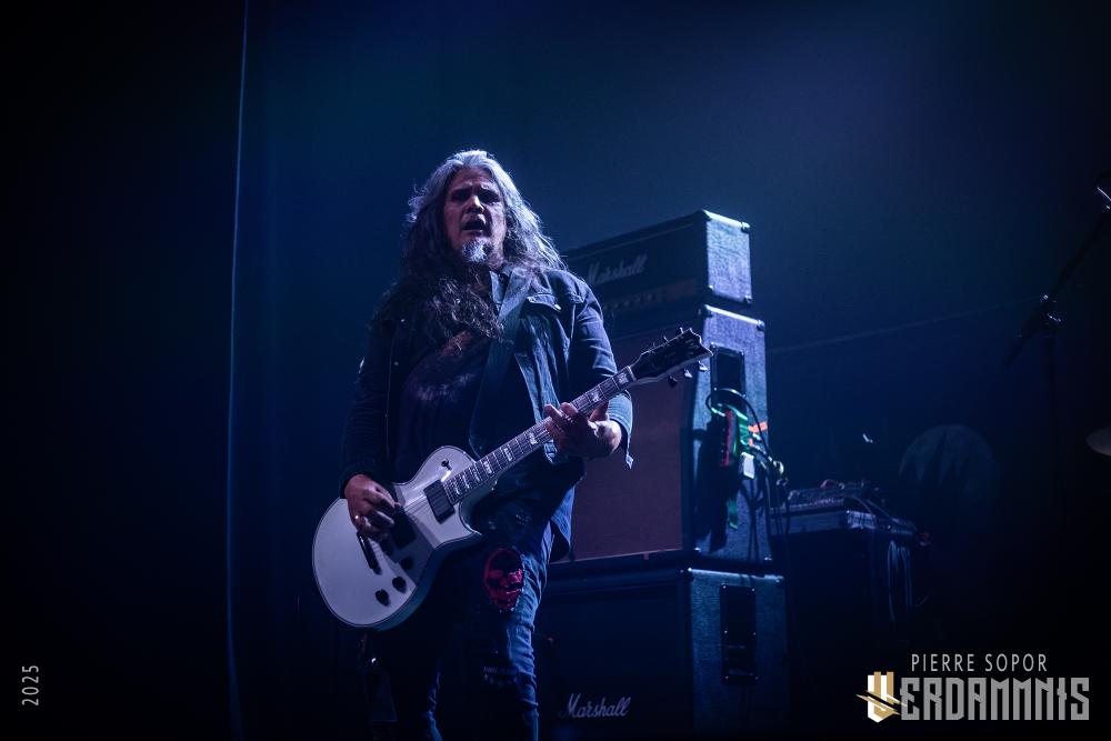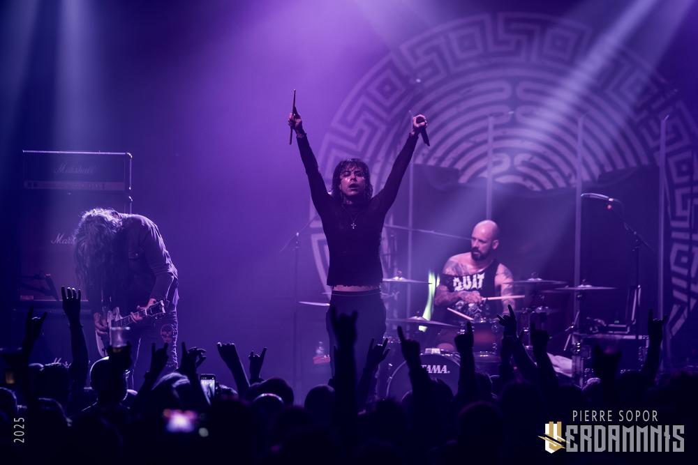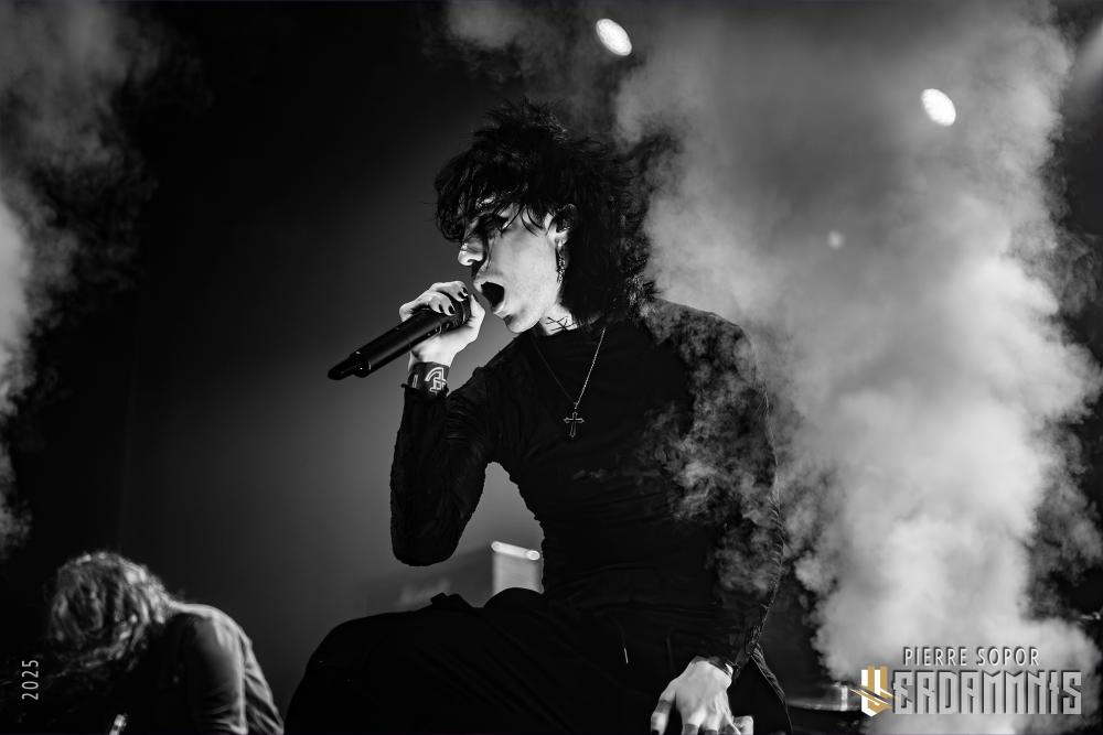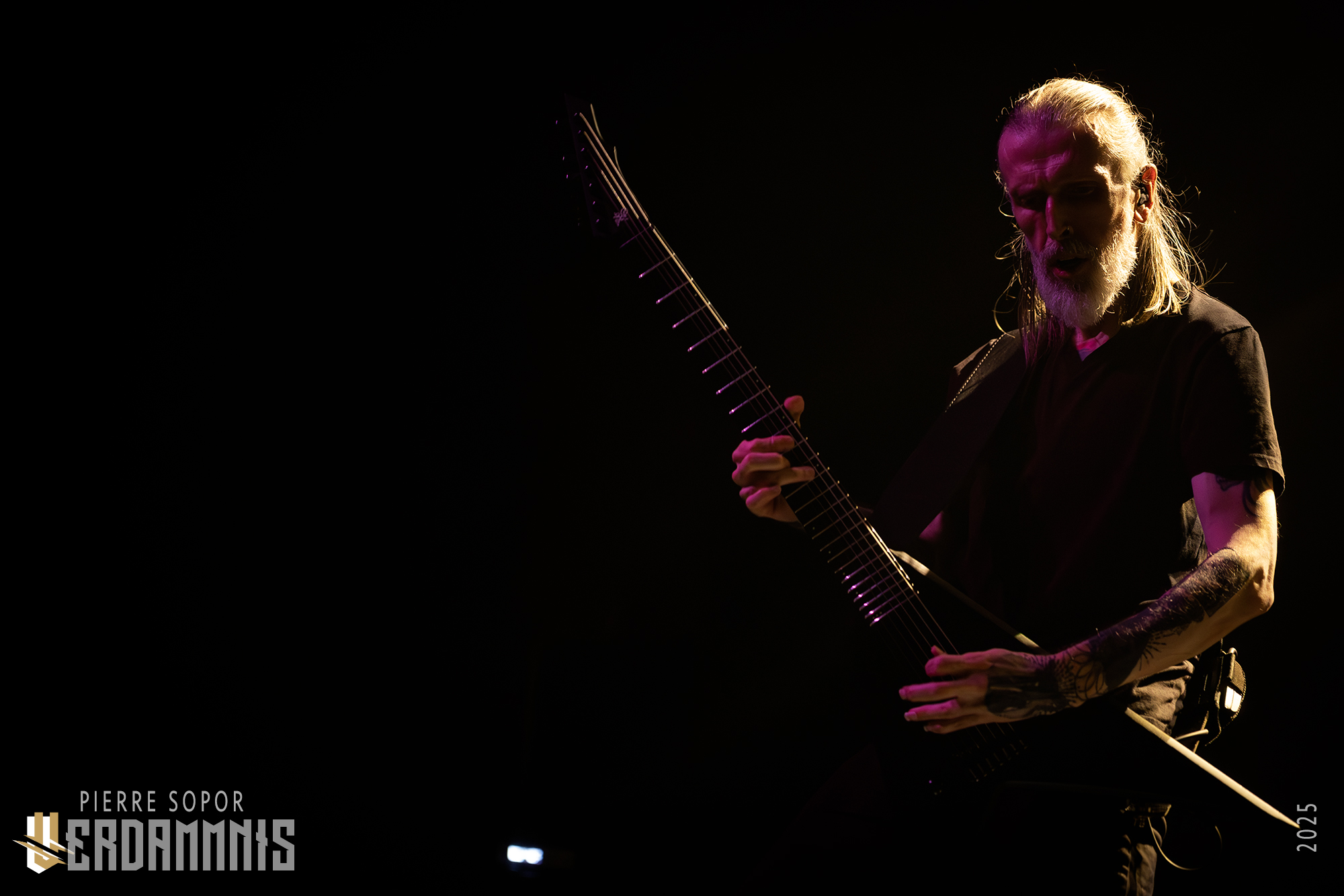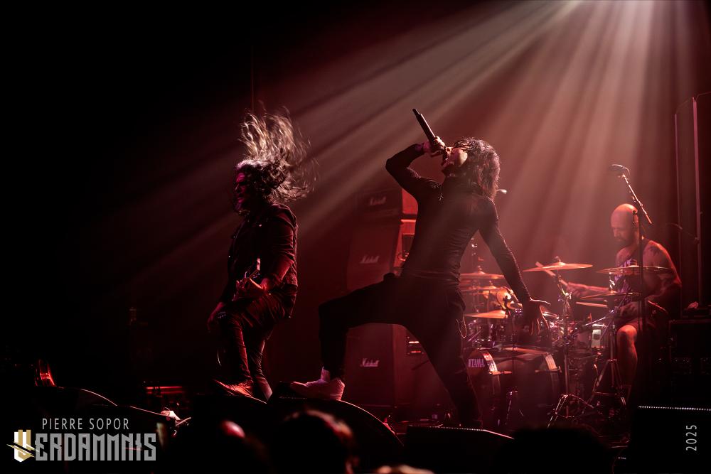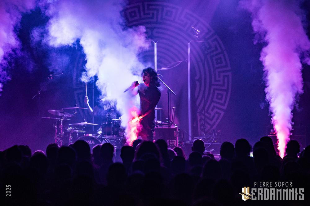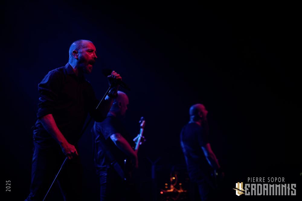 Ne pas arriver en retard : la règle est d'autant plus vraie quand un groupe commence légèrement en avance ! Lacrimas Profundere a hâte d'en découdre avec le public et ceux qui n'ont pas suivi la carrière du groupe avec assiduité ont de quoi être surpris par l'énergie de Julian Larre, chanteur en poste depuis 2018. Le bonhomme gambade dans tous les sens, descend à la barrière puis l'enjambe pour cavaler dans la fosse... on est loin de l'image qu'on se faisait de ces vétérans du metal gothique ! On espérait pouvoir un peu se morfondre dans le noir et voilà qu'on se retrouve à devoir faire des activités, comme taper dans les mains, et tout !