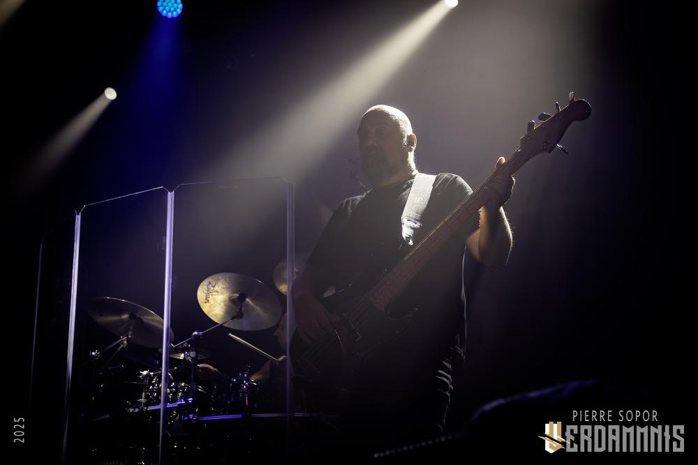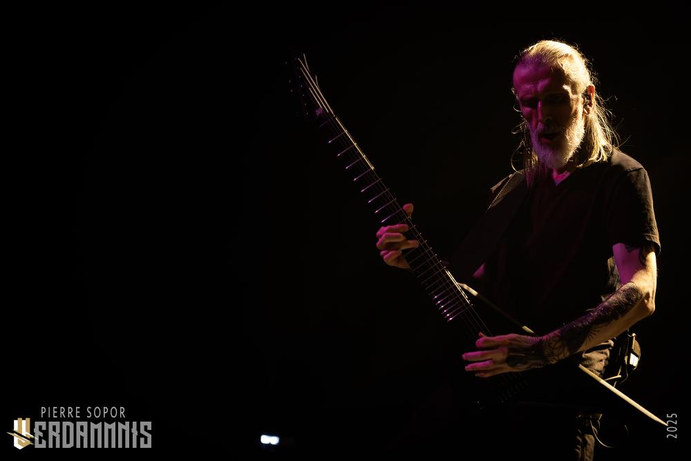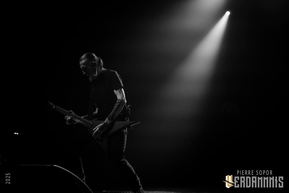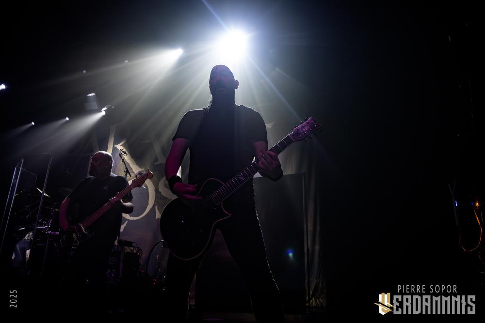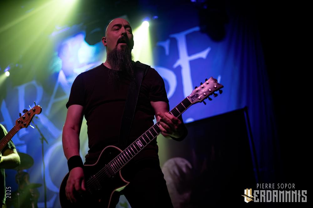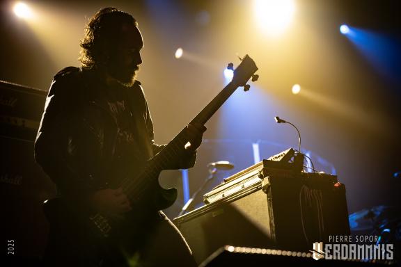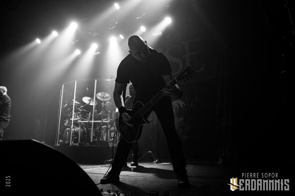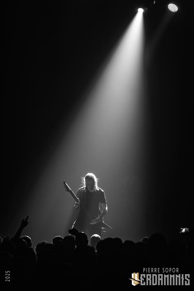 Entre les surprises et les incontournables (Faith Divides Us - Death Unites Us pendant laquelle on agite les loupiotes des téléphones en chantant "ohohoooooh"), Paradise Lost régale. Sur scène, eh bien, sans grande surprise, Greg Mackintosh fait la gueule dans son coin (pourtant, il est régulièrement mis en avant par son spot de lumière : le patron des mélodies qui nous enterrent vivant, c'est lui), Nick Holmes se tient droit, solennel. On a dit le cafard, pas la chenille. Pourtant, à sa façon, il divertit le public de quelques rares bons mots. Son humour pince-sans-rire fonctionne particulièrement au cours d'un rappel au thème visiblement très festif : après la bien nommée No Celebration, il lâche un "bonne année" puis présente Ghosts et ses relents de Sisters of Mercy comme une chanson de Noël. Le voilà, le sens de la fête à la Paradise Lost : des fantômes, de la déprime, la mort et surtout, SURTOUT pas la chenille et toutes ces conneries. Avec eux, le mot "fun" est avant tout le début de "funérailles".