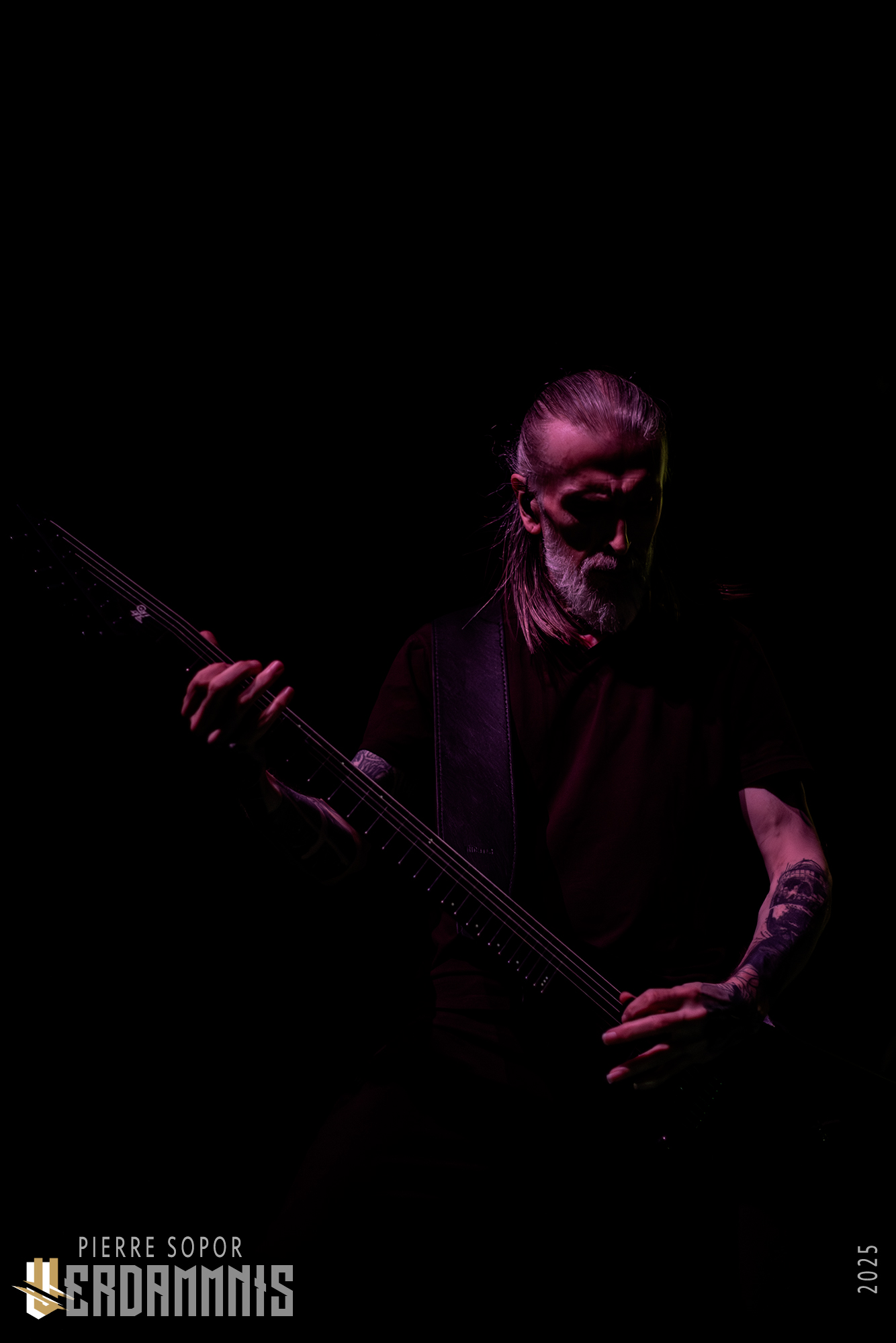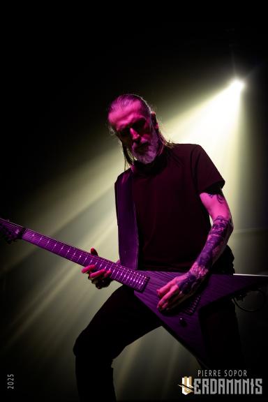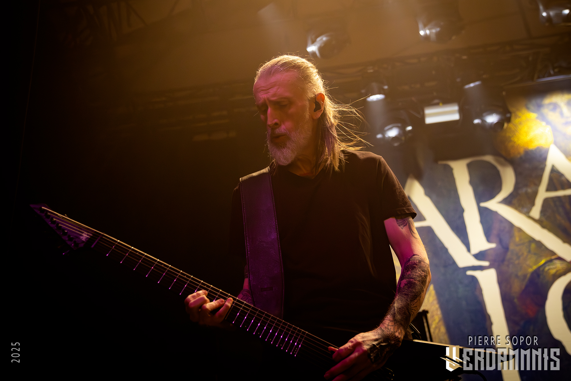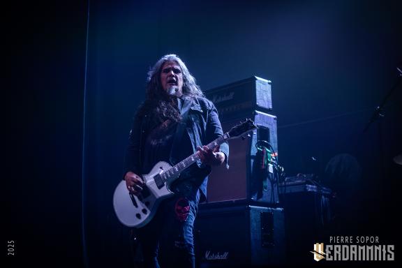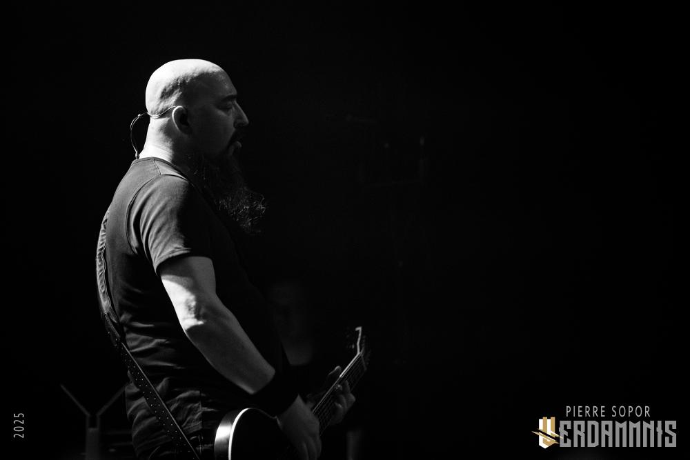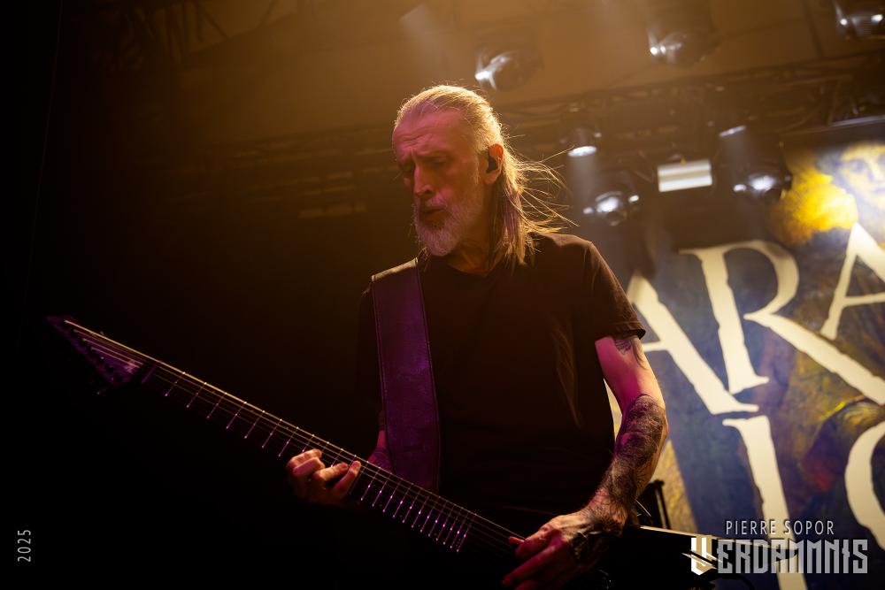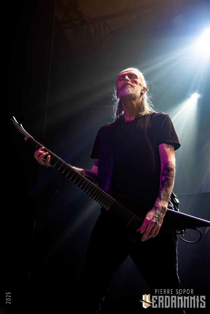 Entre les surprises et les incontournables (Faith Divides Us - Death Unites Us pendant laquelle on agite les loupiotes des téléphones en chantant "ohohoooooh"), Paradise Lost régale. Sur scène, eh bien, sans grande surprise, Greg Mackintosh fait la gueule dans son coin (pourtant, il est régulièrement mis en avant par son spot de lumière : le patron des mélodies qui nous enterrent vivant, c'est lui), Nick Holmes se tient droit, solennel. On a dit le cafard, pas la chenille. Pourtant, à sa façon, il divertit le public de quelques rares bons mots. Son humour pince-sans-rire fonctionne particulièrement au cours d'un rappel au thème visiblement très festif : après la bien nommée No Celebration, il lâche un "bonne année" puis présente Ghosts et ses relents de Sisters of Mercy comme une chanson de Noël. Le voilà, le sens de la fête à la Paradise Lost : des fantômes, de la déprime, la mort et surtout, SURTOUT pas la chenille et toutes ces conneries. Avec eux, le mot "fun" est avant tout le début de "funérailles".