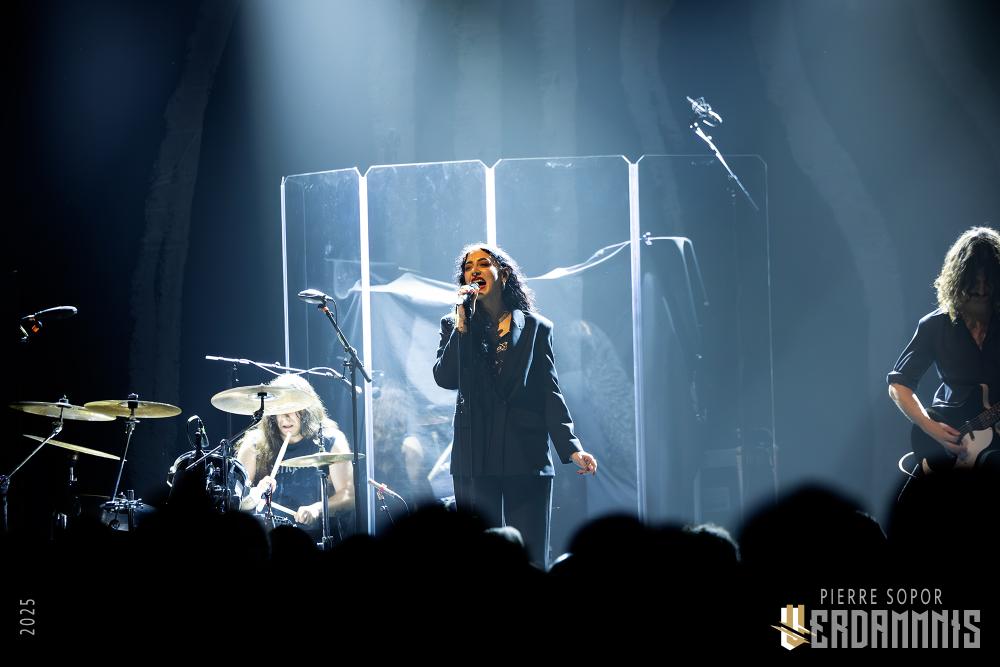 Il y a de quoi trouver cela austère. Pourtant, la musique de Messa ne l'est pas. Il faut alors prendre le temps de se laisser transporter par ces longs titres atmosphériques, se laisser guider par le chant de Sara Bianchin dans un univers brumeux qui ne se révèle pas immédiatement. Comme d'habitude, c'était de toute élégance. Messa semble cultiver une distance qui n'est pas de la frime mais plutôt un détachement, ils n'appartiennent pas tout à fait à la réalité et le concert passe alors comme un mirage dans la chaleur étouffante de l'Elysée Montmartre, complet. Cela n'empêche pas une forme de communication discrète et chaleureuse dans les sourires de la chanteuse et ses nombreux remerciements... Le mirage continue encore un peu après le concert, alors que la sono nous fait passer le temps avec Dead Can Dance. La classe.