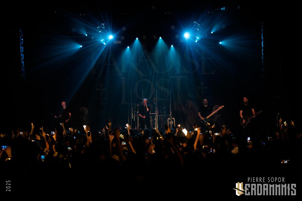 Le seul reproche qu'on peut leur faire, finalement, c'est d'avoir passé aussi longtemps backstage avant le rappel. Les gars, on le sait, c'est de la comédie ! Revenez plus vite, et jouez-nous un titre de plus ! Mais alors lequel ? Alors, là, bon courage. Un petit No Hope in Sight ? Un Perfect Mask rigolo pour être sombre comme dans les années 2000 ? Peu importe, tout est bien, comme on a pu en avoir la confirmation avec une setlist qui a brassé large (enfin, si l'on oublie le peu de surprise dans le choix des titres du dernier album en date). Paradise Lost fédère et, malgré ses mines renfrognées, a aussi proposé DES ACTIVITÉS à un public trop content de pouvoir agiter ses mimines, chanter les refrains et faire des jolies lumières. Allez, 66,6 % cafard, 33,3% chenille... et surtout pas de célébration !