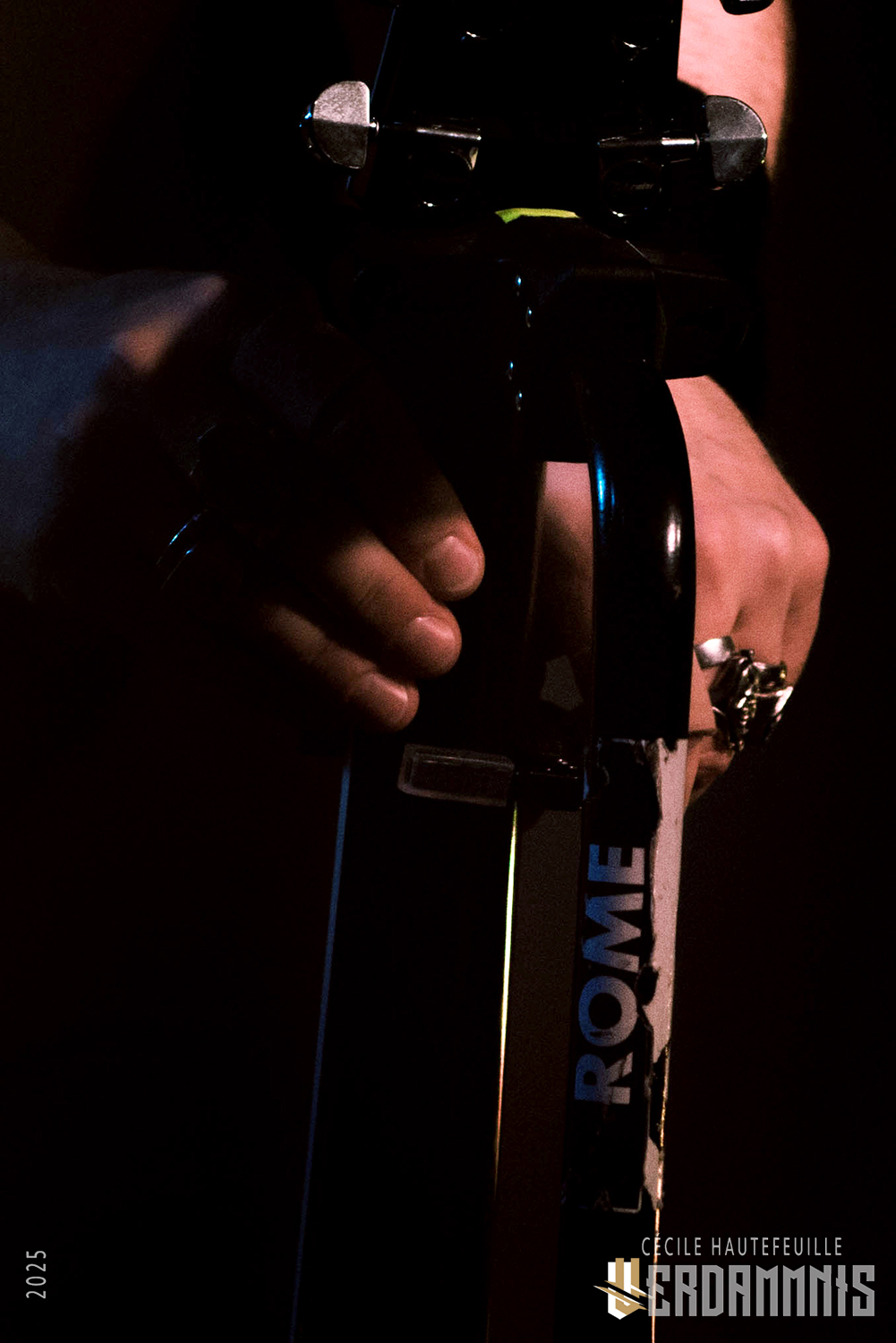 Au gré des albums, ROME change son line-up live selon les envies et les besoins. Il y eut des tournées classiques à deux ou trois musiciens avec percussions et basse en accompagnement, des tournées solo acoustique, et d'autres avec tout un orchestre, guitares, violon et accordéon notamment. Chaque tournée est une pochette surprise et porte une coloration différente. 2025 marque les 20 ans du projet, et on s'attend bien évidemment à un mélange de toutes les sonorités expérimentées au fil des années. On retrouve une composition assez classique, guitare, basse, batterie, percussions, et samples et nappes pré-enregistrés pour accompagner cet équipage. L'ambiance de cette tournée reflète notre actualité : lourde, sombre, laissant peu de place à l'espoir. Bref, tout ce qu'on aime.