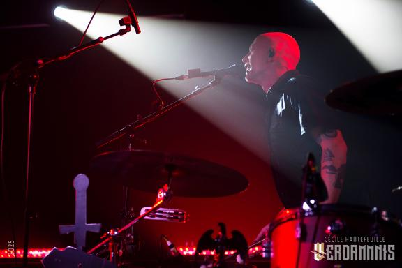Pour compléter le tableau, le groupe est accueilli dans l'indifférence presque générale. Le concert est pourtant complet, mais à l'arrivée des trois musiciens sur scène, deux ou trois applaudissements se battent en duel. Si on voulez taquiner, on dirait que c'est un début de concert tout ce qu'il y a de plus standard chez les gothiques allemands. Il fait pourtant déjà très chaud dans la salle, mais ce début de concert est froid, empreint de gravité. On est d'entrée plongés dans le grand bain avec le délicieux pessimisme de First We Take Berlin, entre le trio de percussions martiales et le sample industriel strident. Toute la première partie du concert est crispante et hypnotisante. Aucun discours entre les morceaux, pas plus de sourires sur les visages, ROME pioche dans sa discographie les titres les plus sombres. Pas de mélancolie, de nostalgie, de lyrisme. De la noirceur brute, nue.