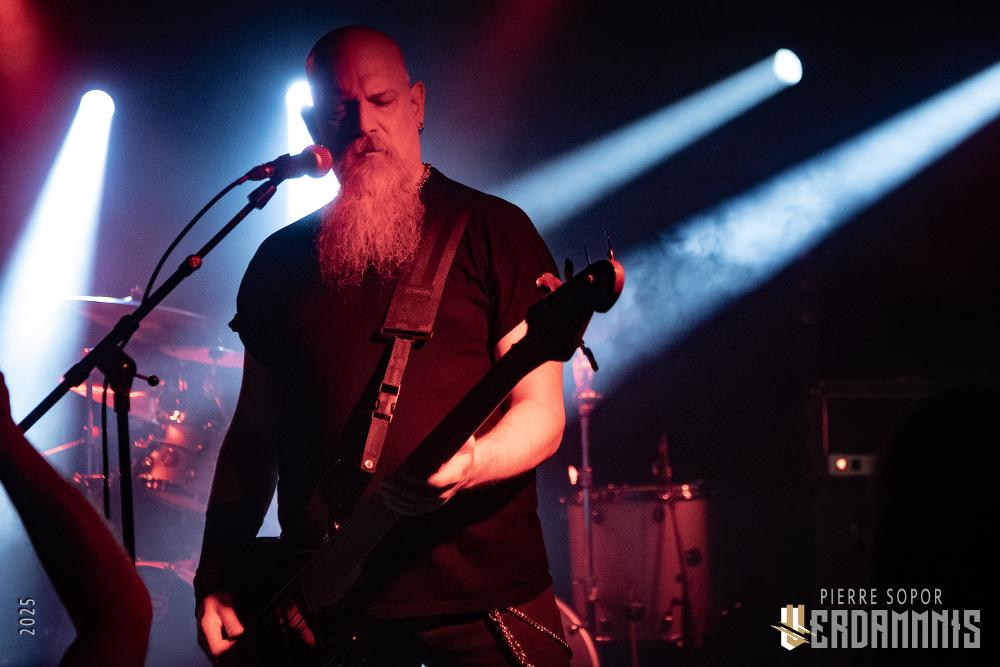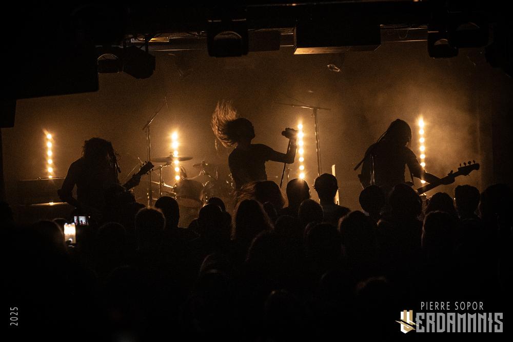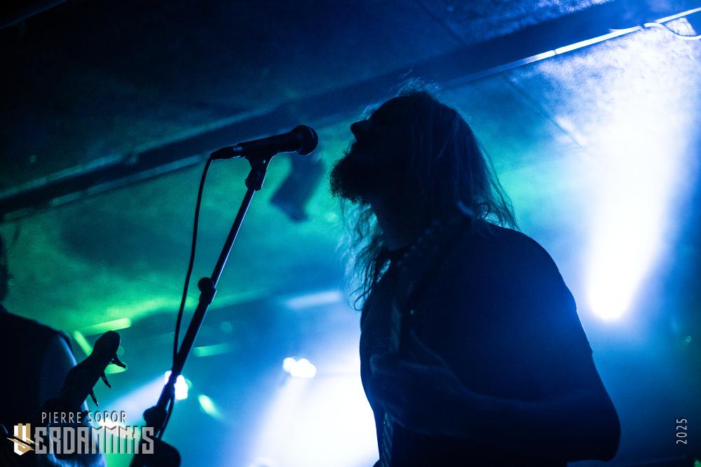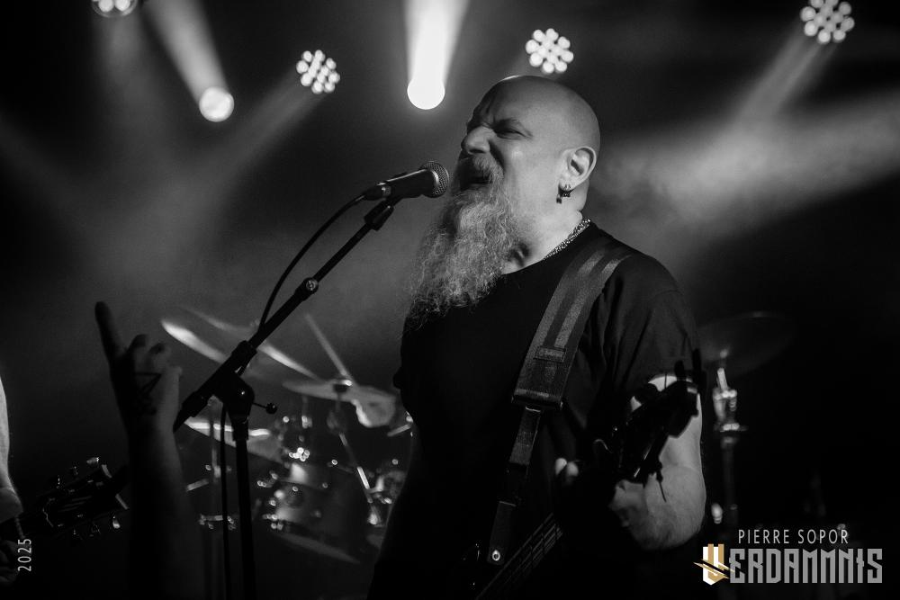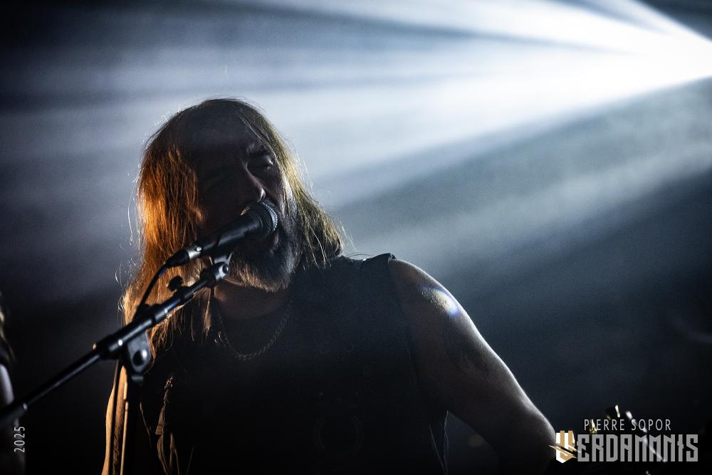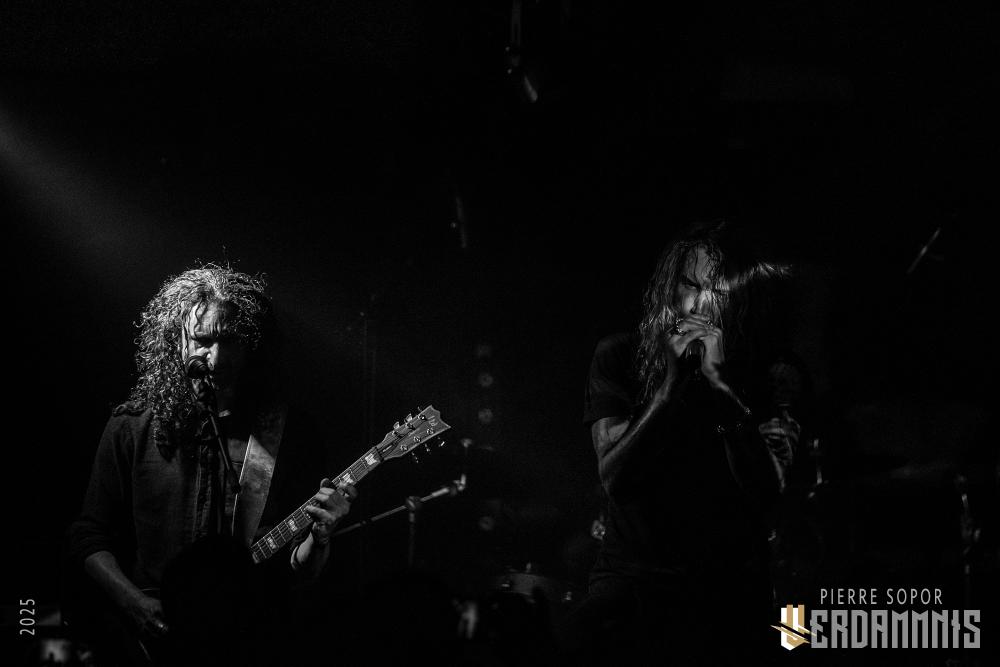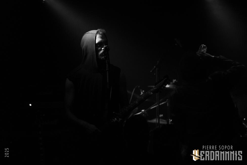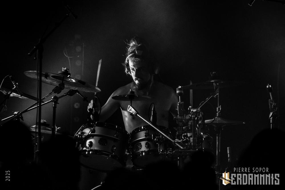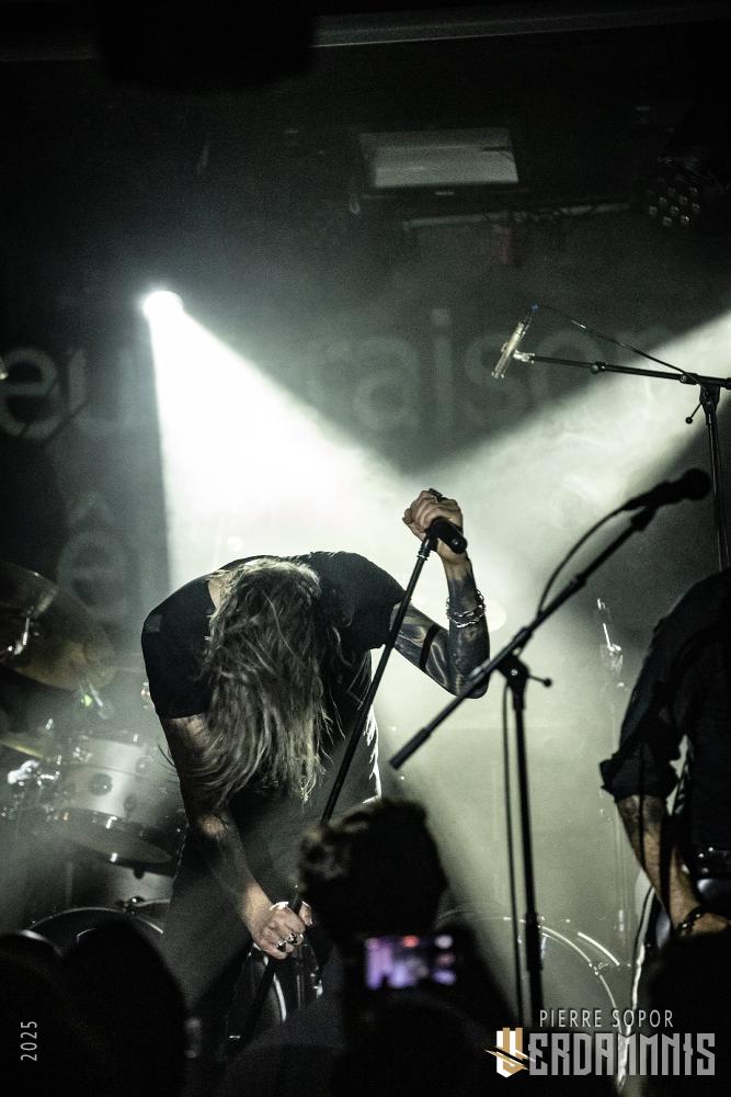 Between its atmospheric cinematic passages, introspective electronic sections, and more theatrical explosions reminiscent of Rotting Christ and Behemoth, Decline of the I references Kierkegaard, Jean Eustache, and Bukowski, resulting in a fascinatingly rich work. Hidden in the shadows, the tormented mastermind behind the project and guitarist AK (who has worked with Eros Necropsique, further proof that this gentleman appreciates the most tortuous darkness) lets his singer take centre stage. It's a bit of a shame that the layout of the venue doesn't allow us to really see the screen at the back of the stage, onto which lyrics and film clips are projected, as this visceral poetry lends itself to less conventional staging. The tracks are long, immersive, ambitious and exciting. Decline of the I is an atypical project with a unique universe that explodes preconceived notions of genre and bends the rules to put music at the service of emotions, which is all the more true with the deep, clear vocals provided by AK. This universe may demand extra attention from its audience, but the reward is well worth it: it is powerful, haunting, tortuous, but always strikingly beautiful.