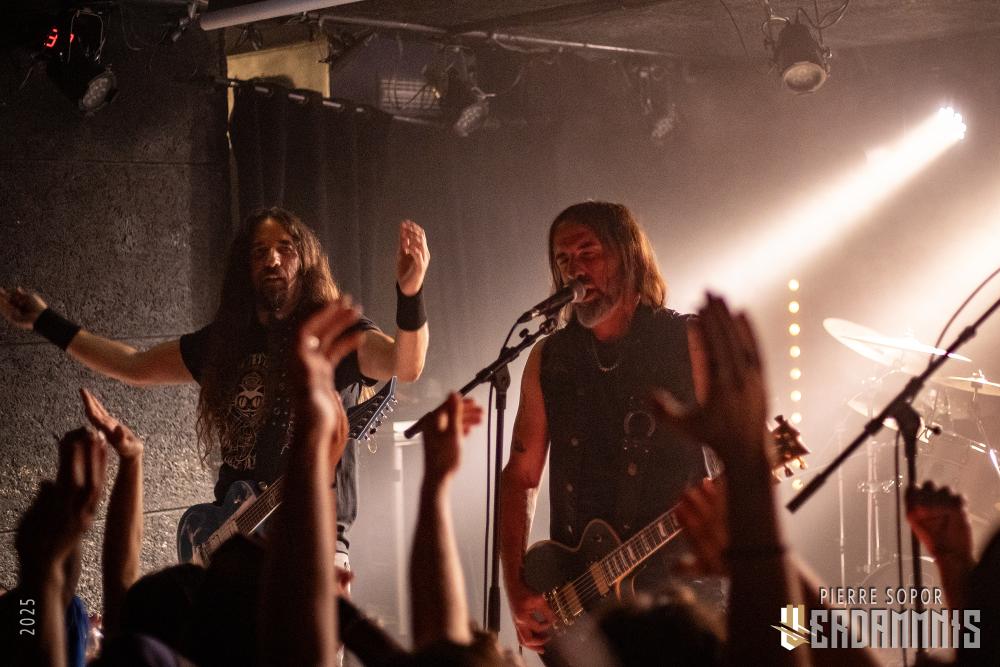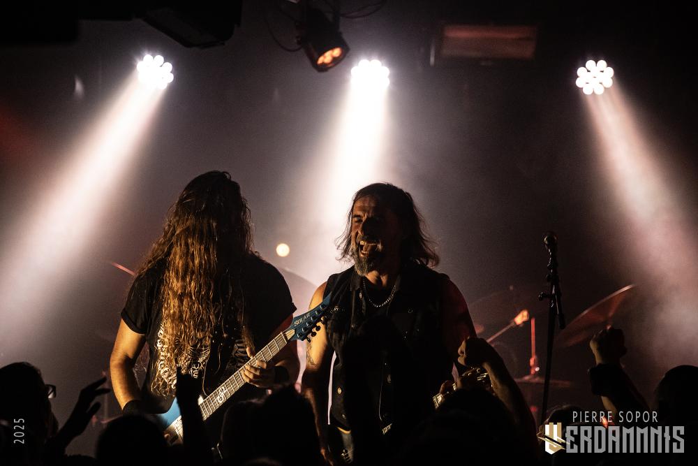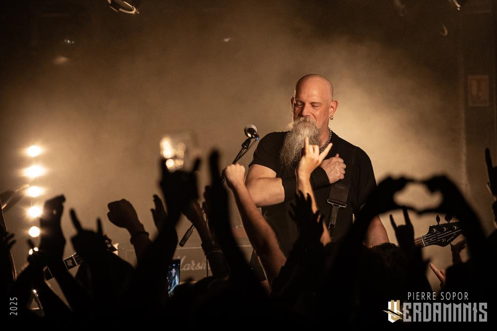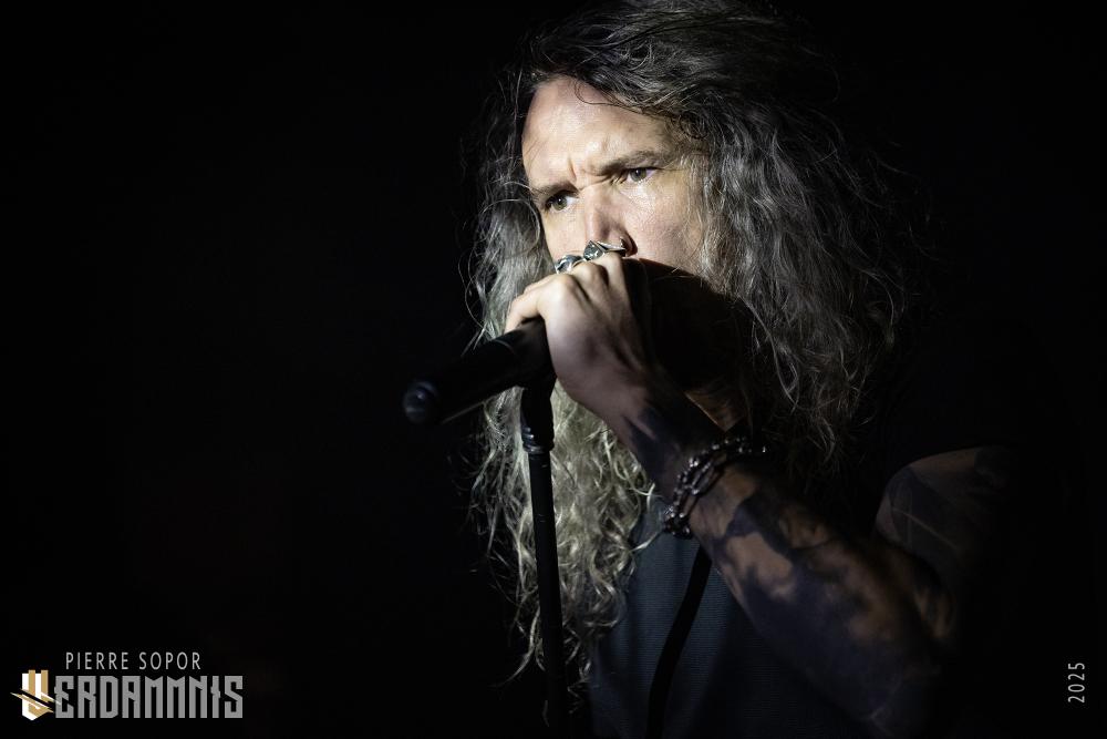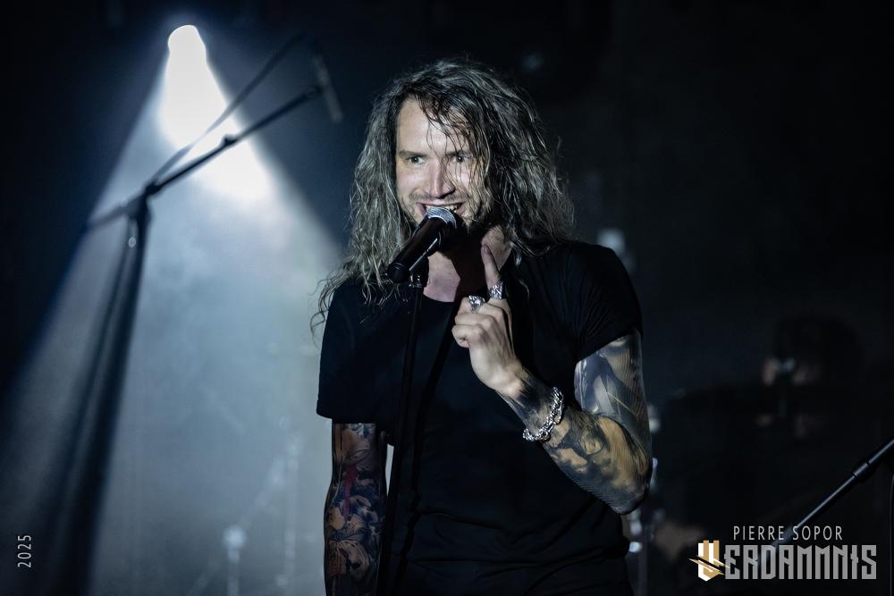 A little less than an hour ago, we thought we could hear clues about the upcoming concert in the music playing in the venue. So we weren't quite sure what to think when we heard an old french singer, Michel Polnareff, filling in during the break... Fortunately, when the star of the evening took to the stage, it wasn't to reel us in with French chanson standards. With his usual enthusiasm, he treated the Parisian audience to songs from his solo repertoire, a mix of all the influences that have inspired his career, from heavy metal to extreme metal. We were delighted to hear him include a track from The Seven Seals of the Apocalypse, Seal 3-(Revelation 6:5-6) -The Black Horse, whose dark mystical incantations and martial rhythms are most effective. Sakis Tolis is an outstanding charismatic leader, and he proves it once again in a role halfway between an ancient tyrant and the leader of a band of friends whom we follow on all his adventures. The audience reacts immediately. It is surprising to see how songs like My Salvation, The Dawn of a New Age and We the Fallen Angels already seem to be cult classics for an audience that knows the lyrics by heart.