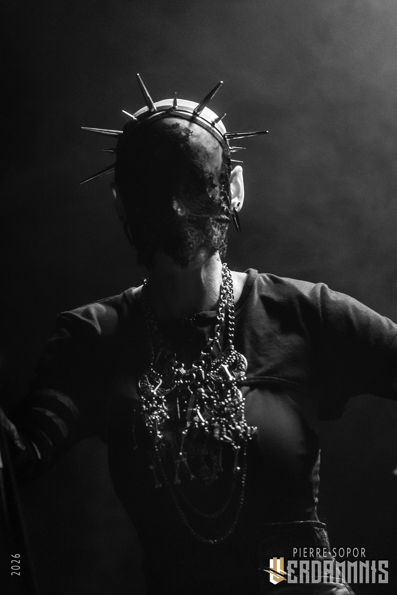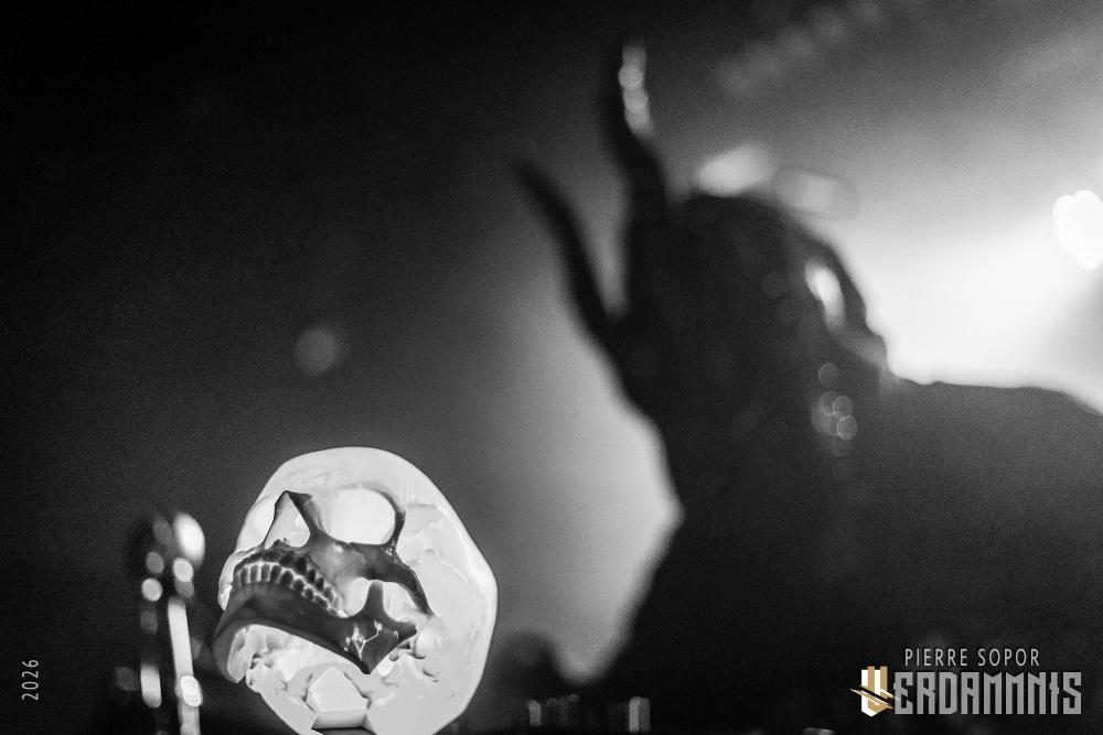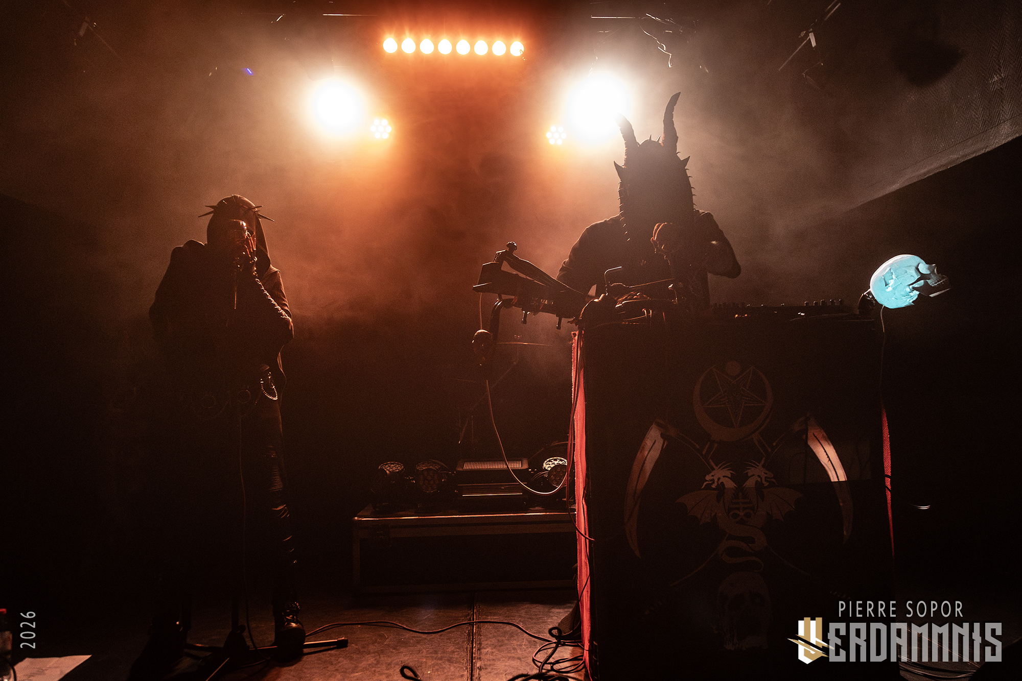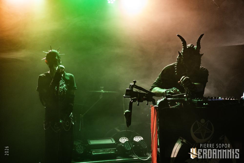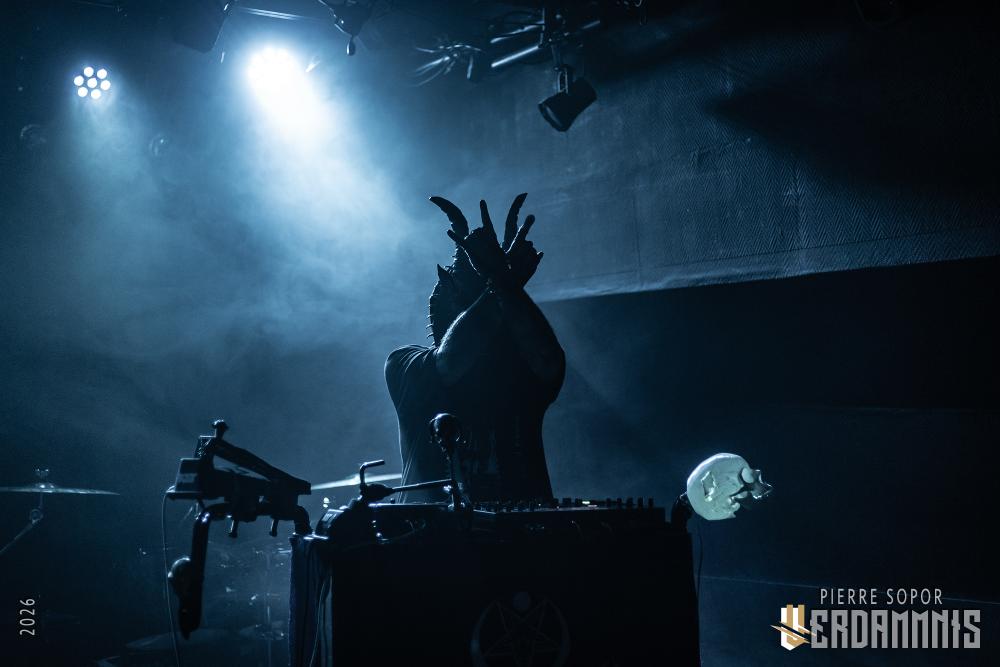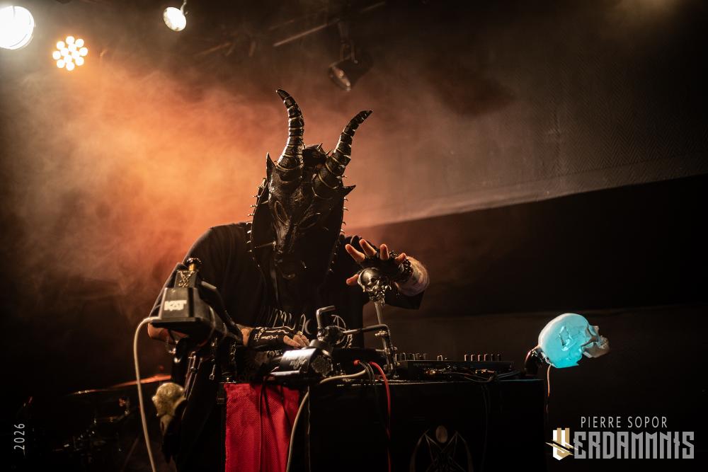 Nous retrouvons donc Kali Mortem, dont la silhouette dessinée par sa toge est aussi mystérieuse que celle d'une pleureuse hurlant d'une voix puissante sa douleur lors d'une cérémonie sataniste au cœur d'un cimetière, et Dr. Luna, qui joue âprement avec ses machines (nous pensons forcément au maitre en ingénierie bruitiste Author & Punisher) entouré de crânes, portant lui-même un masque cornu qui rend sa silhouette très aimable pour le public que nous sommes. Le son, bien que rugueux, est parfait et nous emporte dès les premières secondes tandis que de jolies lumières couleur sang dessinent d'angoissantes ténèbres.