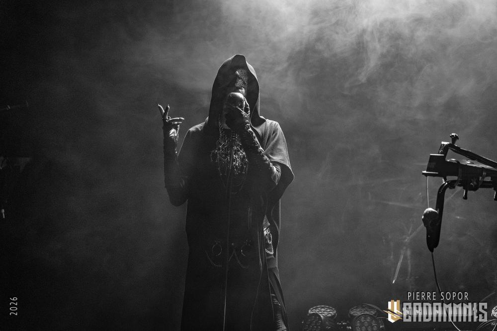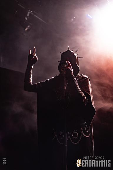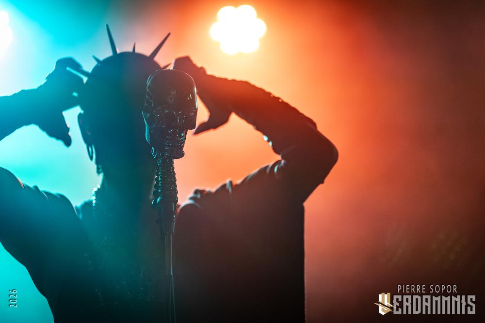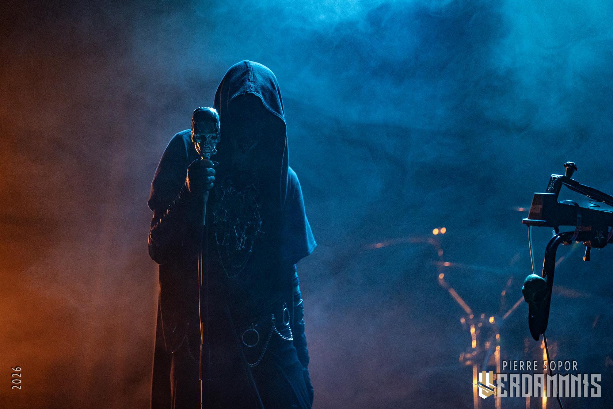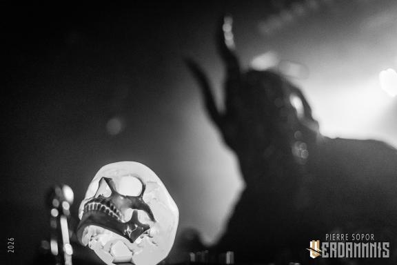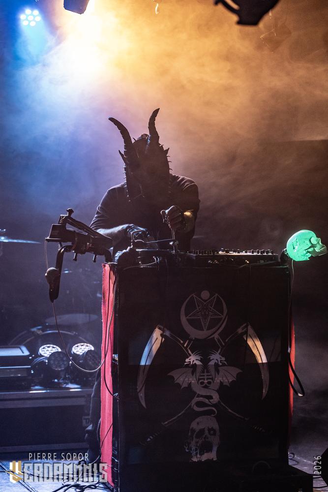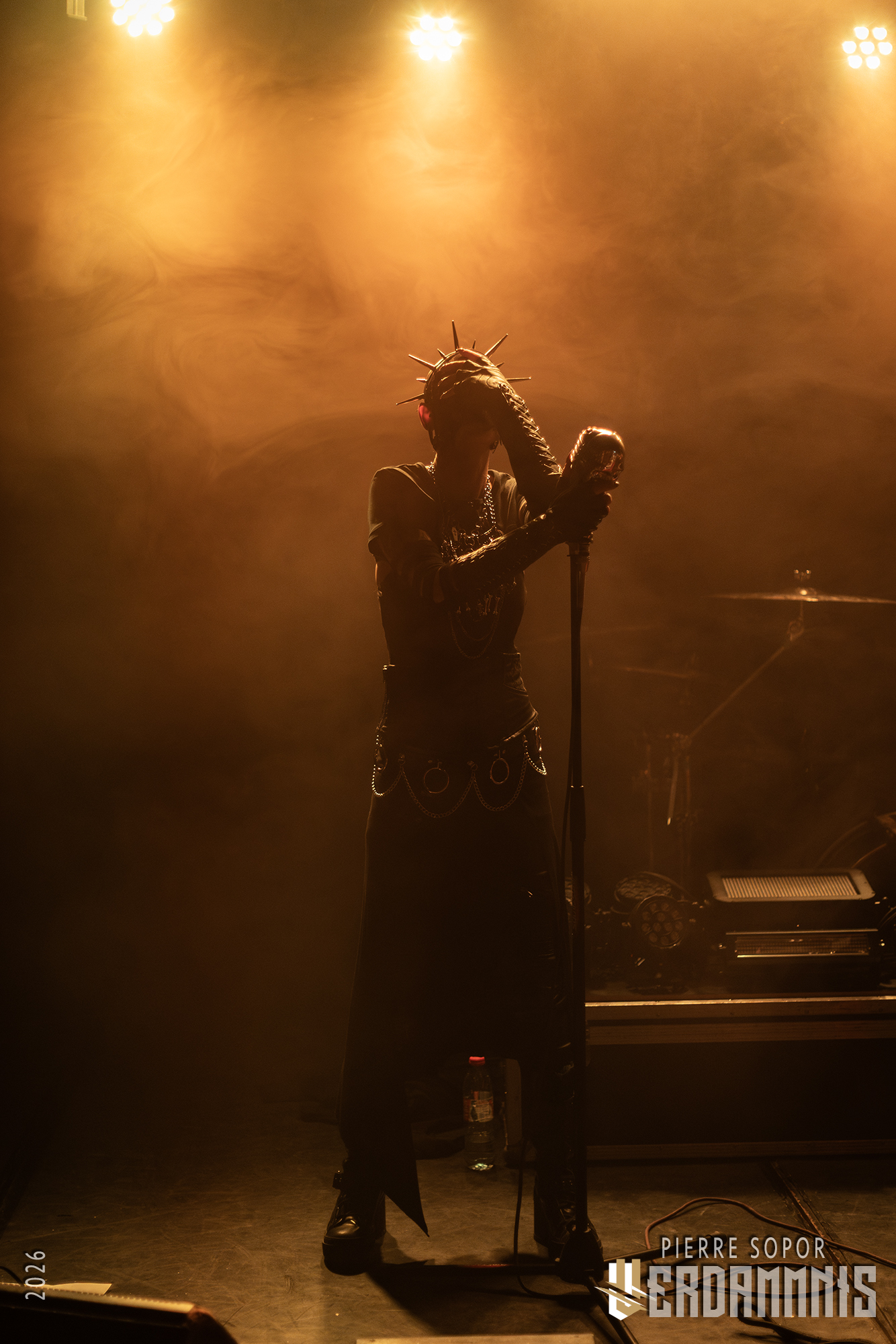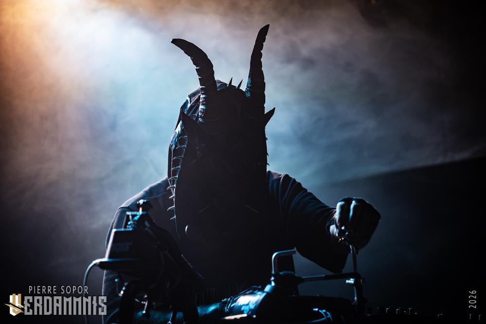 Nous retrouvons donc Kali Mortem, dont la silhouette dessinée par sa toge est aussi mystérieuse que celle d'une pleureuse hurlant d'une voix puissante sa douleur lors d'une cérémonie sataniste au cœur d'un cimetière, et Dr. Luna, qui joue âprement avec ses machines (nous pensons forcément au maitre en ingénierie bruitiste Author & Punisher) entouré de crânes, portant lui-même un masque cornu qui rend sa silhouette très aimable pour le public que nous sommes. Le son, bien que rugueux, est parfait et nous emporte dès les premières secondes tandis que de jolies lumières couleur sang dessinent d'angoissantes ténèbres.