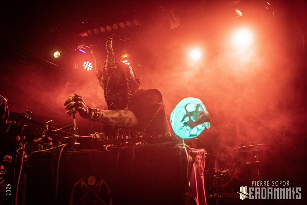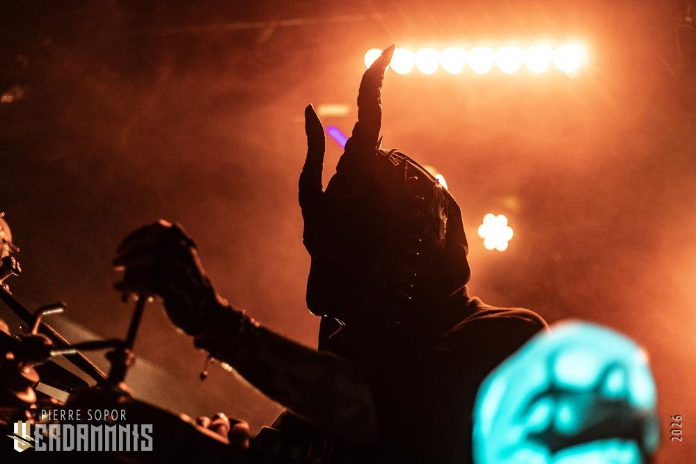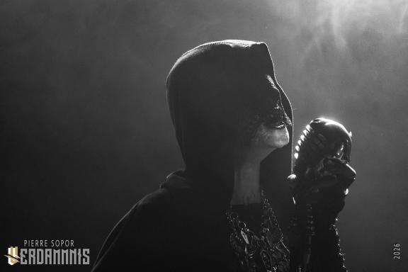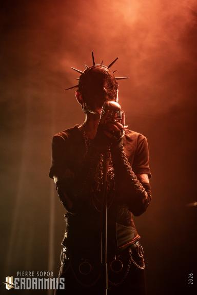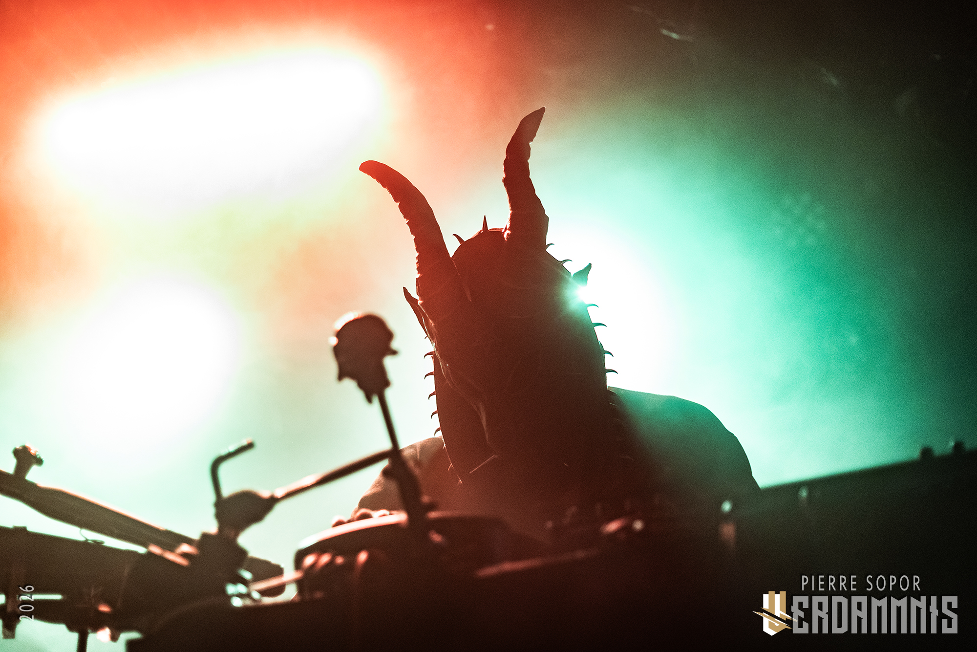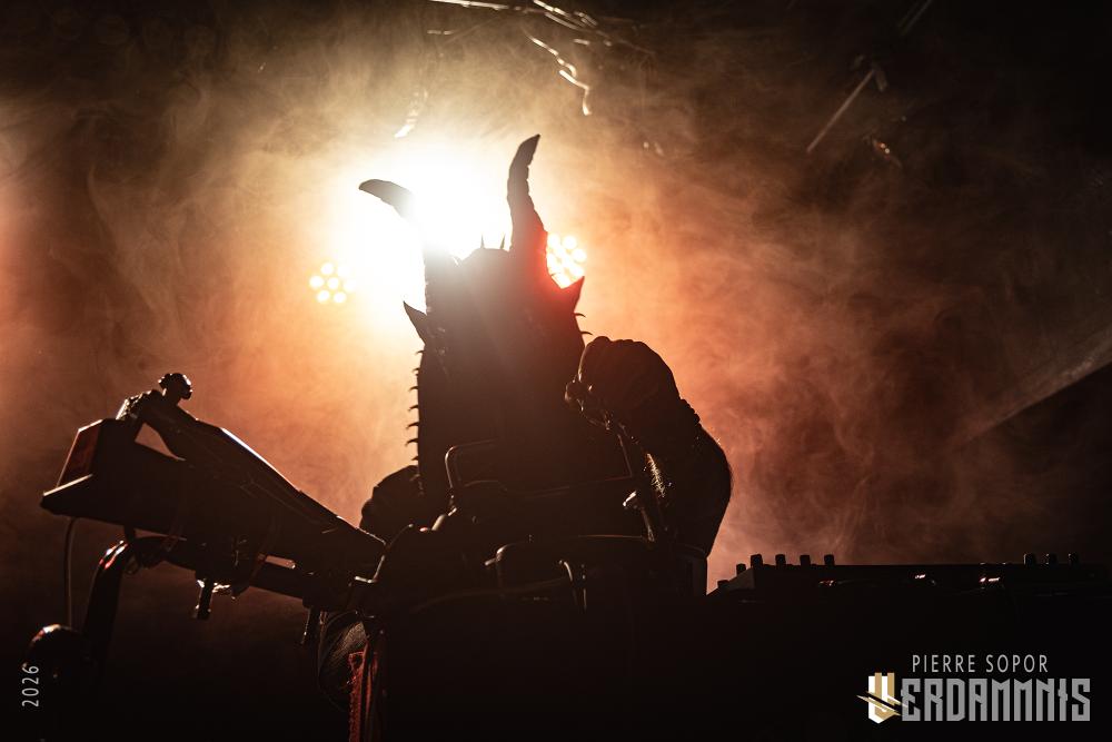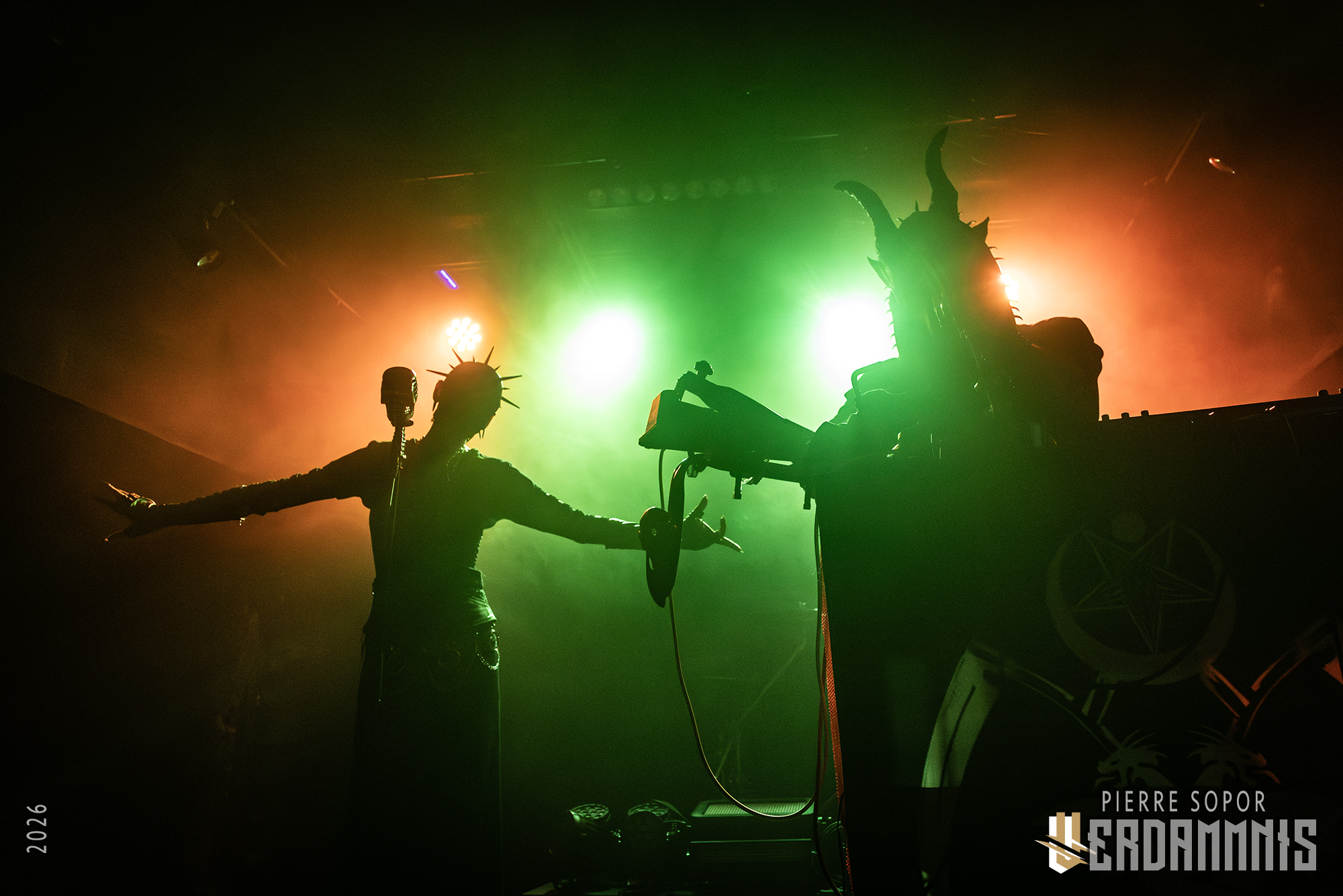 Nous retrouvons donc Kali Mortem, dont la silhouette dessinée par sa toge est aussi mystérieuse que celle d'une pleureuse hurlant d'une voix puissante sa douleur lors d'une cérémonie sataniste au cœur d'un cimetière, et Dr. Luna, qui joue âprement avec ses machines (nous pensons forcément au maitre en ingénierie bruitiste Author & Punisher) entouré de crânes, portant lui-même un masque cornu qui rend sa silhouette très aimable pour le public que nous sommes. Le son, bien que rugueux, est parfait et nous emporte dès les premières secondes tandis que de jolies lumières couleur sang dessinent d'angoissantes ténèbres.