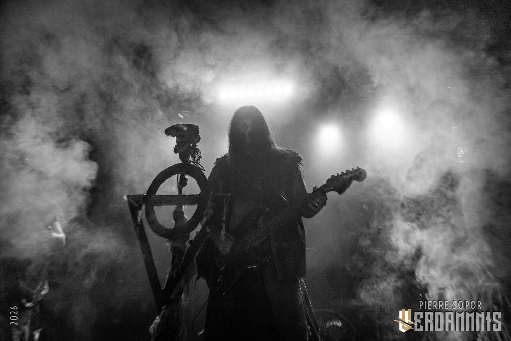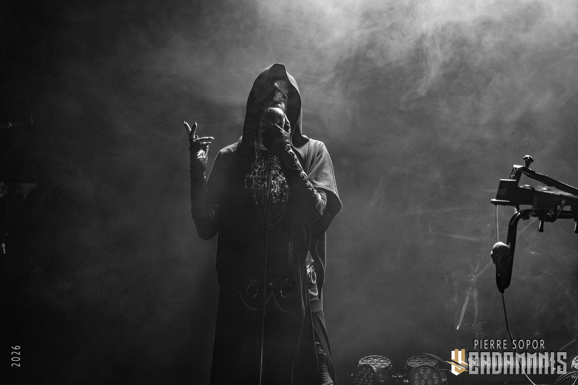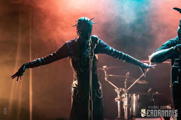 C'est donc Antania qui ouvrait cette soirée dans ce lieu parisien si atypique, et Antania, on adore. Au milieu de tous ces gens (surement plus adeptes de musique orientée black metal pour la plupart, vue la tête d'affiche) qui se demandaient "mais qu'est ce que c'est donc qu'Antania?", nous étions de notre côté assez excités (mais sombrement, quand même) de les revoir enfin sur scène, qui plus est dans un lieu aussi inspirant. On aime parce que c'est profondément noir, poisseux et écrasant, on aime parce que leur look en jette et que notre photographe par conséquent sera content (mais sombrement, toujours), on aime parce que c'est glauque, brutal et violent. Le groupe se range lui-même dans la catégorie "aggrotech death metal" et en effet, leur musique donne à la fois envie de danser, de tout casser, et peut-être les deux en même temps.