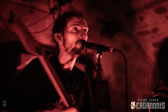 On a déjà écrit bien trop de mots. On s'est bien marrés face à ce grand monsieur de la musique noise, référence incontournable pour amateurs de bruits méchants, qui essaye de nous faire croire, avec son attitude de punk branquignolle, qu'il ne sait pas ce qu'il fait et qu'il s'en fout totalement. Sauf qu'on a aussi vu son doux sourire, avant et après le set, et on connaît sa réputation. Huit minutes de concert à tout péter, visiblement lui-même fait partie de la team "nan mais c'est quoi ça, je vais boire une bière". C'était parfait. En revanche, une minute de plus et on serait devenus fous. Ces huit minutes de trucs harsh noise / noisecore énervés dans le noir faisaient office de parenthèse légère et presque comique à la soirée, sorte de bulle de respiration décalée avant de replonger dans les tourments les plus écorchés, un instant nécessaire pour ne pas finir asphyxier par la pesanteur des autres concerts. Perrot, lui, n'avait aucun traumatisme à nous raconter avec des mots mais sa présence, comme la notre, servait alors de soutien, de moment paradoxalement vivant. La lueur dans le bruit le plus violent, on ne s'y attendait pas.