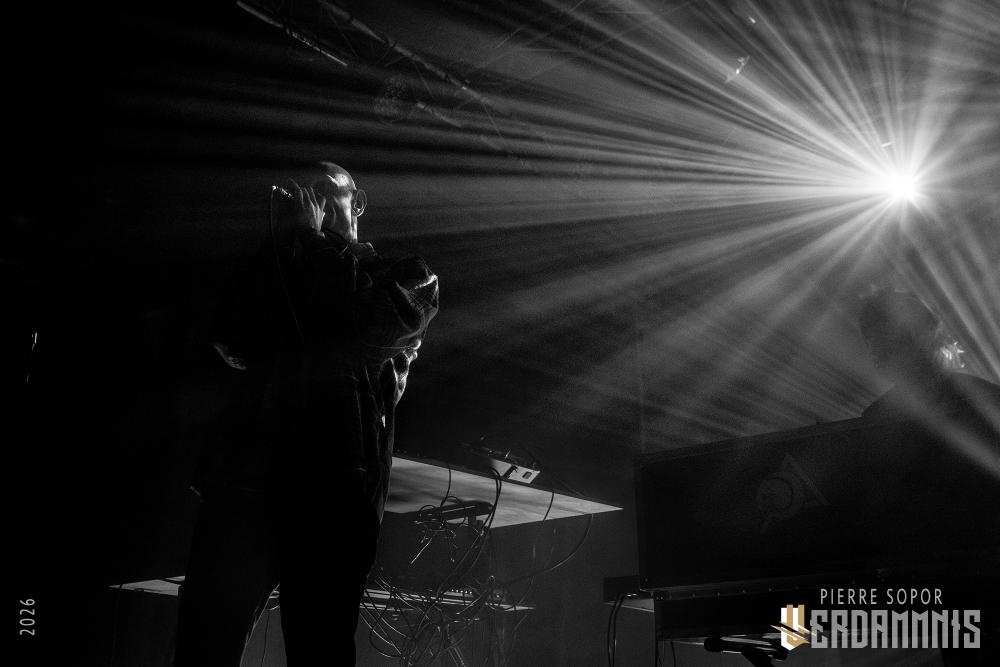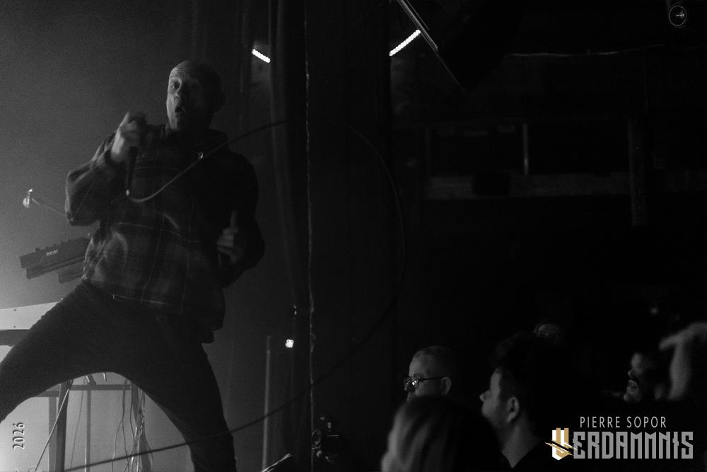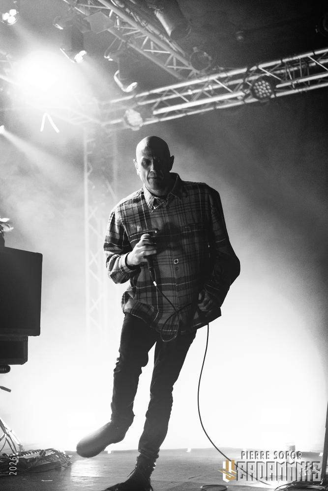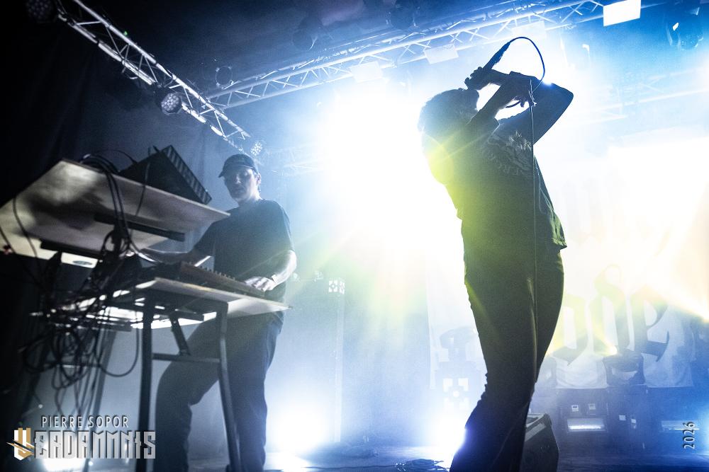 Hum. Allez savoir pourquoi, mais alors que le groupe commence le concert dans un noir total avant de balancer des stroboscopes sur le public, quelque chose nous dit que ça ne sera pas si consensuel que ça. Ashline porte une chemise, comme les vrais adultes font. On pourrait croire qu'il va nous vouvoyer et parler avec respect. Au lieu de ça, il nous hurle dessus, se contorsionne, prend un bain de foule. Avec ses cris mécaniques et ses envolées plus humaines, où sa voix haut perchée perce les différentes couches de machines, il est une tempête tourmentée ultra-expressive. A ses côtés, son binôme Ringsmuth sue toutes les larmes de son corps derrière ses machines qui deviennent autant un instrument de torture qu'un outil de libération. Ça fait mal mais ça fait du bien. Entassés dans le noir, on comprend alors que notre entière existence n'était qu'une illusion : nous ne sommes pas à Paris sur les quais de l'Ourcq. On est en fait piégé à l'intérieur d'une machine à laver pleine de linge très sale et l'essorage ne commence qu'à peine. Une demi-heure n'a pas tout à fait raison de nous mais les chemises les plus fines sont déjà en lambeau.