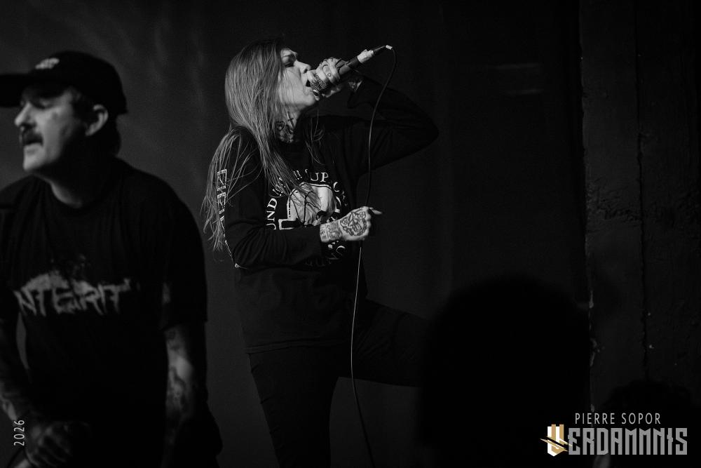 Molting Fear nous atterrit au coin de la tronche. King Yosef a bien compris que pour qu'une explosion détruise tout, il lui faut de l'espace. Sa musique ressemble à des succession d'éruptions mécaniques, des trucs venus des tripes d'une lourdeur cataclysmique séparés par des respirations plus atmosphériques. Yosef beugle, Yosef se débat avec lui-même, mais surtout Yosef se marre : c'est vrai que le chaos dans la fosse est un spectacle digne d'une peinture de la renaissance, superpositions de corps tordus aux visages déformés par l'extase et la souffrance. SURTOUT KING YOSEF POUTRER BLEUARGH GROS BRUIT EGAL GROS BOUM EGAL GROSSE BAGARRE. "Je vous vois hurler, c'est cool, si vous connaissez les paroles venez prendre le micro, moi je suis fatigué", qu'il nous lâche, amusé, entre deux remerciements. Il est choupi ce p'tit gars. Il est choupi non seulement parce que sa musique est sincère, sauvage, puissante, mais également très bien foutue. Il est choupi parce qu'il dégouline de cette sincérité, cette envie, et que l'on sent tout le travail derrière. Il est choupi parce qu'on le voit grandir et devenir, à son tour, cette tempête de parpaings. En studio, il nous avait convaincu... Et voilà que King Yosef est en train de devenir un monstre d'efficacité sur scène également. Les années à venir s'annoncent passionnantes de son côté !